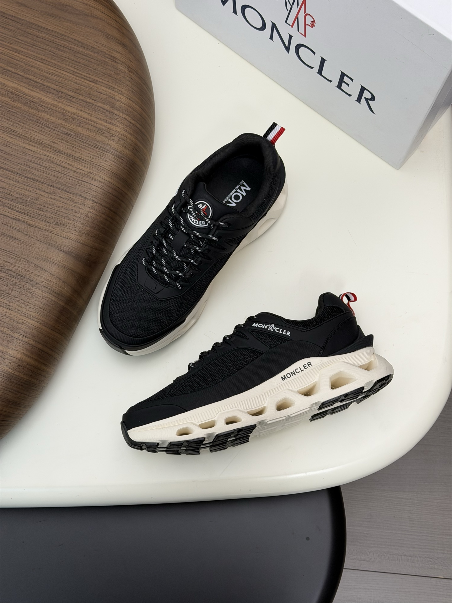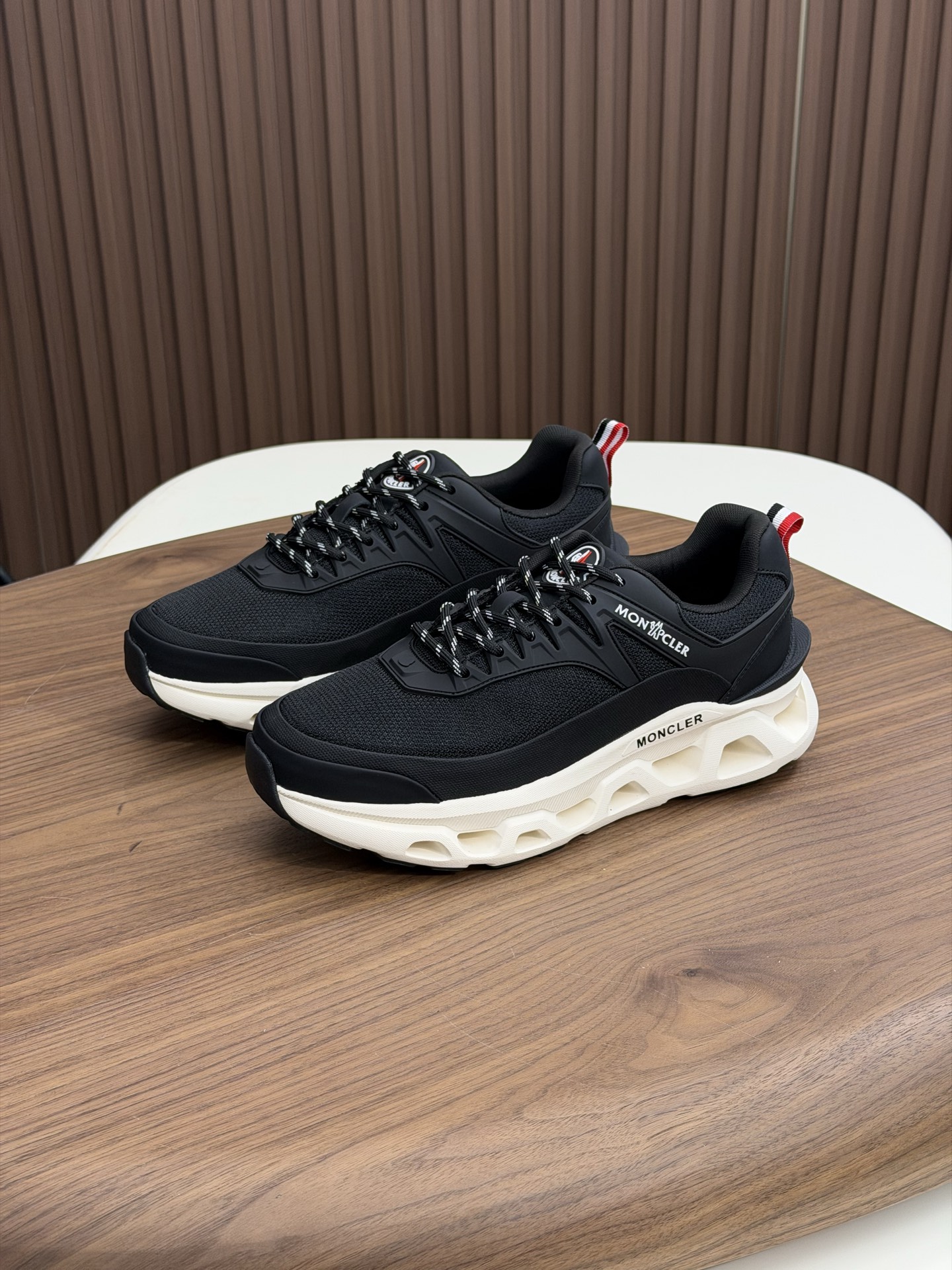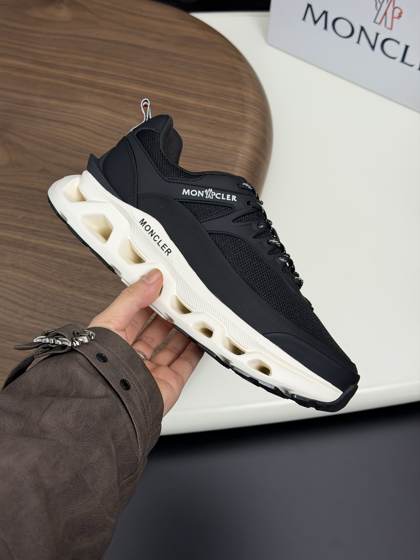 这款鞋子是AAAAA 1:1 质量 (非常棒). 使用了和原版一模一样的材料. 商标部分也保持了和盟可睐/moncler一样. 图片拍摄是实物鞋子拍摄, 您所收到的实物保证和我们图片一模一样.