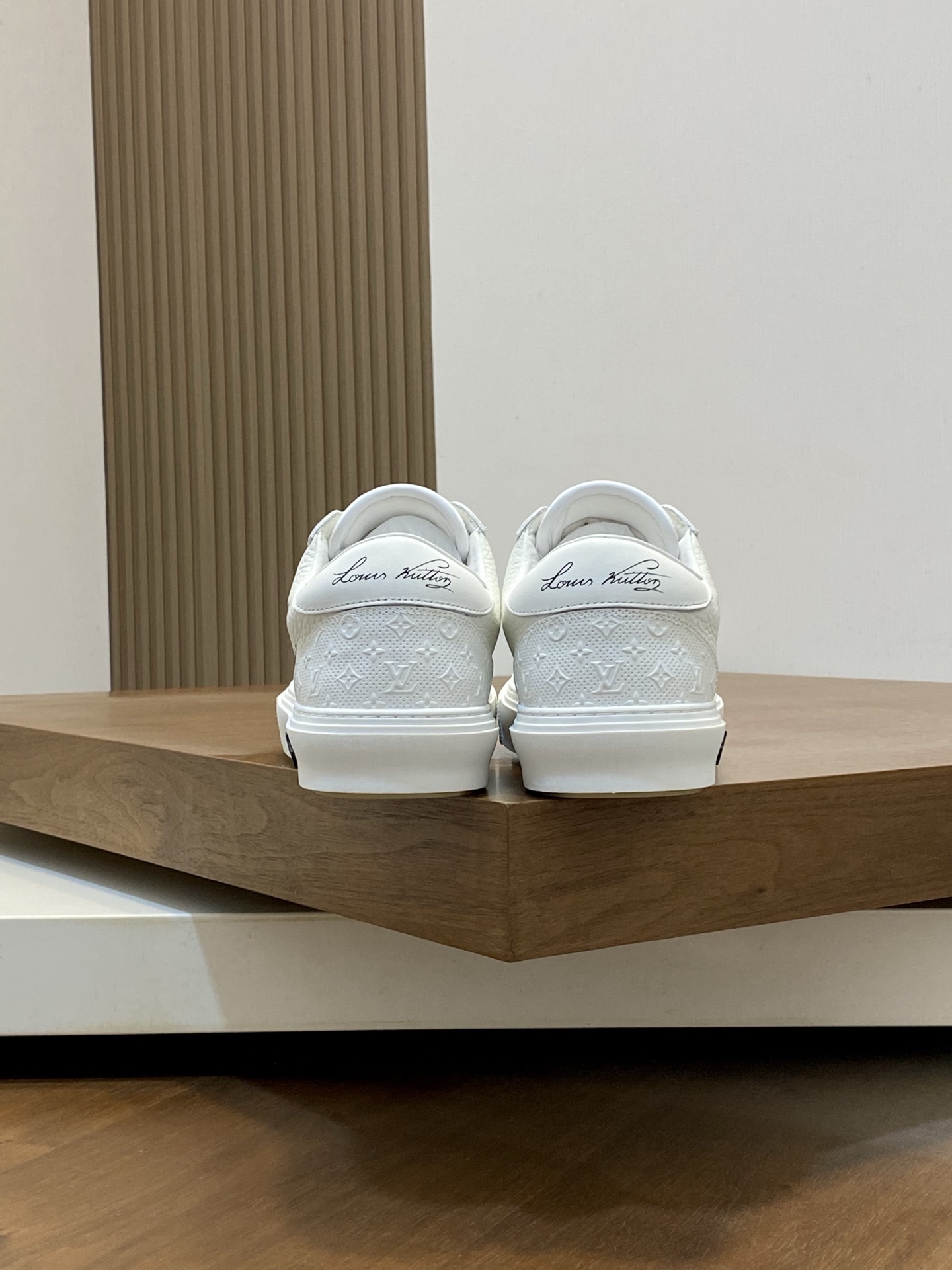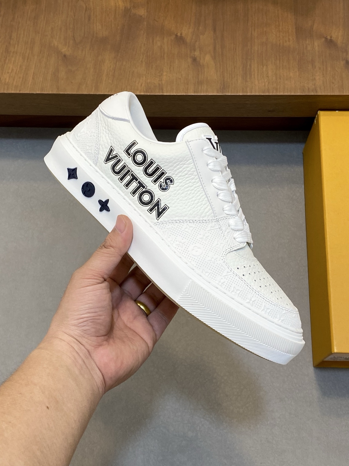 这款鞋子是AAAAA 1:1 质量 (非常棒). 使用了和原版一模一样的材料. 商标部分也保持了和路易威登/Louis Vuitton一样. 图片拍摄是实物鞋子拍摄, 您所收到的实物保证和我们图片一模一样.