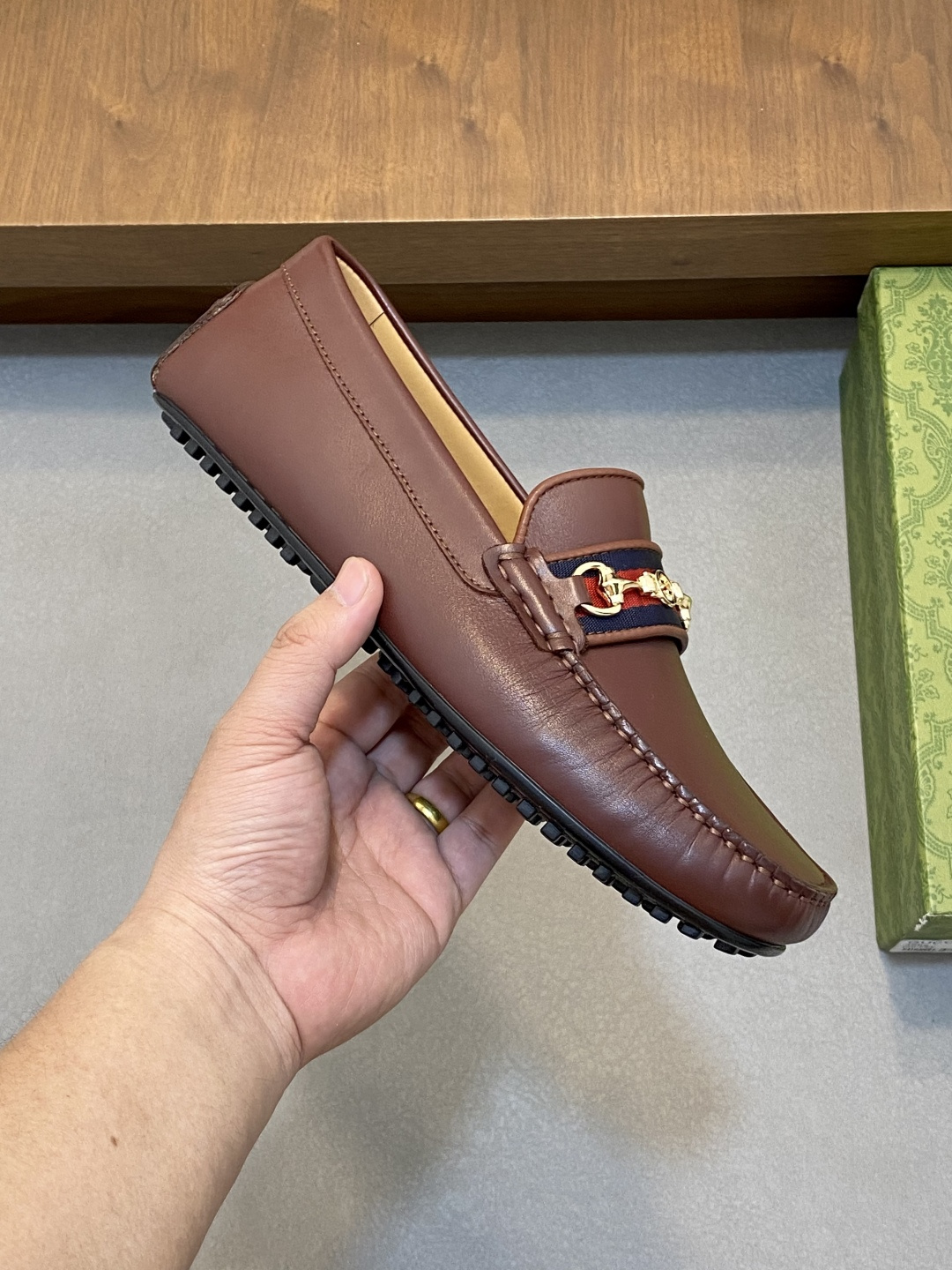 这款鞋子是AAAAA 1:1 质量 (非常棒). 使用了和原版一模一样的材料. 商标部分也保持了和古奇/Gucci一样. 图片拍摄是实物鞋子拍摄, 您所收到的实物保证和我们图片一模一样.