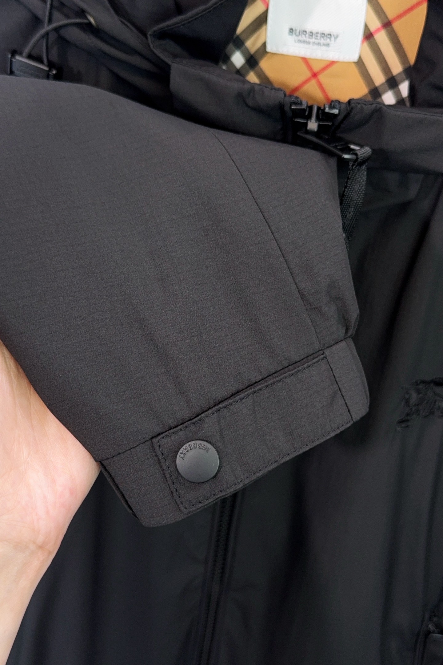 这款衣服是AAAAA 1:1 质量 (非常棒). 使用了和原版一模一样的材料. 商标部分也保持了和巴宝莉/Burberry一样. 图片拍摄是实物衣服拍摄, 您所收到的实物保证和我们图片一模一样.