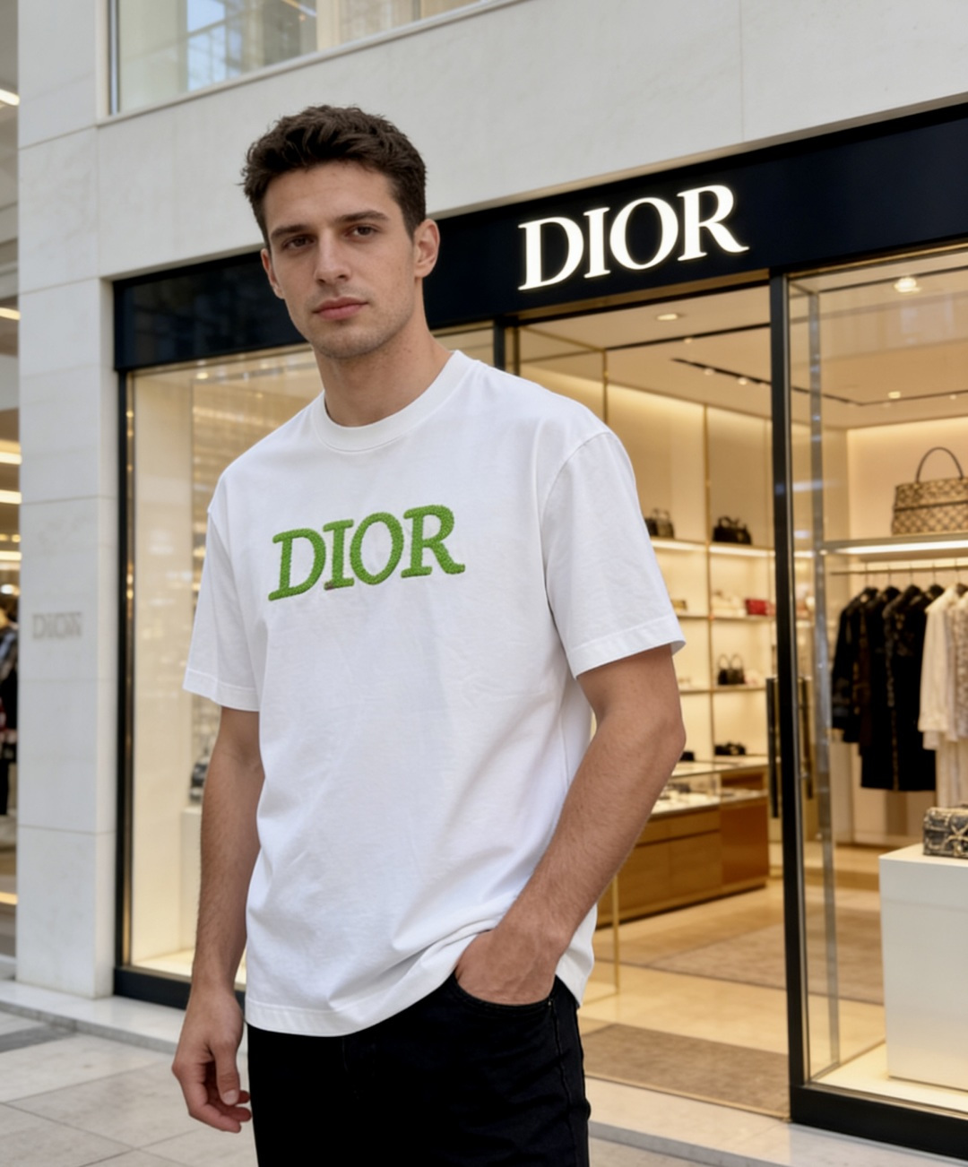 这款衣服是AAAAA 1:1 质量 (非常棒). 使用了和原版一模一样的材料. 商标部分也保持了和迪奥/Dior一样. 图片拍摄是实物衣服拍摄, 您所收到的实物保证和我们图片一模一样.