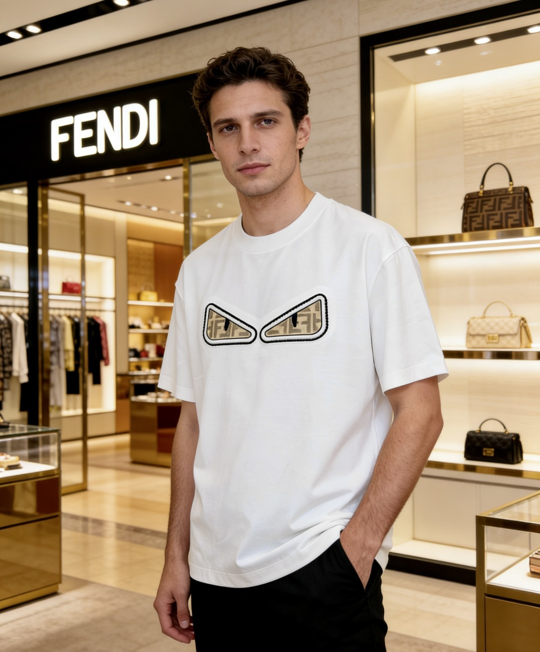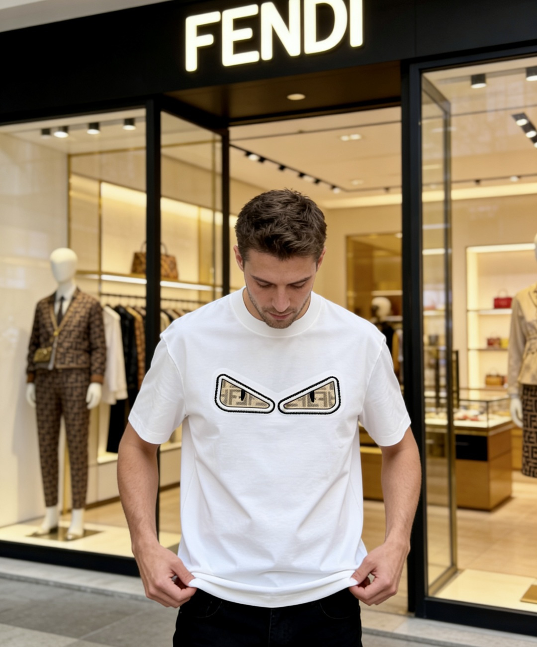 这款衣服是AAAAA 1:1 质量 (非常棒). 使用了和原版一模一样的材料. 商标部分也保持了和芬迪/Fendi一样. 图片拍摄是实物衣服拍摄, 您所收到的实物保证和我们图片一模一样.