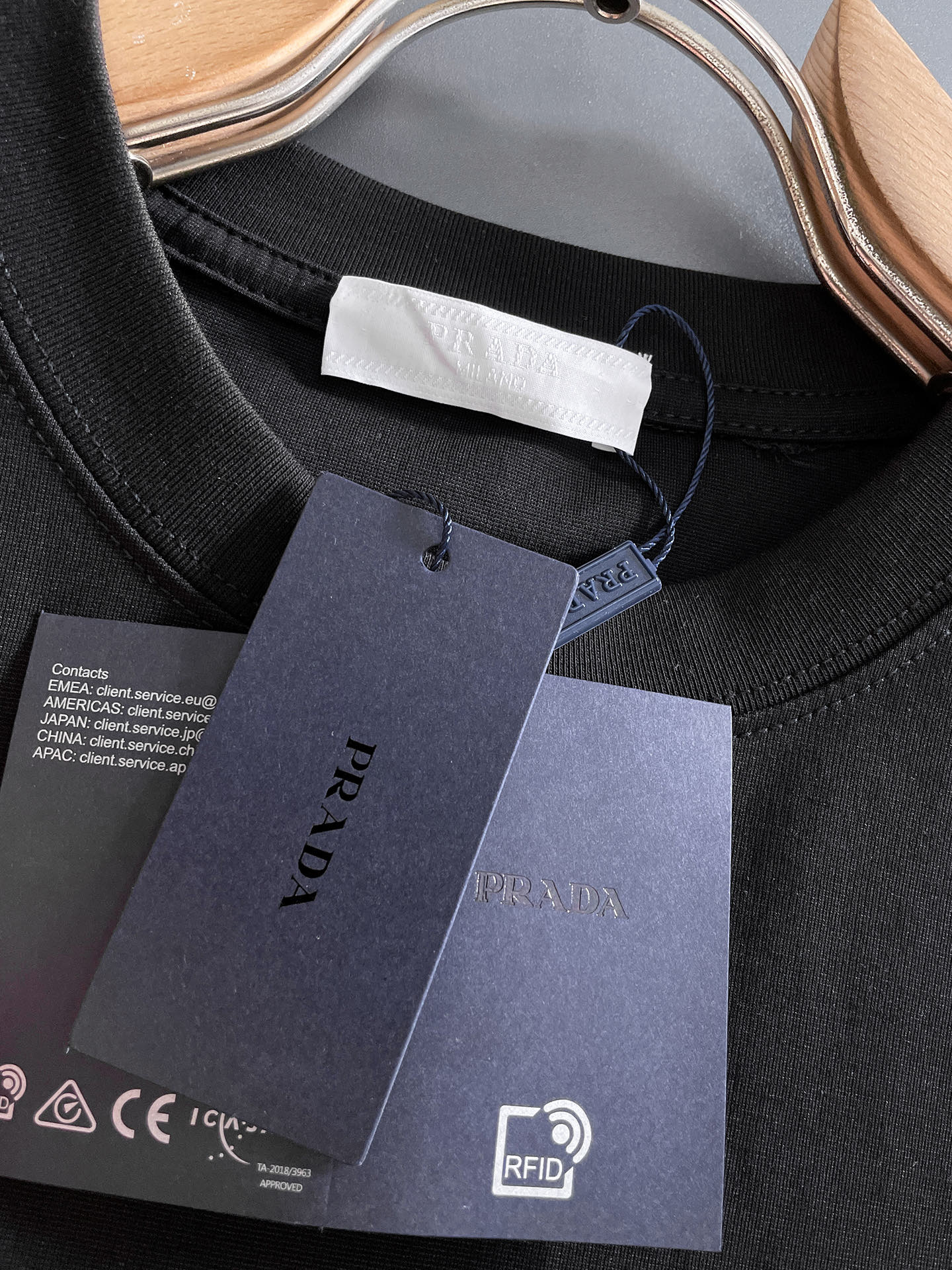 这款衣服是AAAAA 1:1 质量 (非常棒). 使用了和原版一模一样的材料. 商标部分也保持了和普拉达/Prada一样. 图片拍摄是实物衣服拍摄, 您所收到的实物保证和我们图片一模一样.