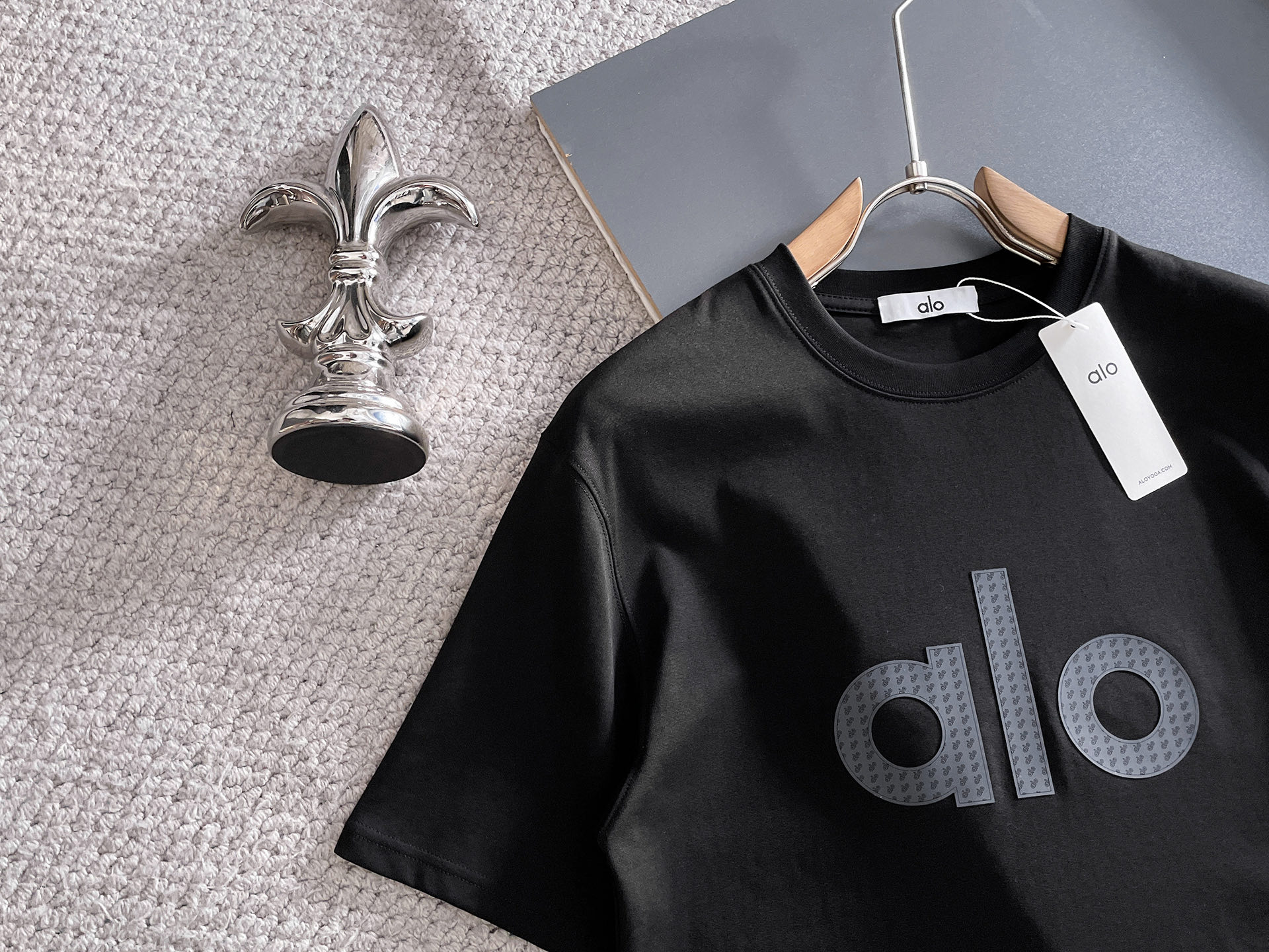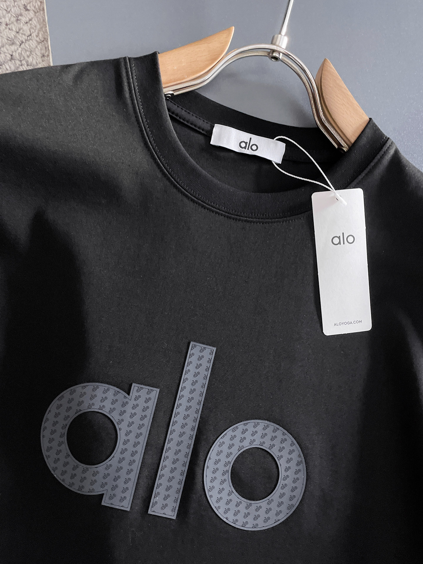 这款衣服是AAAAA 1:1 质量 (非常棒). 使用了和原版一模一样的材料. 商标部分也保持了和Alo Yoga一样. 图片拍摄是实物衣服拍摄, 您所收到的实物保证和我们图片一模一样.