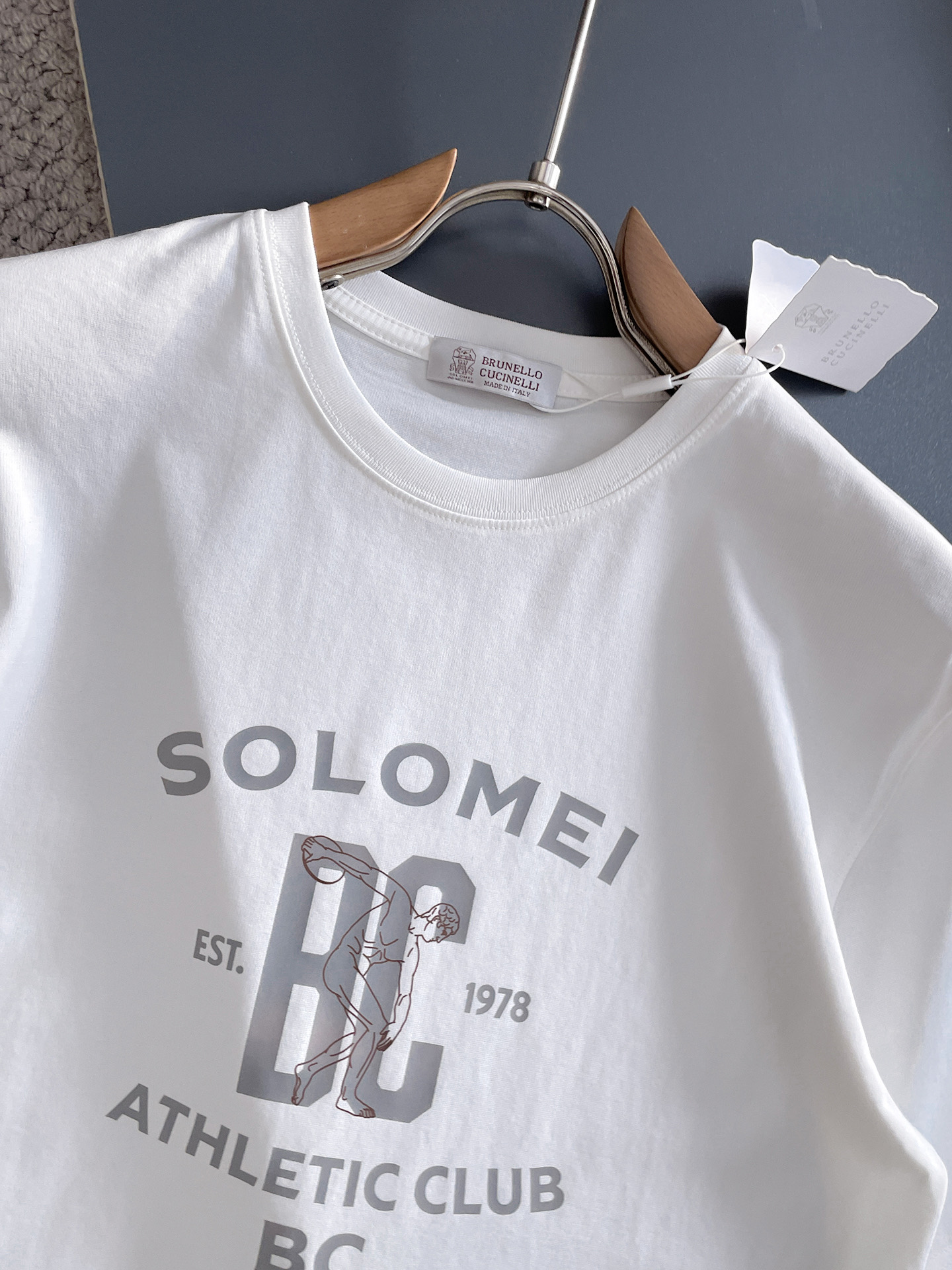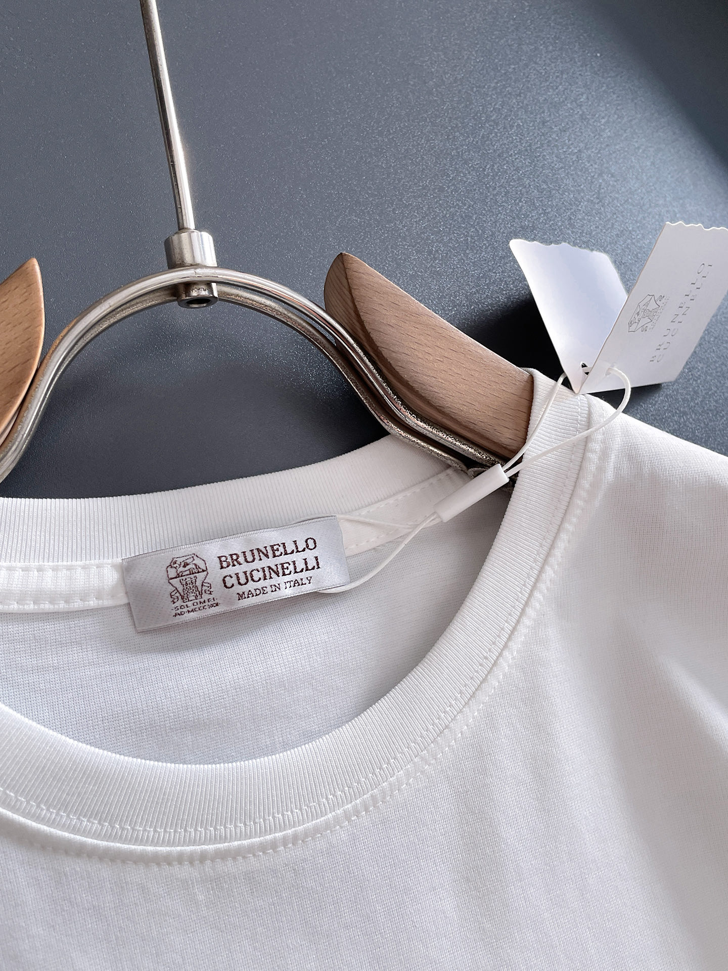 这款衣服是AAAAA 1:1 质量 (非常棒). 使用了和原版一模一样的材料. 商标部分也保持了和Brunello Cucinelli一样. 图片拍摄是实物衣服拍摄, 您所收到的实物保证和我们图片一模一样.