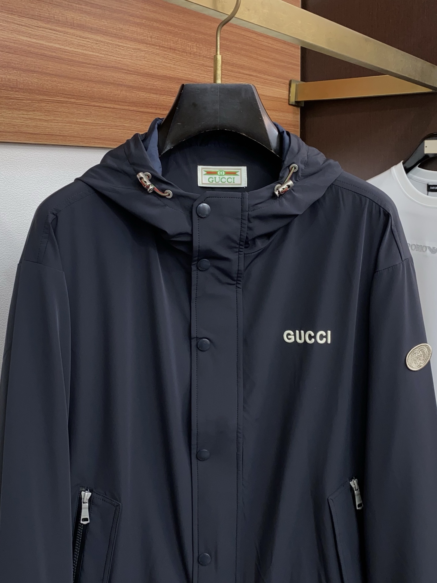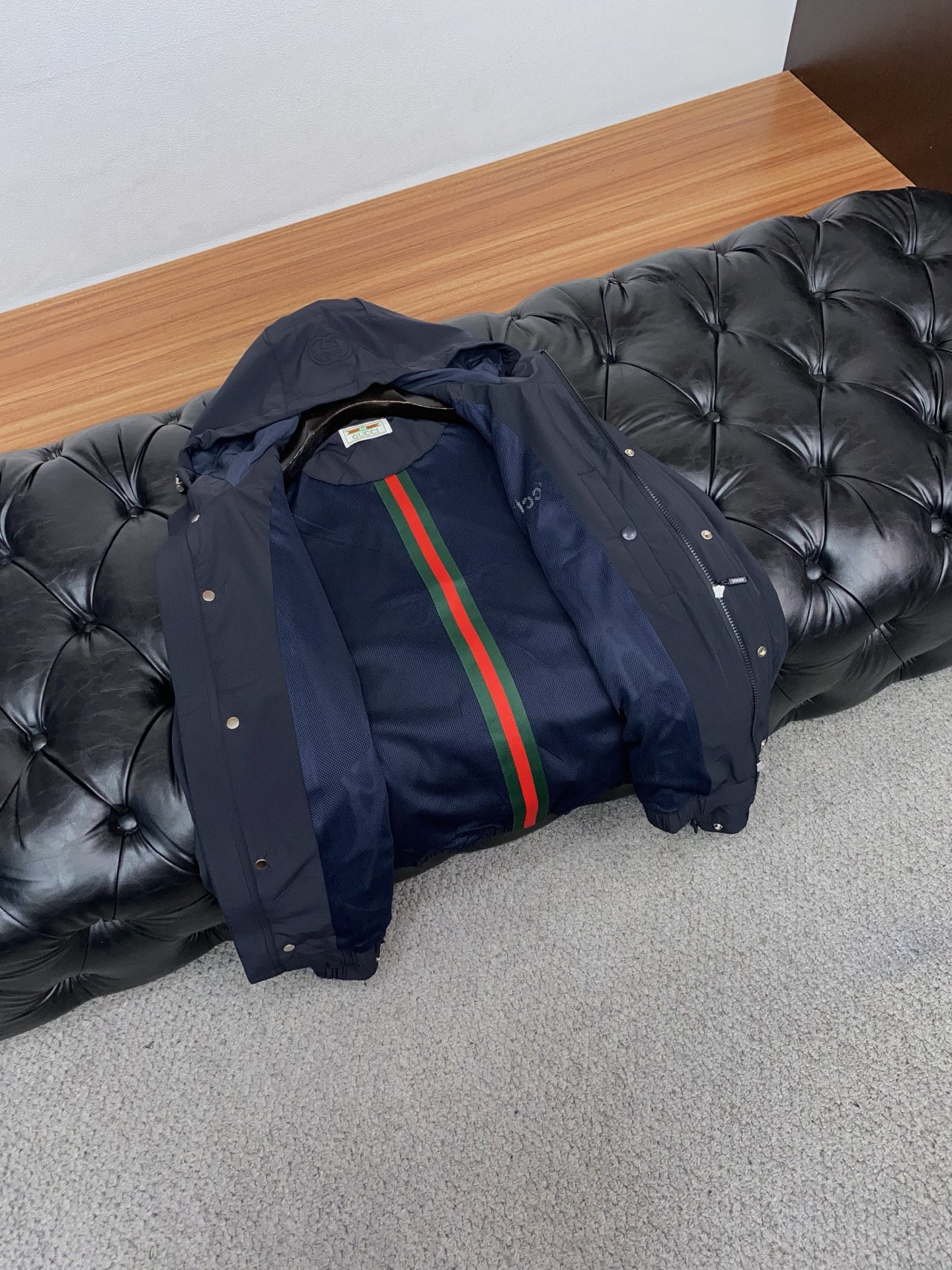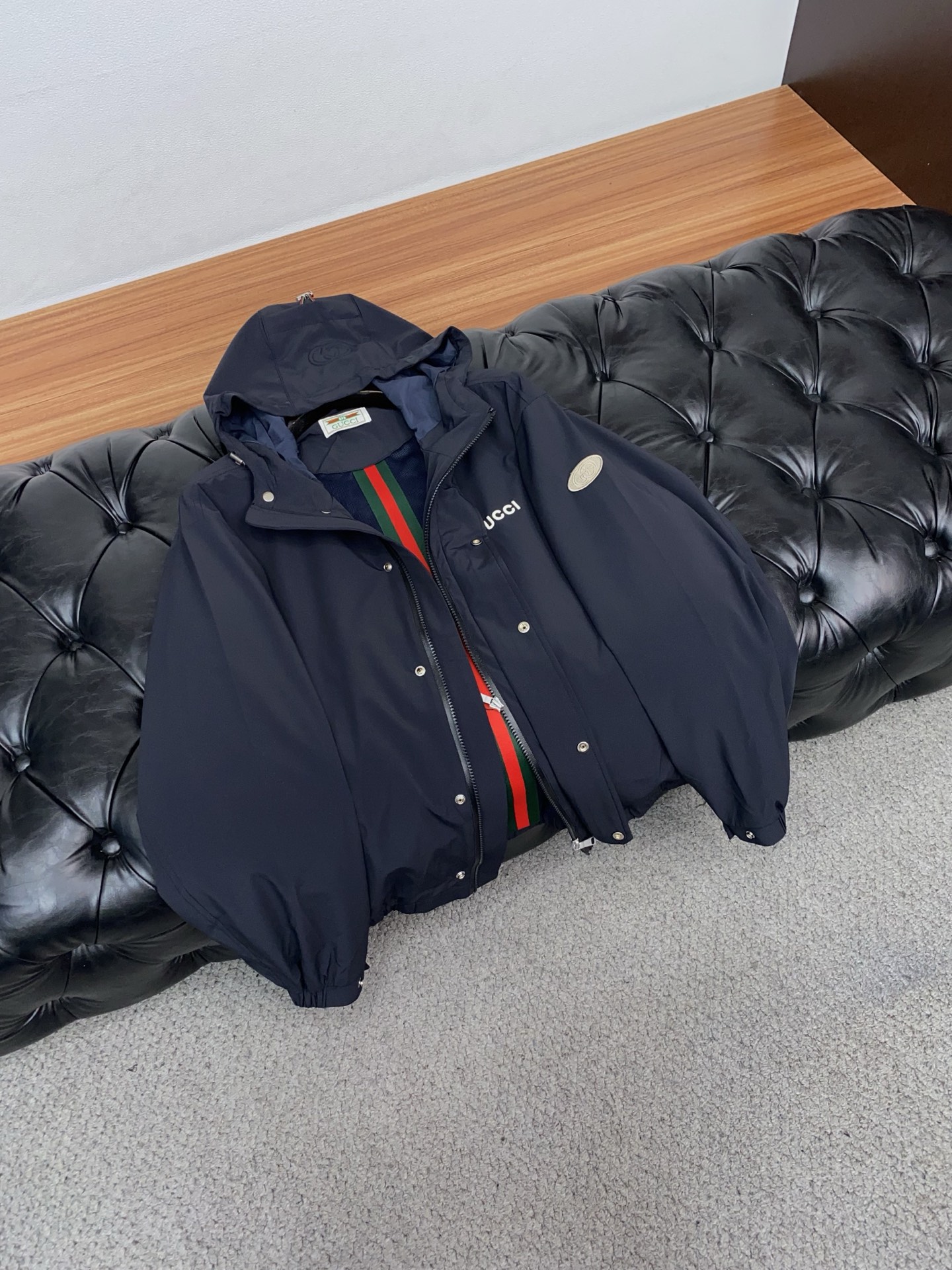 这款衣服是AAAAA 1:1 质量 (非常棒). 使用了和原版一模一样的材料. 商标部分也保持了和古奇/Gucci一样. 图片拍摄是实物衣服拍摄, 您所收到的实物保证和我们图片一模一样.