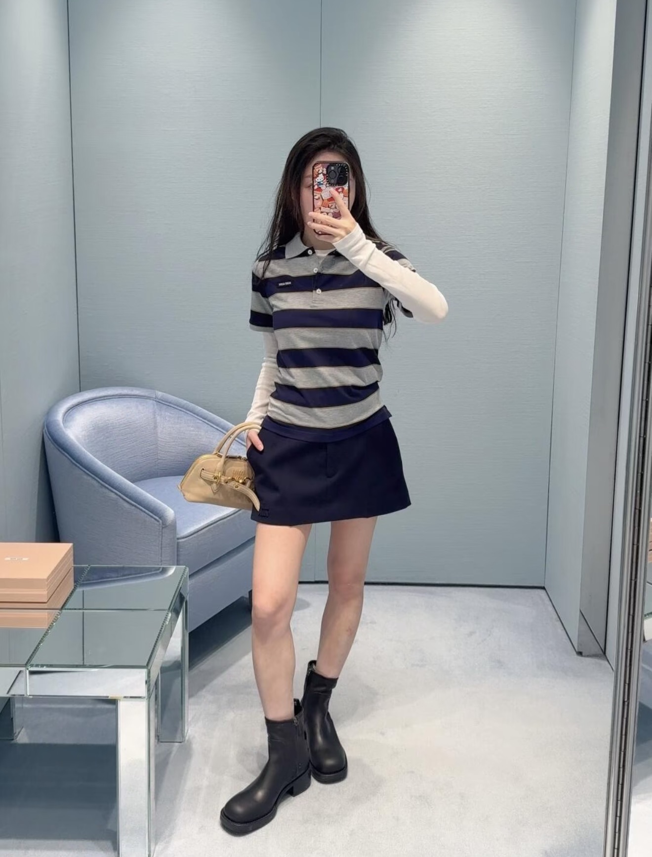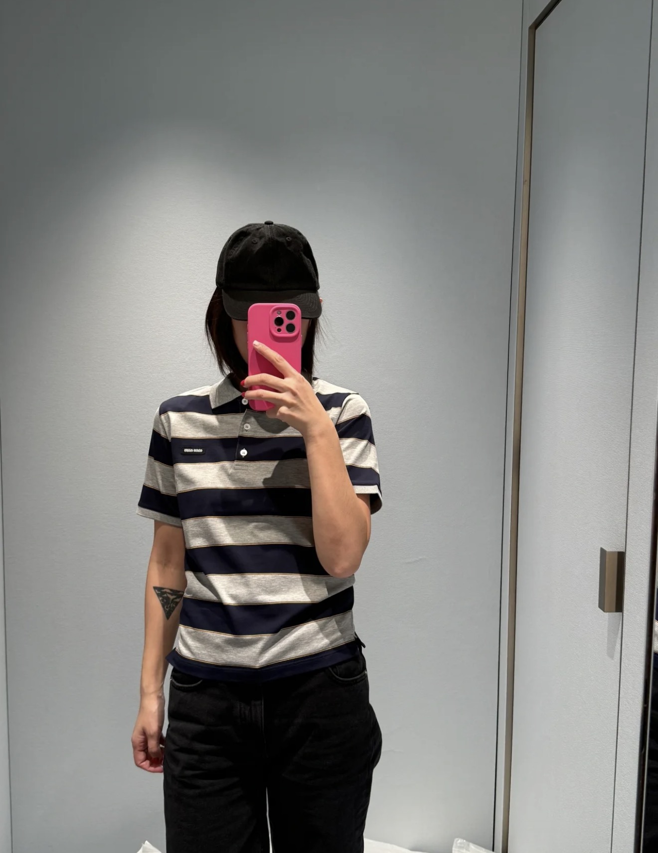 这款衣服是AAAAA 1:1 质量 (非常棒). 使用了和原版一模一样的材料. 商标部分也保持了和缪缪/Miu Miu一样. 图片拍摄是实物衣服拍摄, 您所收到的实物保证和我们图片一模一样.