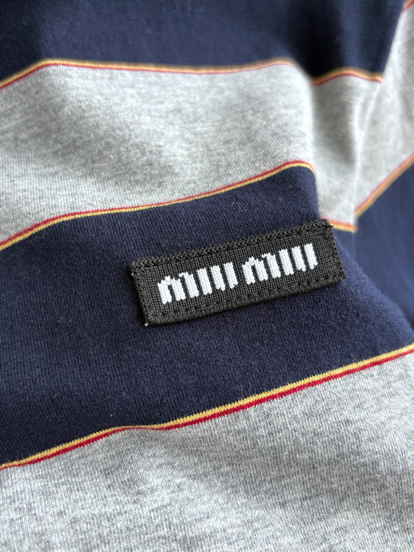 这款衣服是AAAAA 1:1 质量 (非常棒). 使用了和原版一模一样的材料. 商标部分也保持了和缪缪/Miu Miu一样. 图片拍摄是实物衣服拍摄, 您所收到的实物保证和我们图片一模一样.