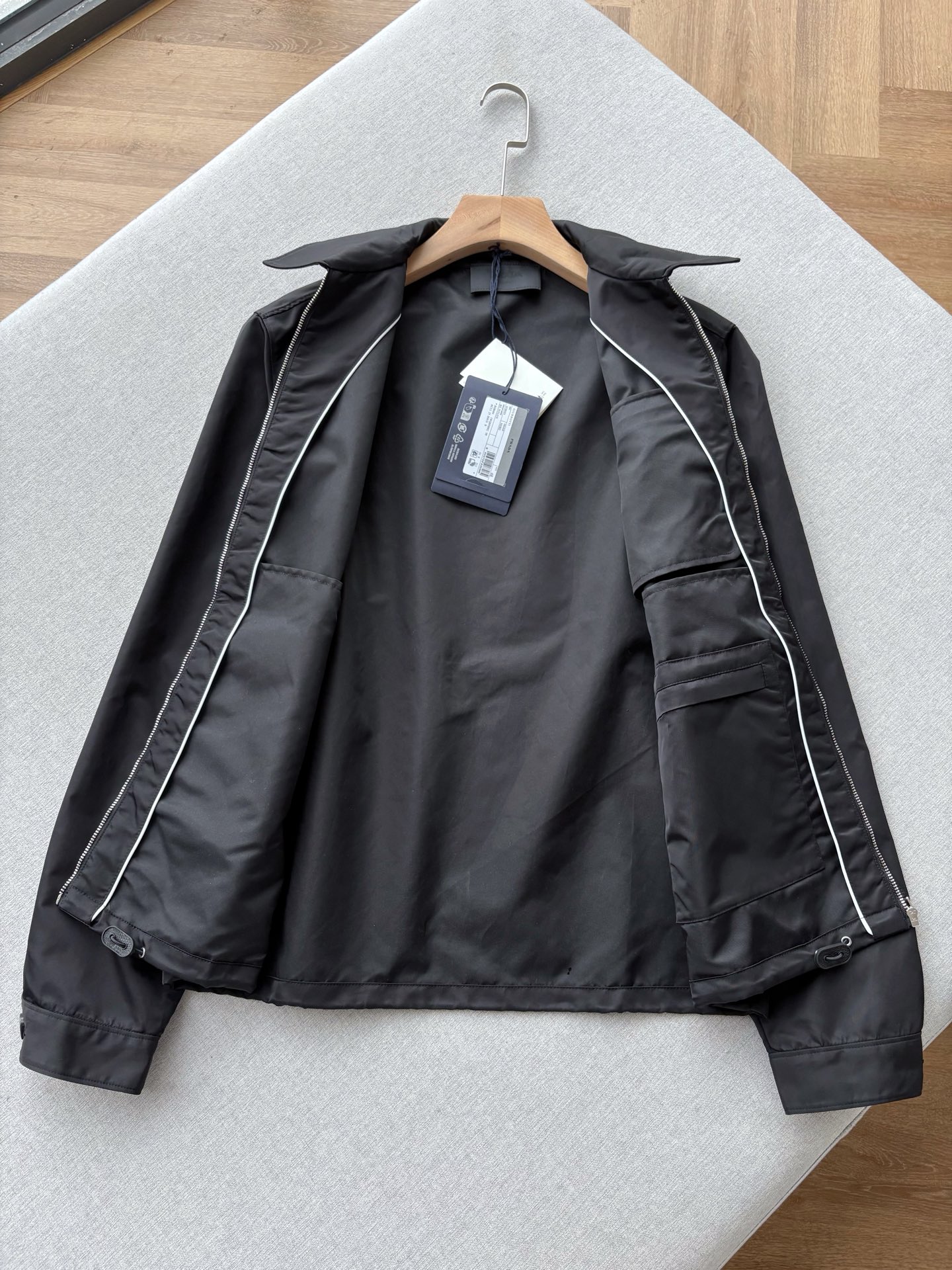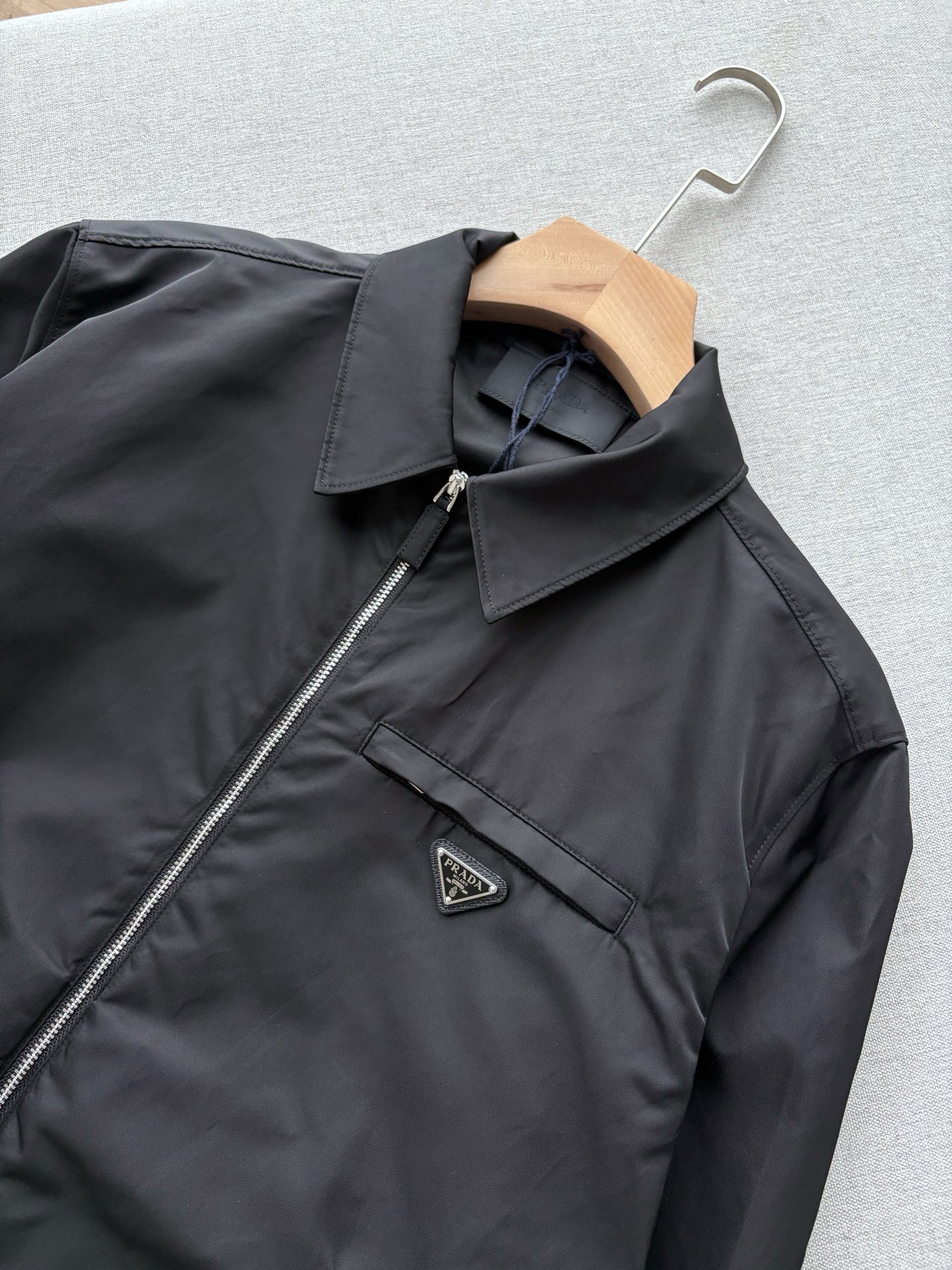 这款衣服是AAAAA 1:1 质量 (非常棒). 使用了和原版一模一样的材料. 商标部分也保持了和普拉达/Prada一样. 图片拍摄是实物衣服拍摄, 您所收到的实物保证和我们图片一模一样.