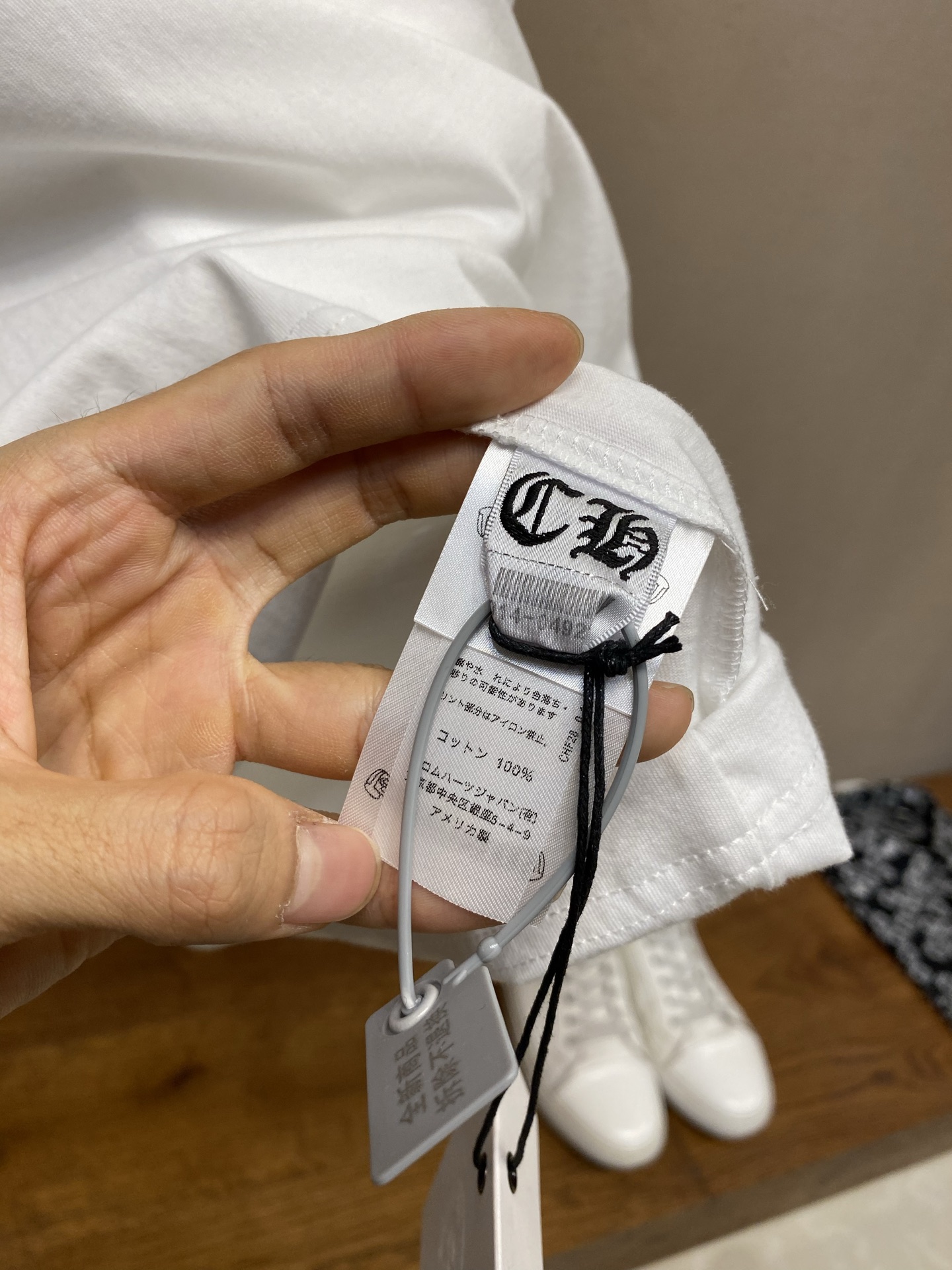 这款衣服是AAAAA 1:1 质量 (非常棒). 使用了和原版一模一样的材料. 商标部分也保持了和克罗心/Chrome Hearts一样. 图片拍摄是实物衣服拍摄, 您所收到的实物保证和我们图片一模一样.