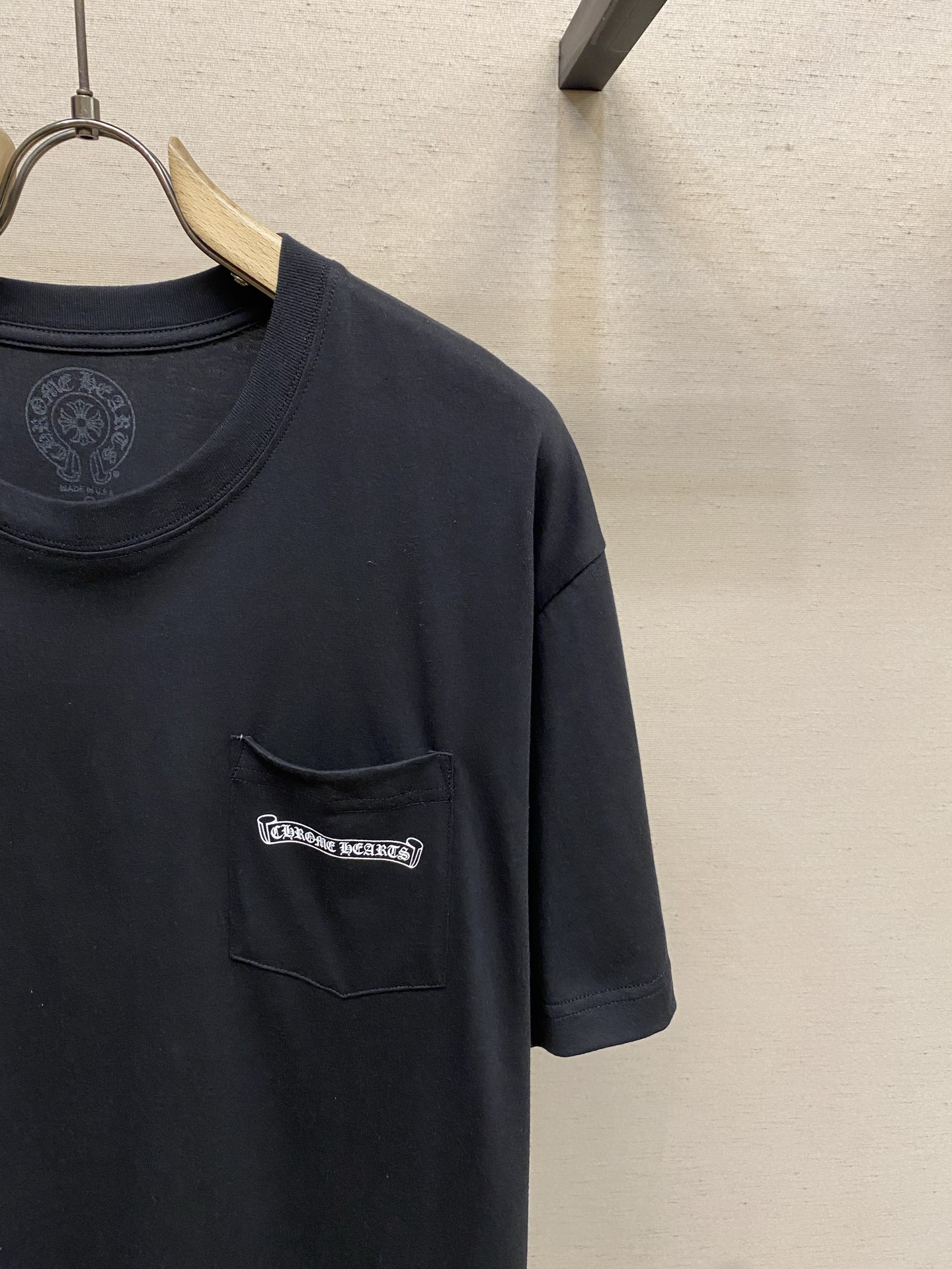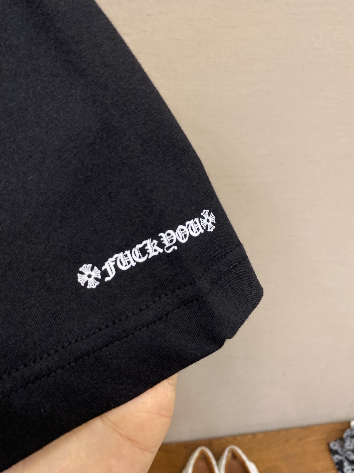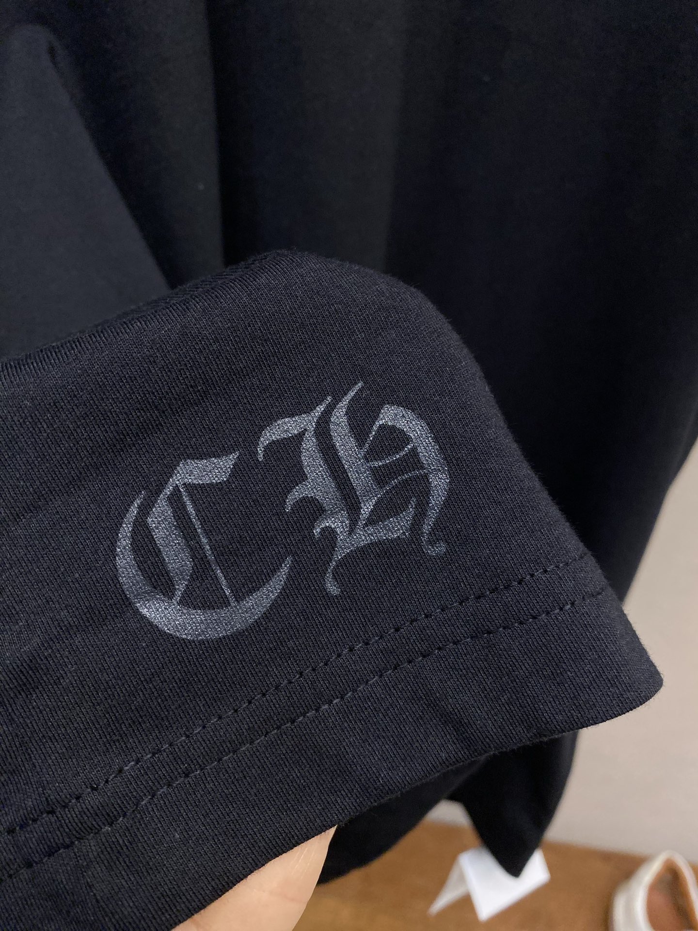 这款衣服是AAAAA 1:1 质量 (非常棒). 使用了和原版一模一样的材料. 商标部分也保持了和克罗心/Chrome Hearts一样. 图片拍摄是实物衣服拍摄, 您所收到的实物保证和我们图片一模一样.