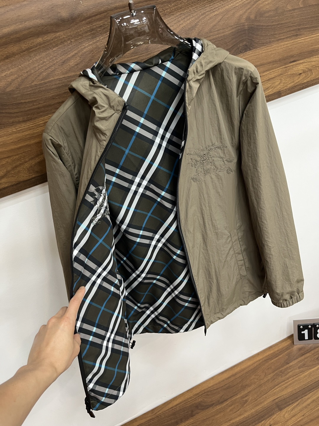 这款衣服是AAAAA 1:1 质量 (非常棒). 使用了和原版一模一样的材料. 商标部分也保持了和巴宝莉/Burberry一样. 图片拍摄是实物衣服拍摄, 您所收到的实物保证和我们图片一模一样.