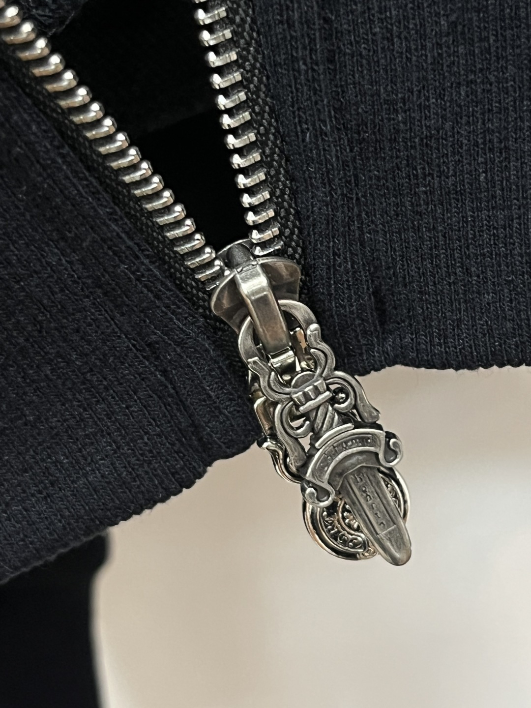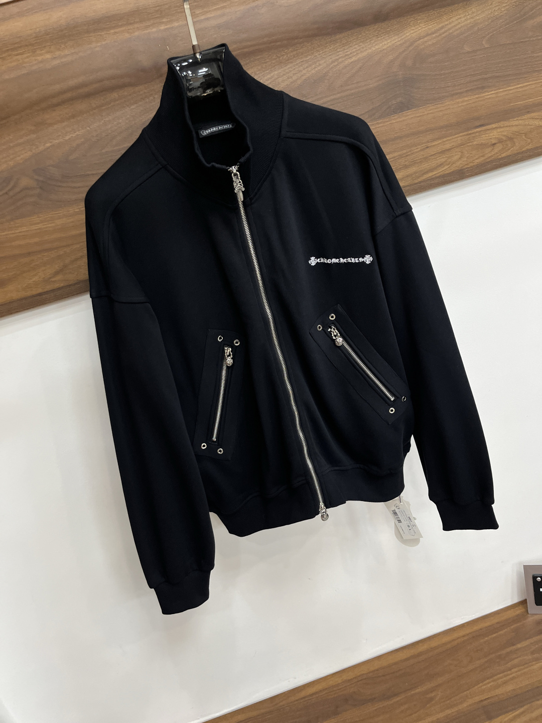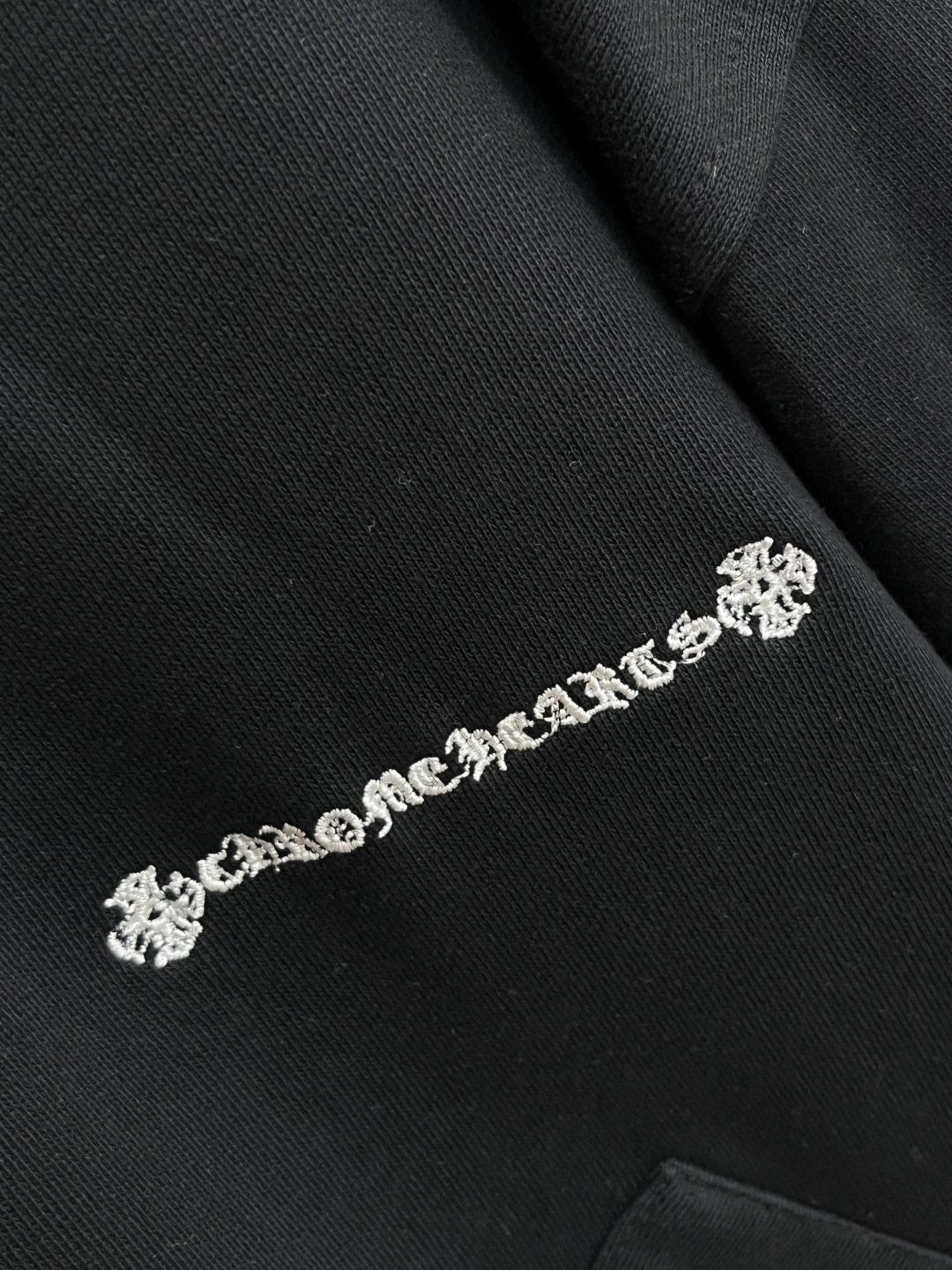 这款衣服是AAAAA 1:1 质量 (非常棒). 使用了和原版一模一样的材料. 商标部分也保持了和克罗心/Chrome Hearts一样. 图片拍摄是实物衣服拍摄, 您所收到的实物保证和我们图片一模一样.