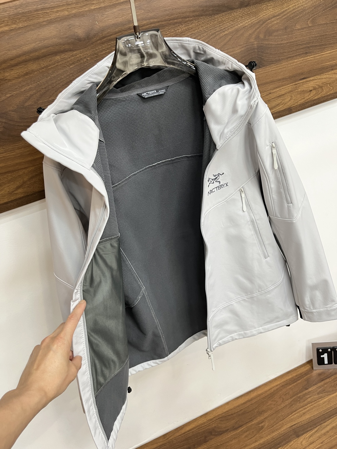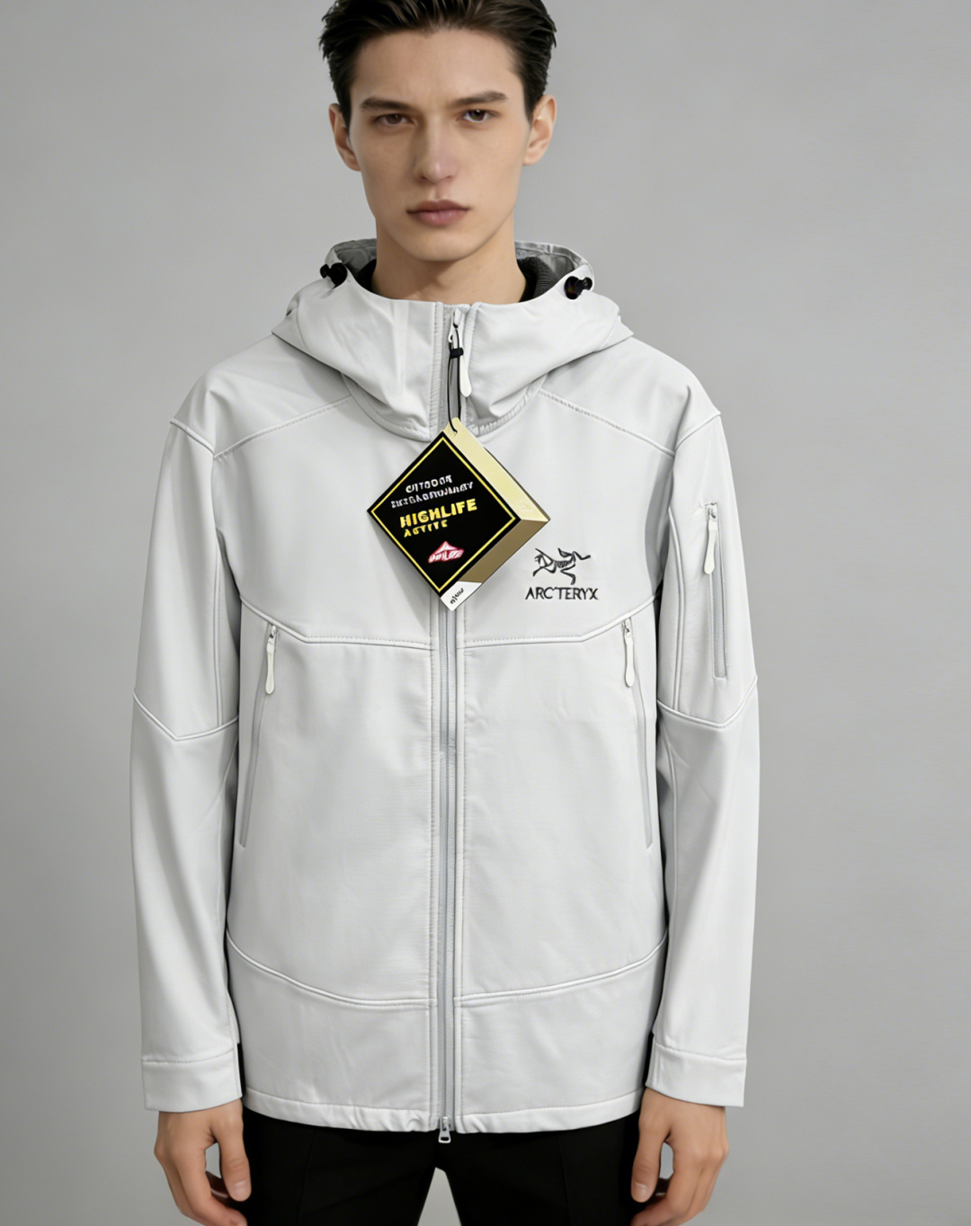 这款衣服是AAAAA 1:1 质量 (非常棒). 使用了和原版一模一样的材料. 商标部分也保持了和ARC'TERYX一样. 图片拍摄是实物衣服拍摄, 您所收到的实物保证和我们图片一模一样.