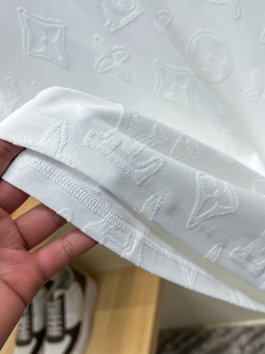 这款衣服是AAAAA 1:1 质量 (非常棒). 使用了和原版一模一样的材料. 商标部分也保持了和路易威登/Louis Vuitton一样. 图片拍摄是实物衣服拍摄, 您所收到的实物保证和我们图片一模一样.