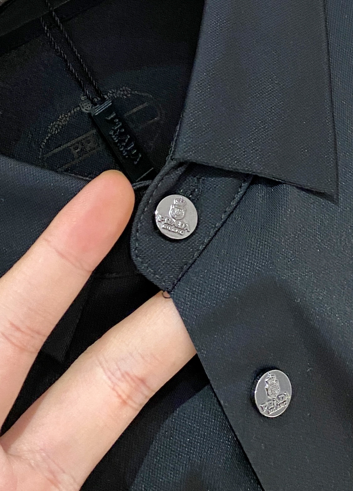 这款衣服是AAAAA 1:1 质量 (非常棒). 使用了和原版一模一样的材料. 商标部分也保持了和普拉达/Prada一样. 图片拍摄是实物衣服拍摄, 您所收到的实物保证和我们图片一模一样.
