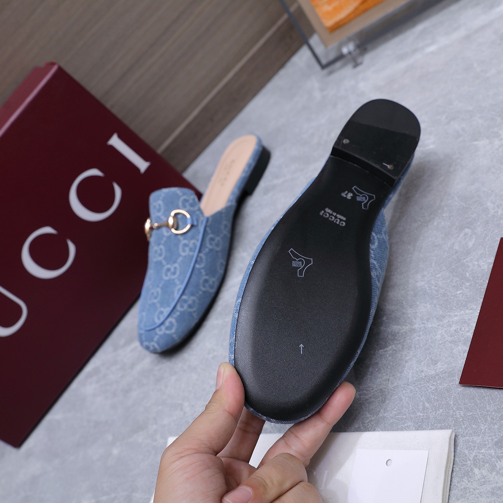 这款鞋子是AAAAA 1:1 质量 (非常棒). 使用了和原版一模一样的材料. 商标部分也保持了和古奇/Gucci一样. 图片拍摄是实物鞋子拍摄, 您所收到的实物保证和我们图片一模一样.