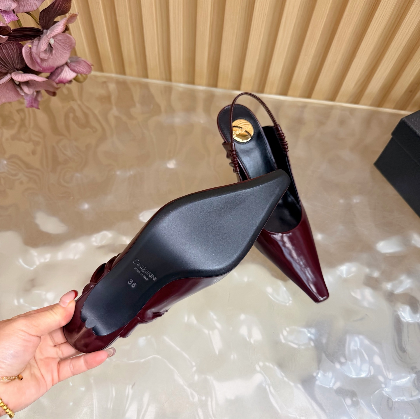 这款鞋子是AAAAA 1:1 质量 (非常棒). 使用了和原版一模一样的材料. 商标部分也保持了和圣罗兰/Saint Laurent一样. 图片拍摄是实物鞋子拍摄, 您所收到的实物保证和我们图片一模一样.