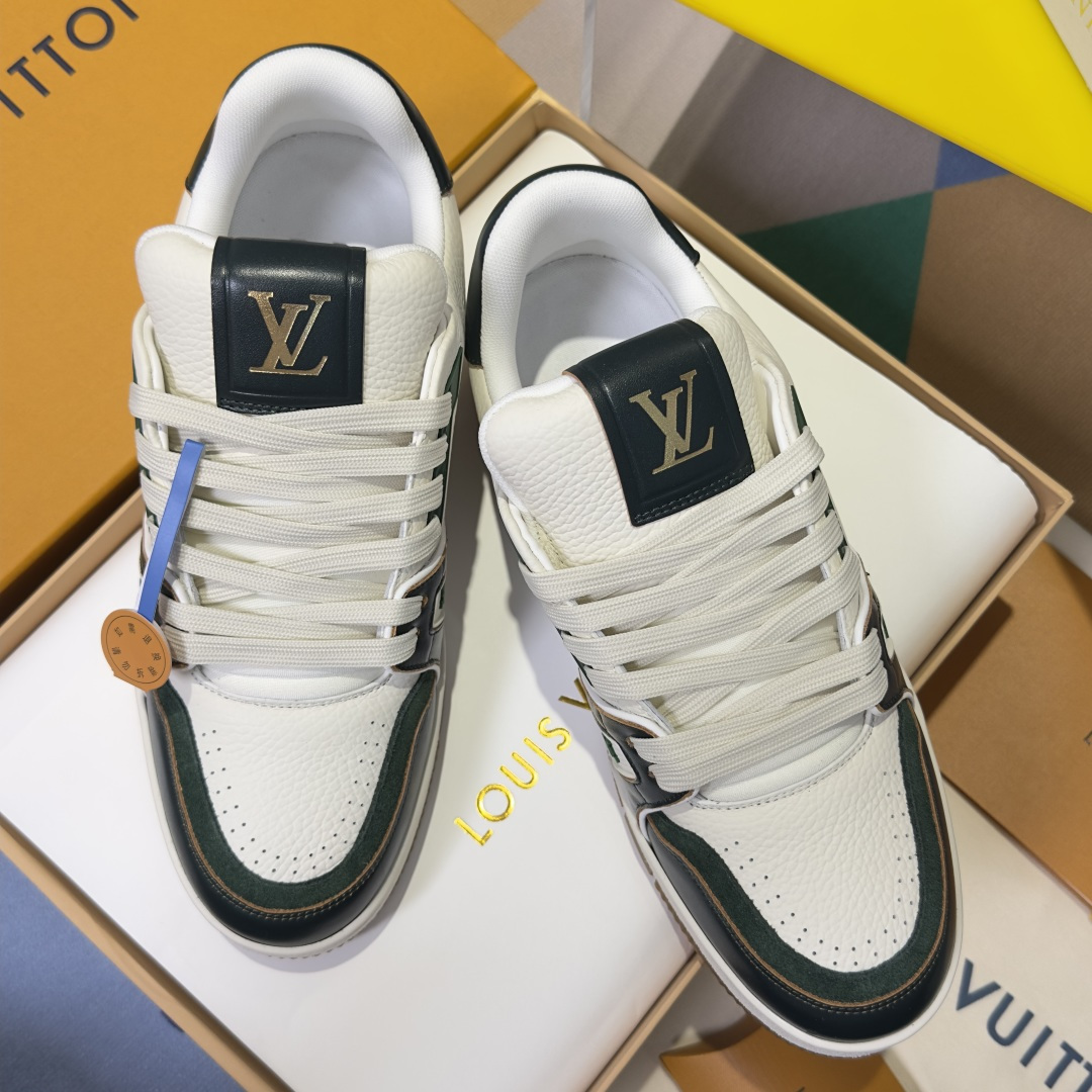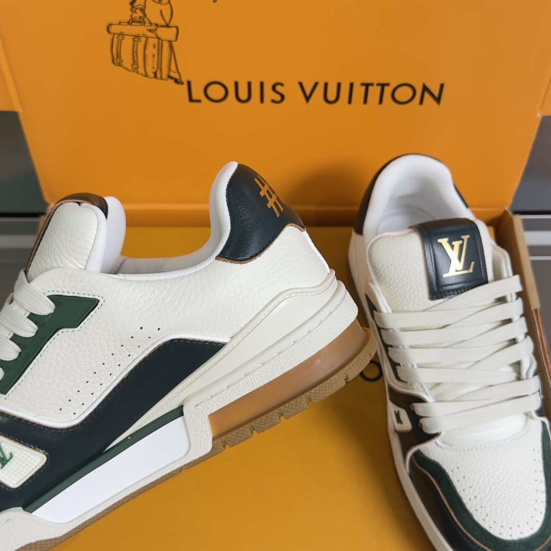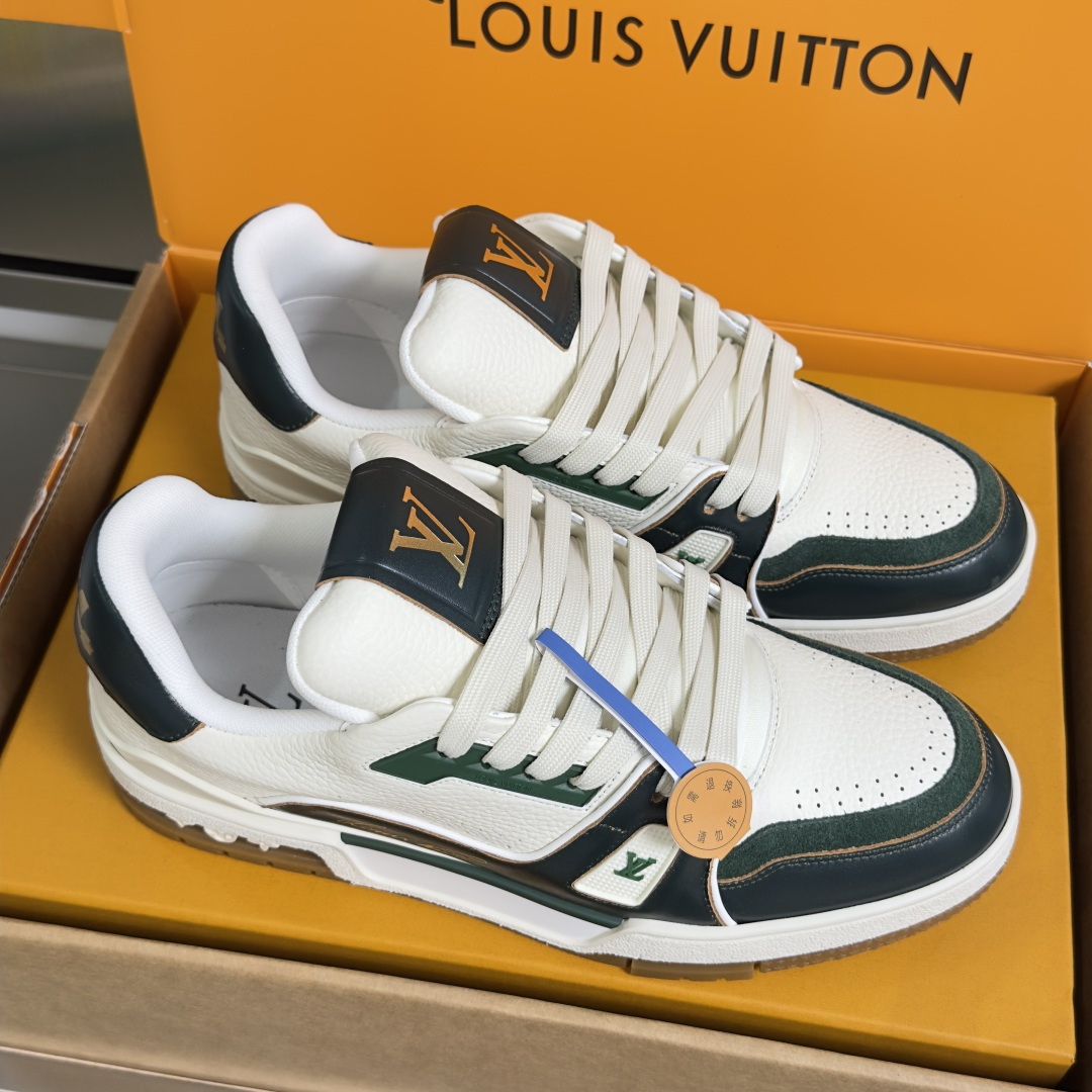 这款鞋子是AAAAA 1:1 质量 (非常棒). 使用了和原版一模一样的材料. 商标部分也保持了和路易威登/Louis Vuitton一样. 图片拍摄是实物鞋子拍摄, 您所收到的实物保证和我们图片一模一样.
