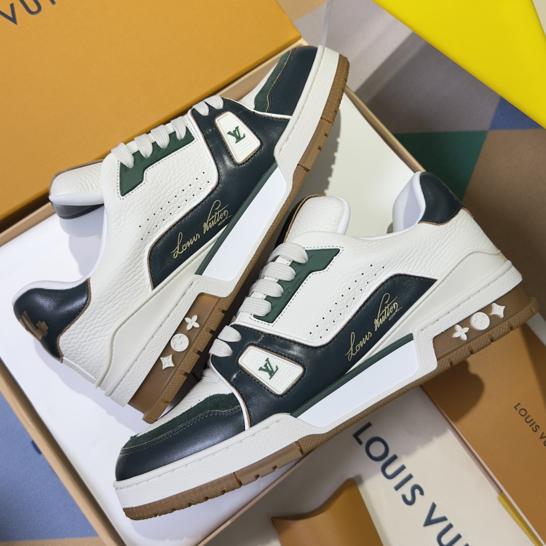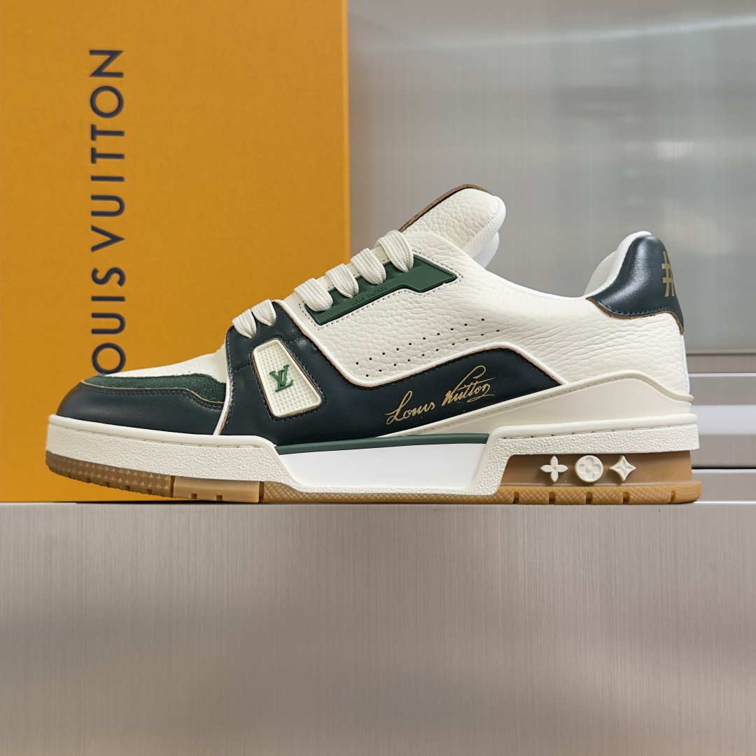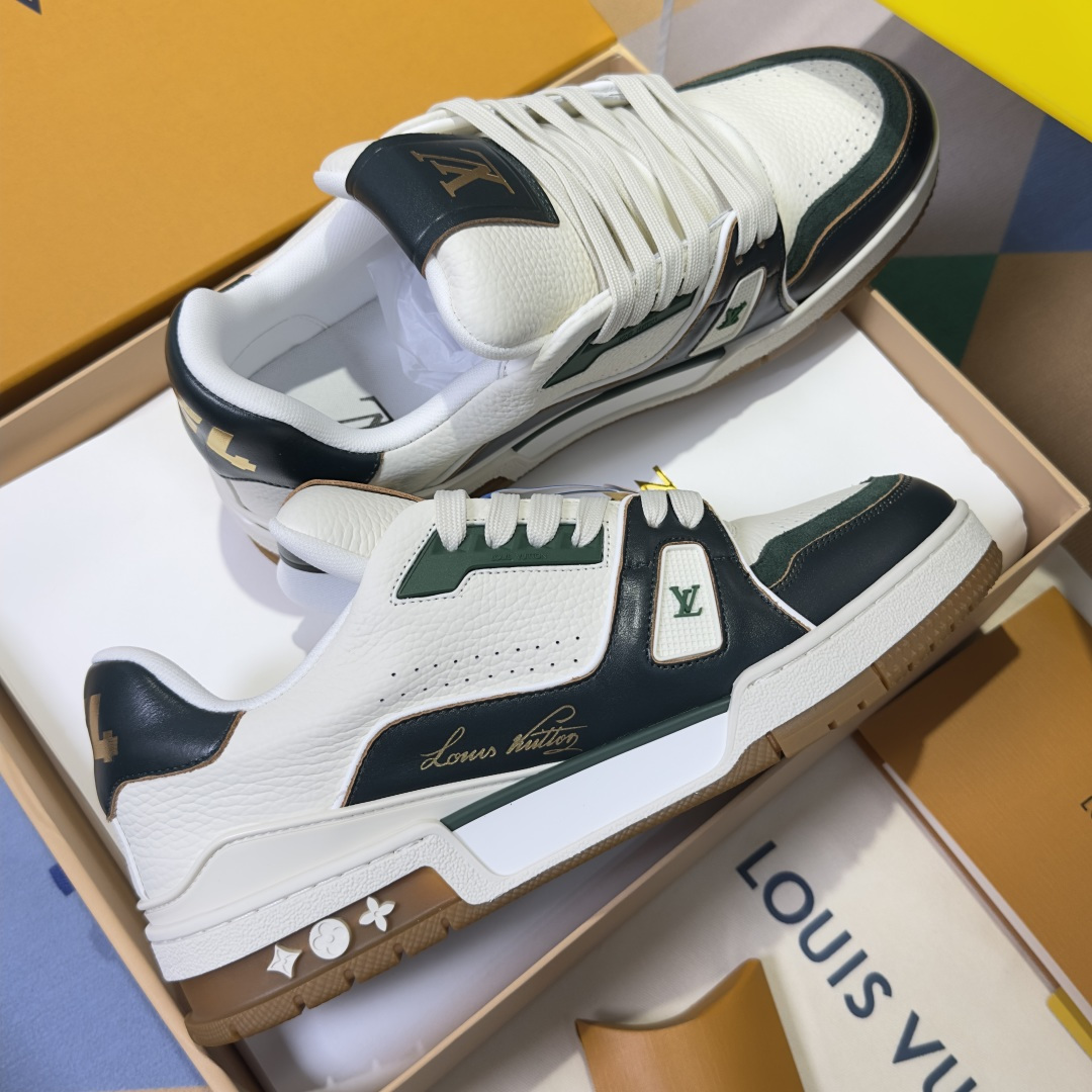 这款鞋子是AAAAA 1:1 质量 (非常棒). 使用了和原版一模一样的材料. 商标部分也保持了和路易威登/Louis Vuitton一样. 图片拍摄是实物鞋子拍摄, 您所收到的实物保证和我们图片一模一样.