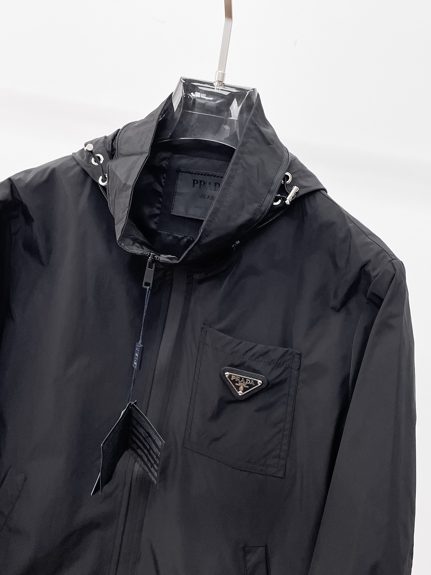 这款衣服是AAAAA 1:1 质量 (非常棒). 使用了和原版一模一样的材料. 商标部分也保持了和普拉达/Prada一样. 图片拍摄是实物衣服拍摄, 您所收到的实物保证和我们图片一模一样.
