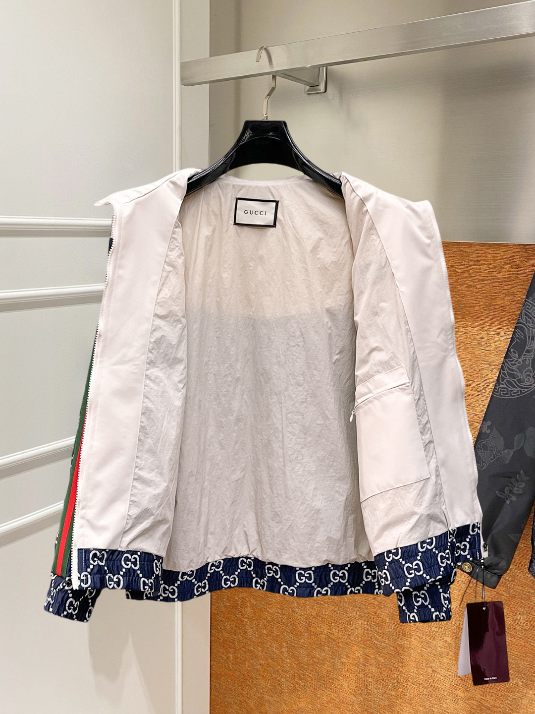 这款衣服是AAAAA 1:1 质量 (非常棒). 使用了和原版一模一样的材料. 商标部分也保持了和古奇/Gucci一样. 图片拍摄是实物衣服拍摄, 您所收到的实物保证和我们图片一模一样.