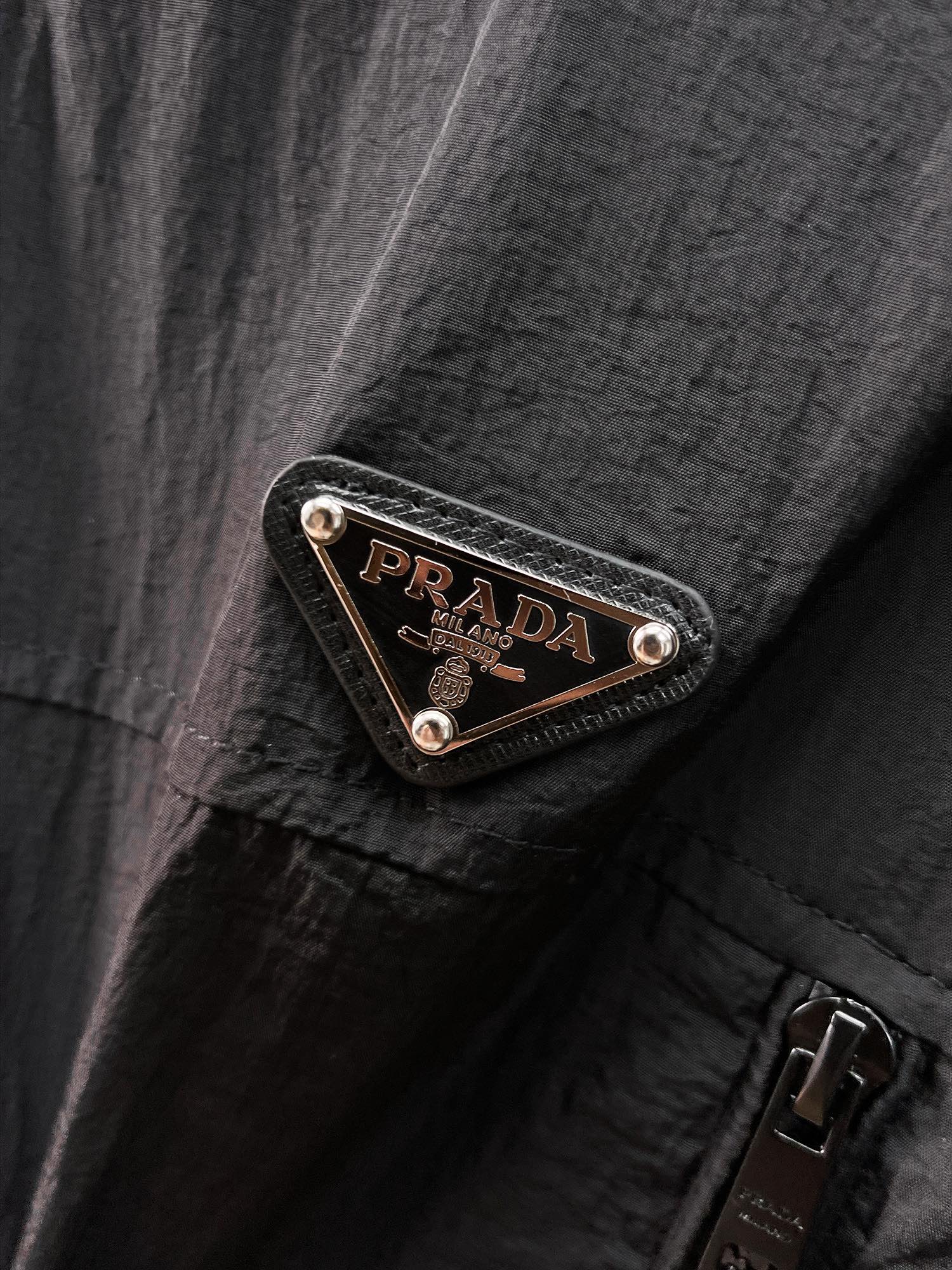 这款衣服是AAAAA 1:1 质量 (非常棒). 使用了和原版一模一样的材料. 商标部分也保持了和普拉达/Prada一样. 图片拍摄是实物衣服拍摄, 您所收到的实物保证和我们图片一模一样.