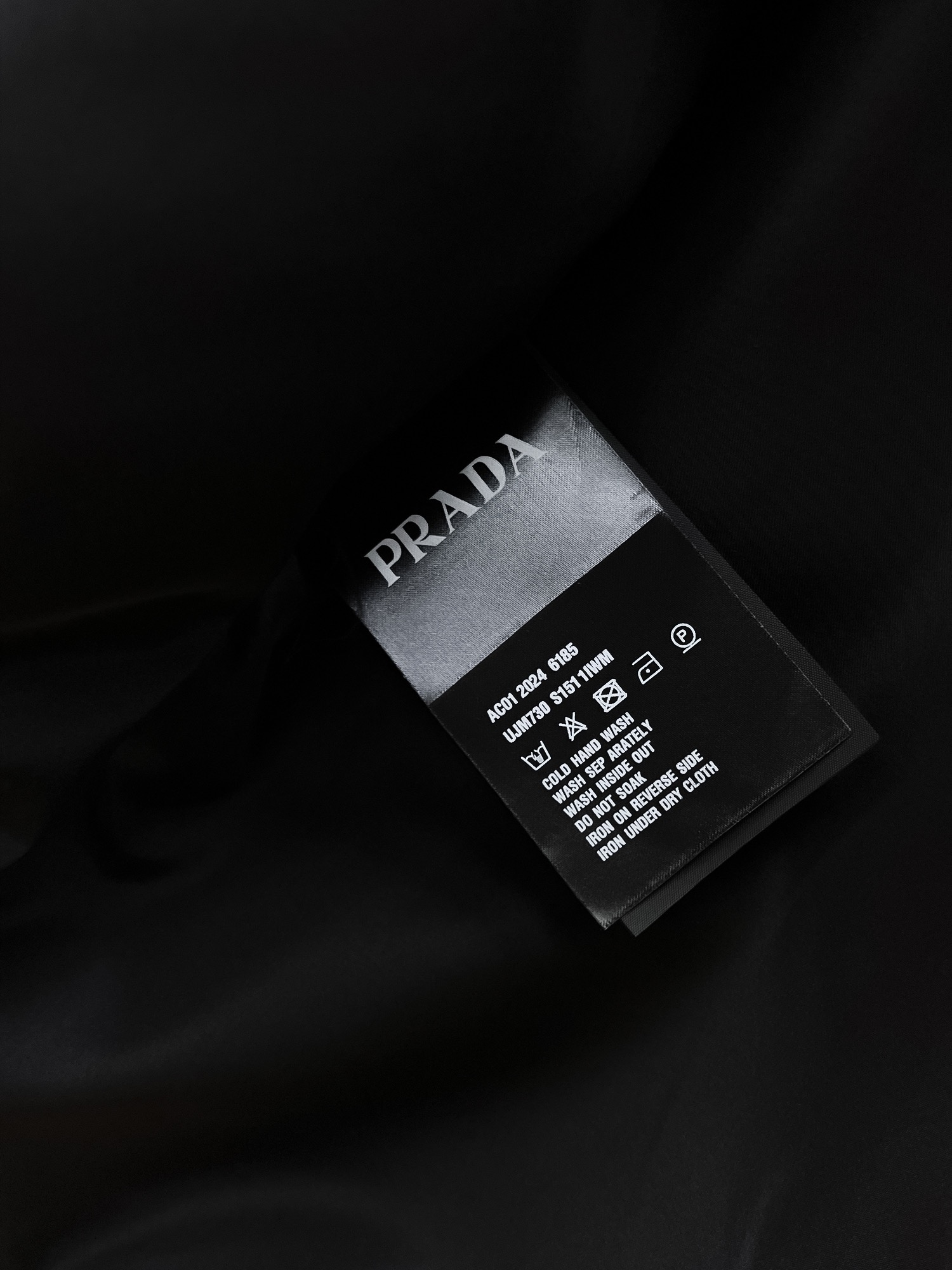 这款衣服是AAAAA 1:1 质量 (非常棒). 使用了和原版一模一样的材料. 商标部分也保持了和普拉达/Prada一样. 图片拍摄是实物衣服拍摄, 您所收到的实物保证和我们图片一模一样.