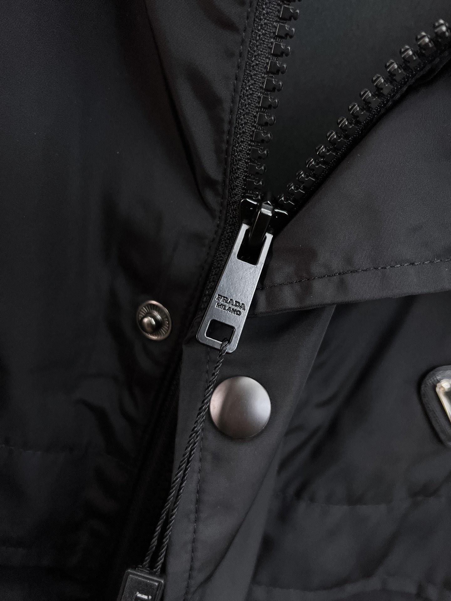这款衣服是AAAAA 1:1 质量 (非常棒). 使用了和原版一模一样的材料. 商标部分也保持了和普拉达/Prada一样. 图片拍摄是实物衣服拍摄, 您所收到的实物保证和我们图片一模一样.
