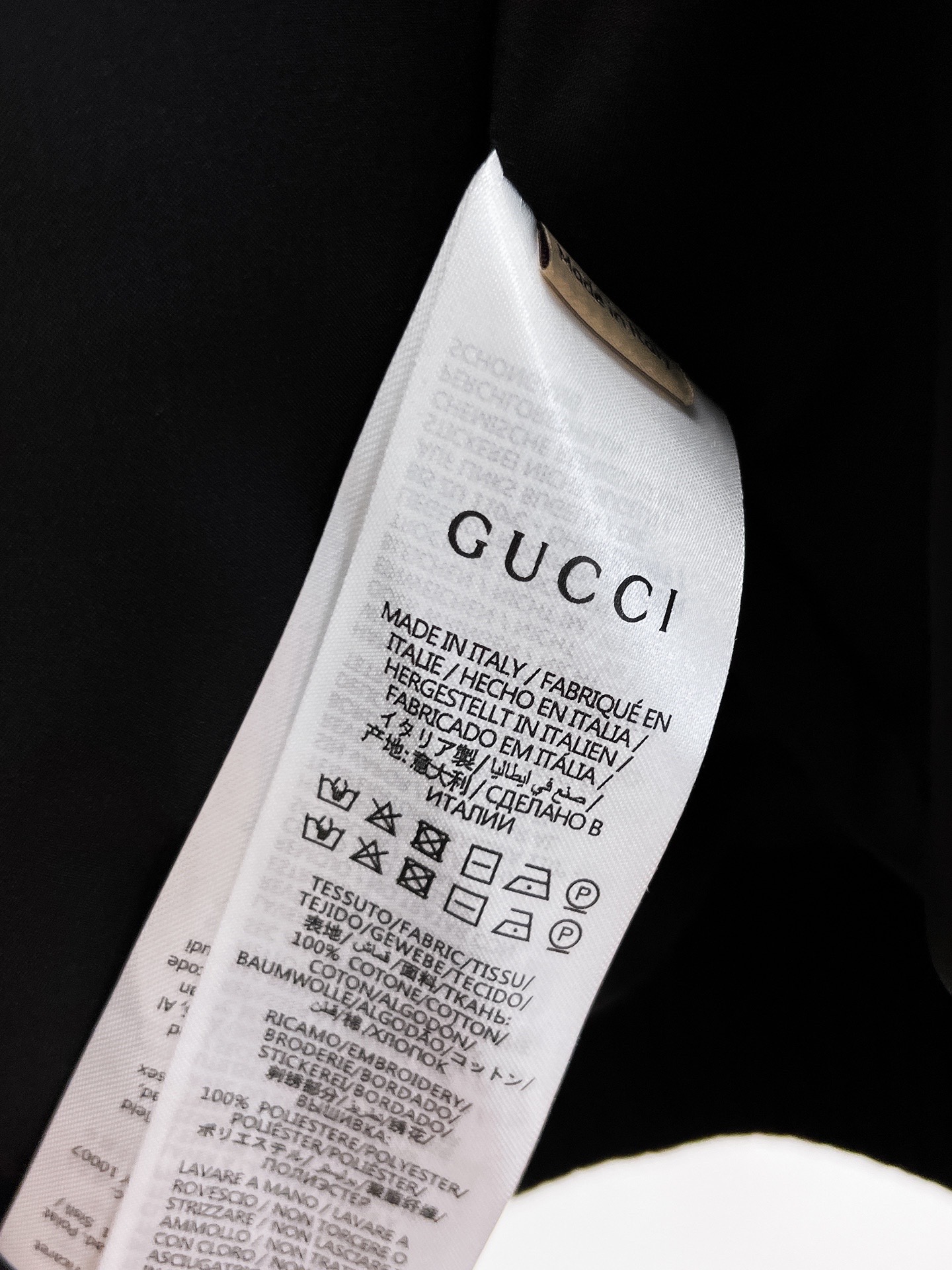 这款衣服是AAAAA 1:1 质量 (非常棒). 使用了和原版一模一样的材料. 商标部分也保持了和古奇/Gucci一样. 图片拍摄是实物衣服拍摄, 您所收到的实物保证和我们图片一模一样.
