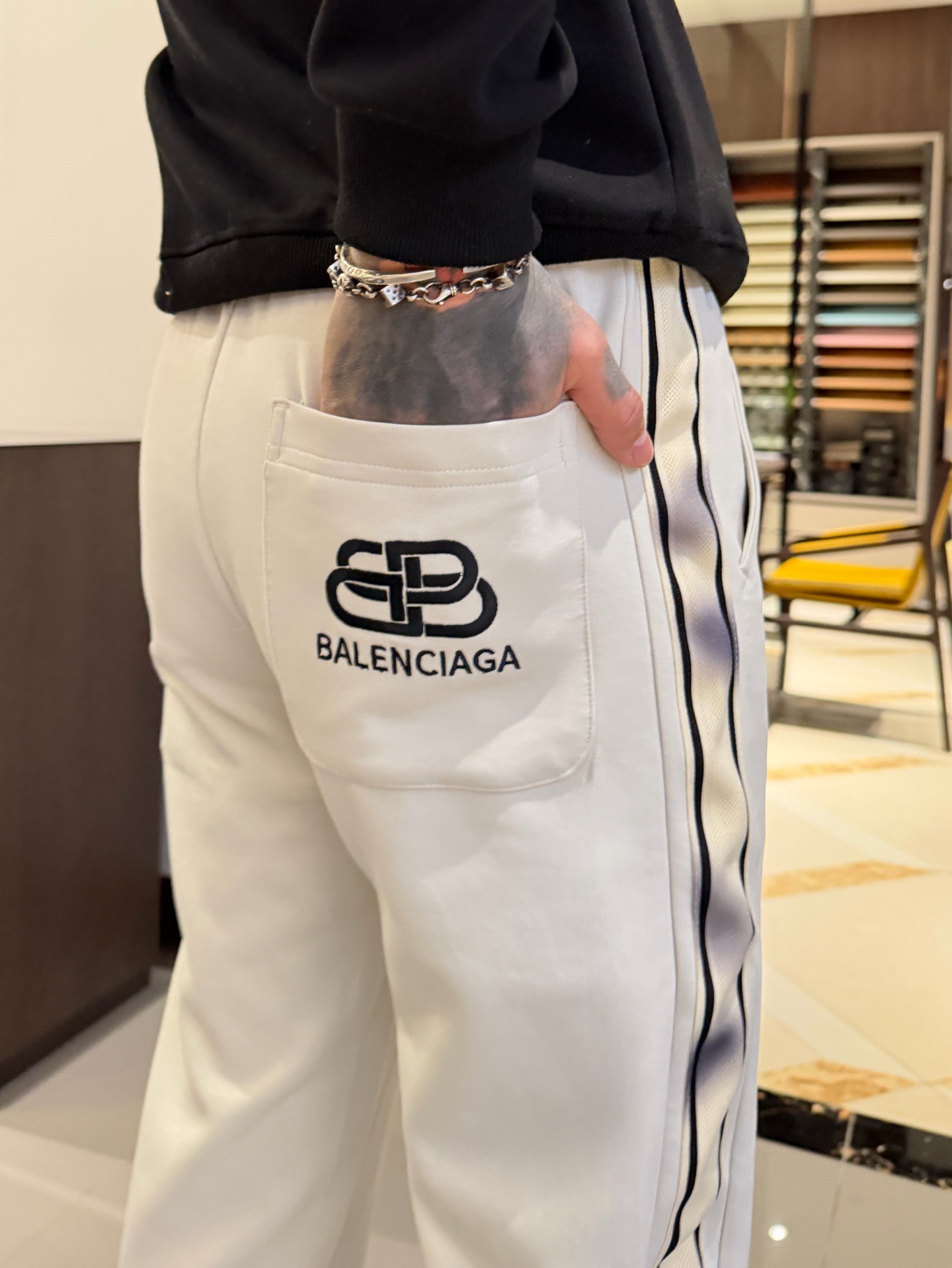 这款衣服是AAAAA 1:1 质量 (非常棒). 使用了和原版一模一样的材料. 商标部分也保持了和巴黎世家/Balenciaga一样. 图片拍摄是实物衣服拍摄, 您所收到的实物保证和我们图片一模一样.