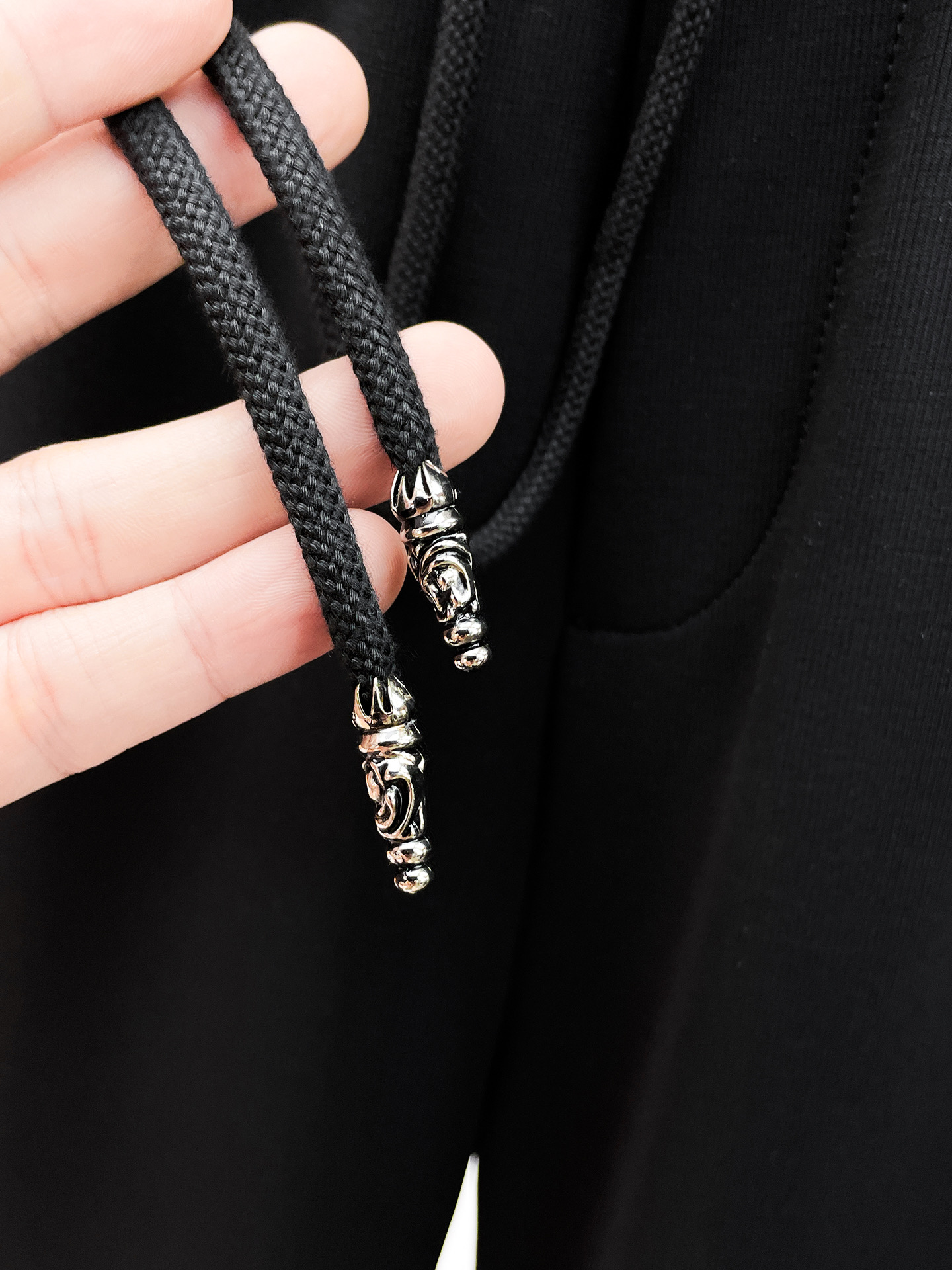 这款衣服是AAAAA 1:1 质量 (非常棒). 使用了和原版一模一样的材料. 商标部分也保持了和克罗心/Chrome Hearts一样. 图片拍摄是实物衣服拍摄, 您所收到的实物保证和我们图片一模一样.
