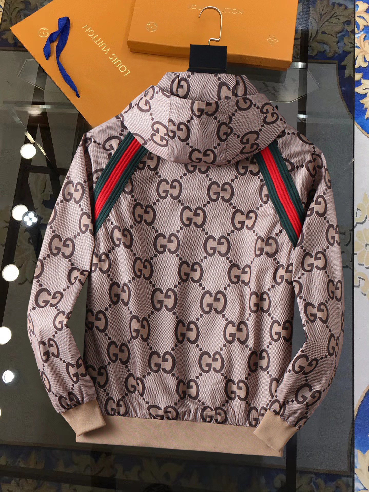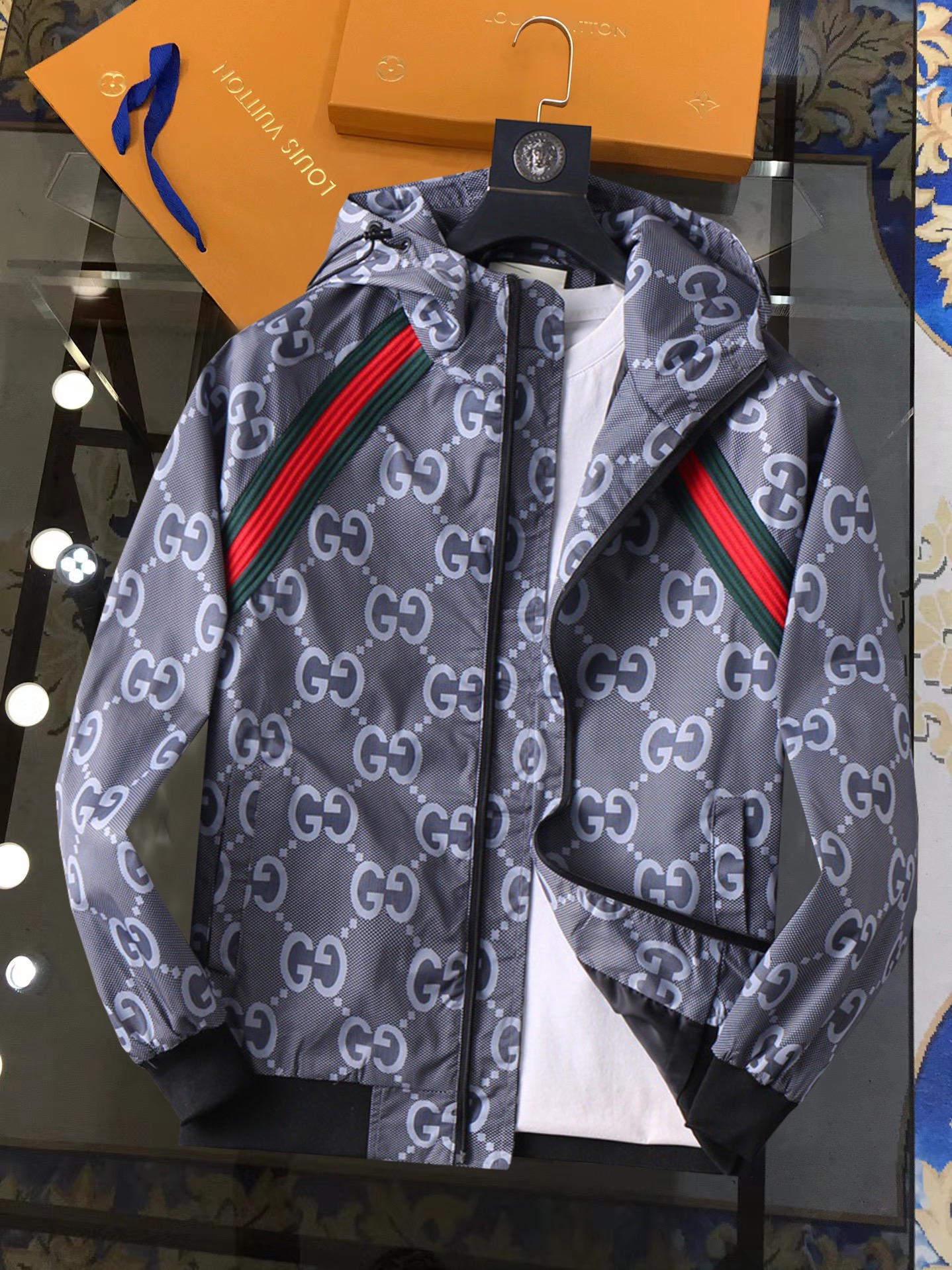 这款衣服是AAAAA 1:1 质量 (非常棒). 使用了和原版一模一样的材料. 商标部分也保持了和古奇/Gucci一样. 图片拍摄是实物衣服拍摄, 您所收到的实物保证和我们图片一模一样.