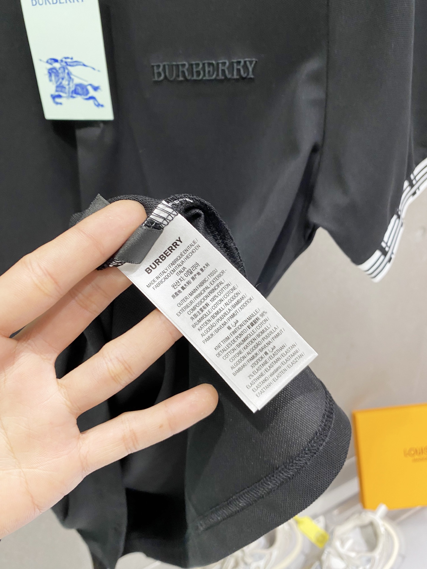 这款衣服是AAAAA 1:1 质量 (非常棒). 使用了和原版一模一样的材料. 商标部分也保持了和巴宝莉/Burberry一样. 图片拍摄是实物衣服拍摄, 您所收到的实物保证和我们图片一模一样.
