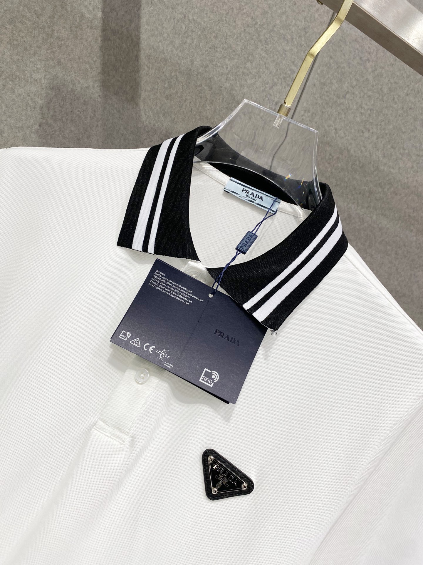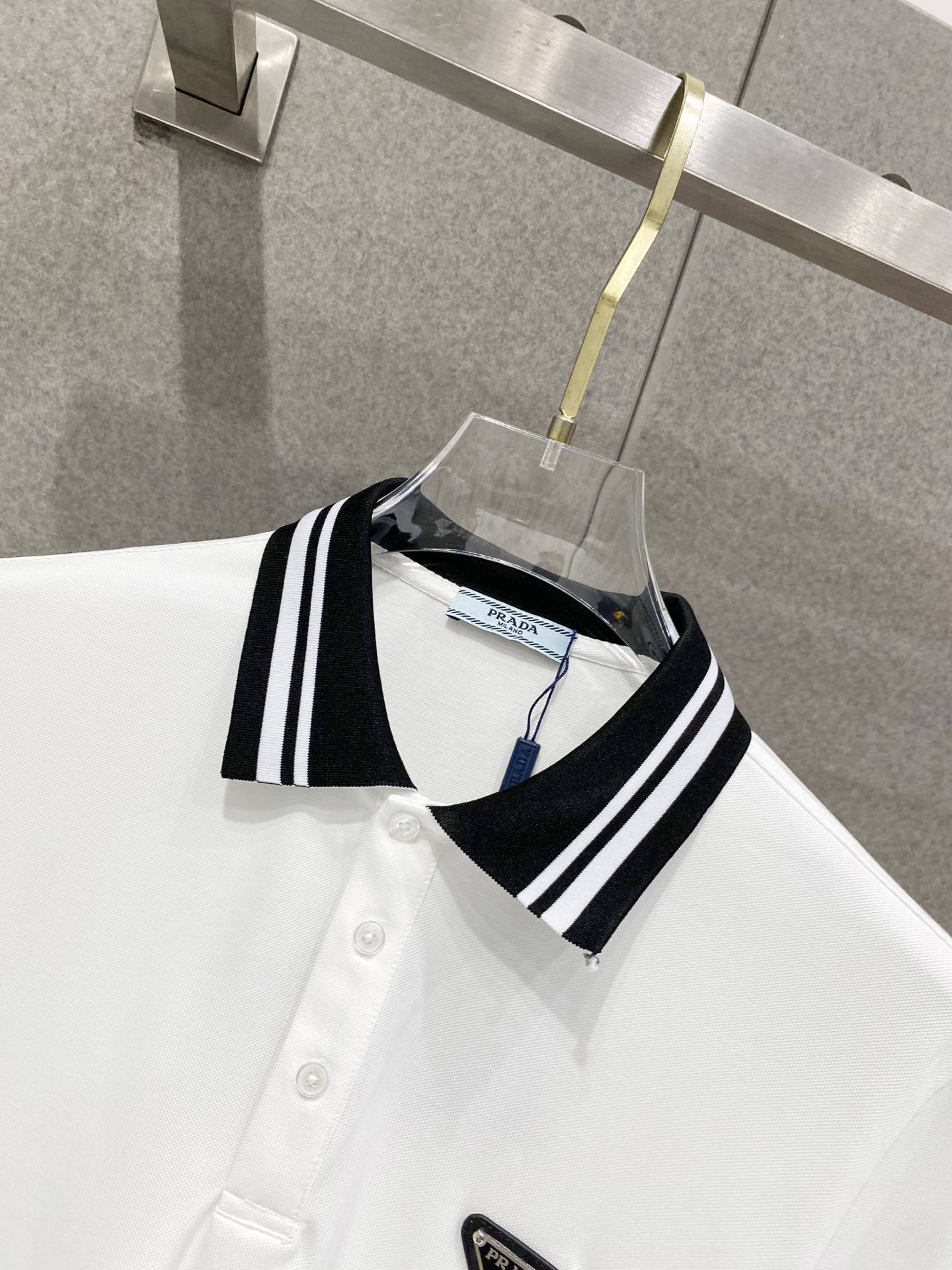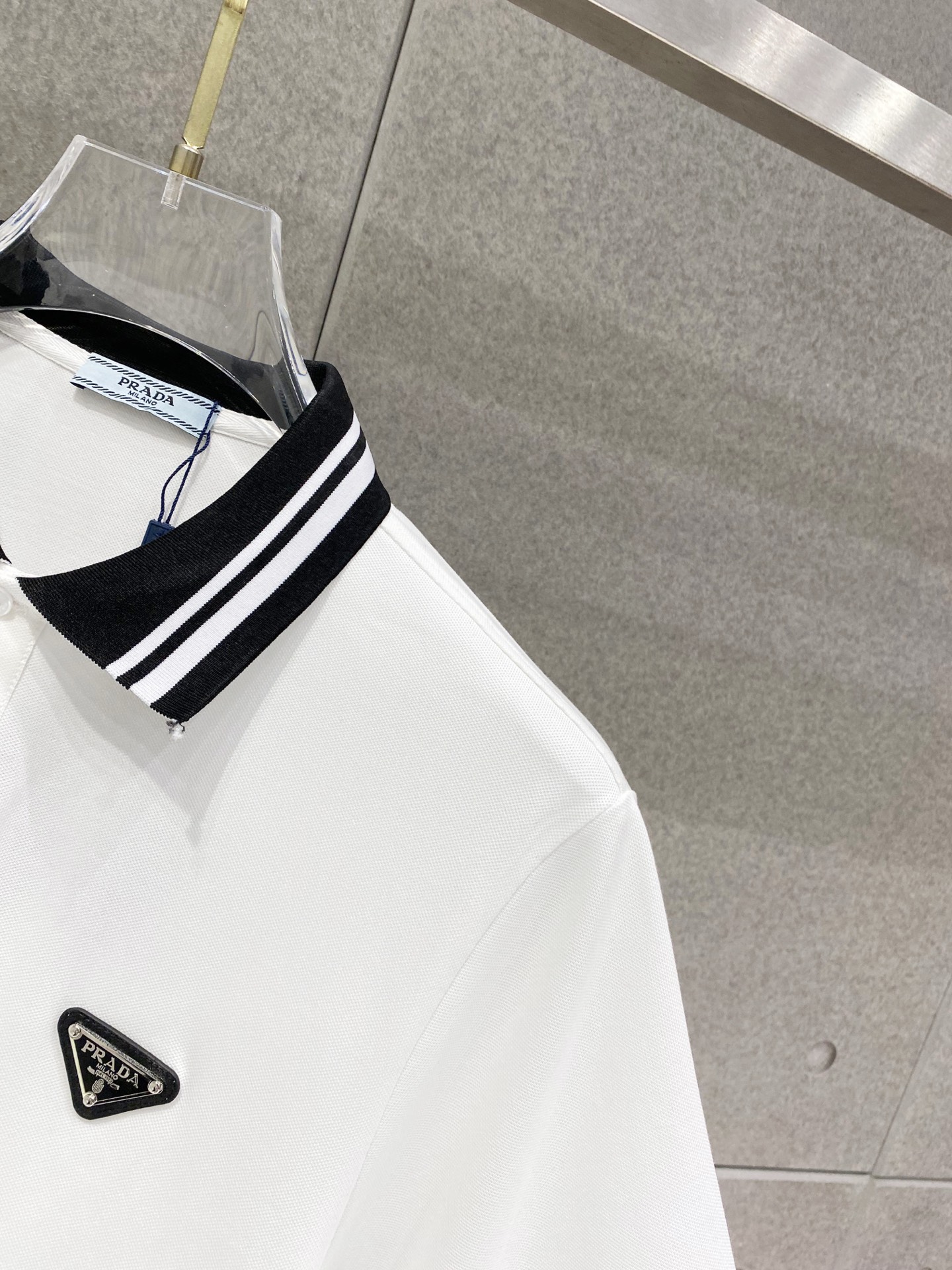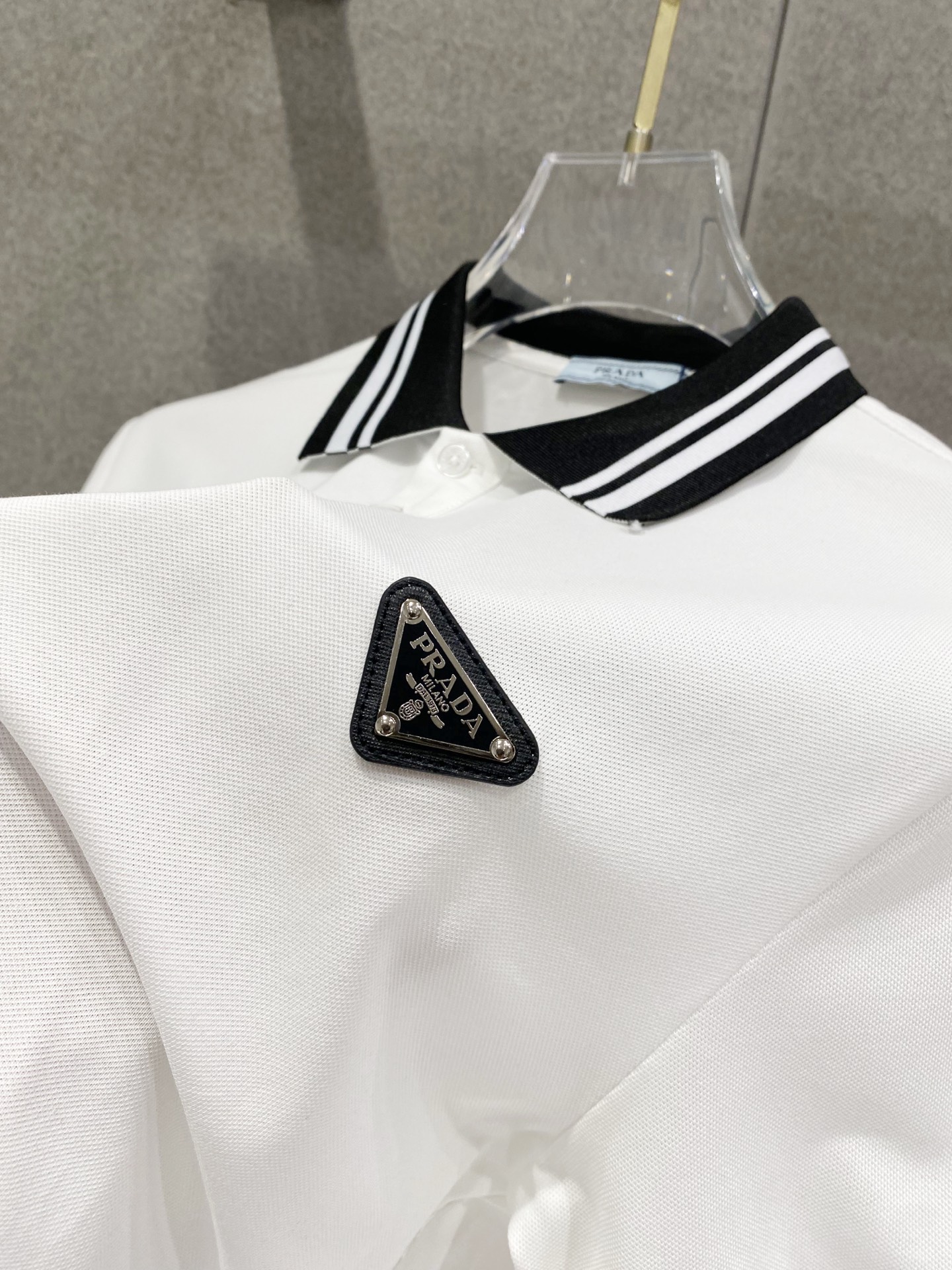 这款衣服是AAAAA 1:1 质量 (非常棒). 使用了和原版一模一样的材料. 商标部分也保持了和普拉达/Prada一样. 图片拍摄是实物衣服拍摄, 您所收到的实物保证和我们图片一模一样.