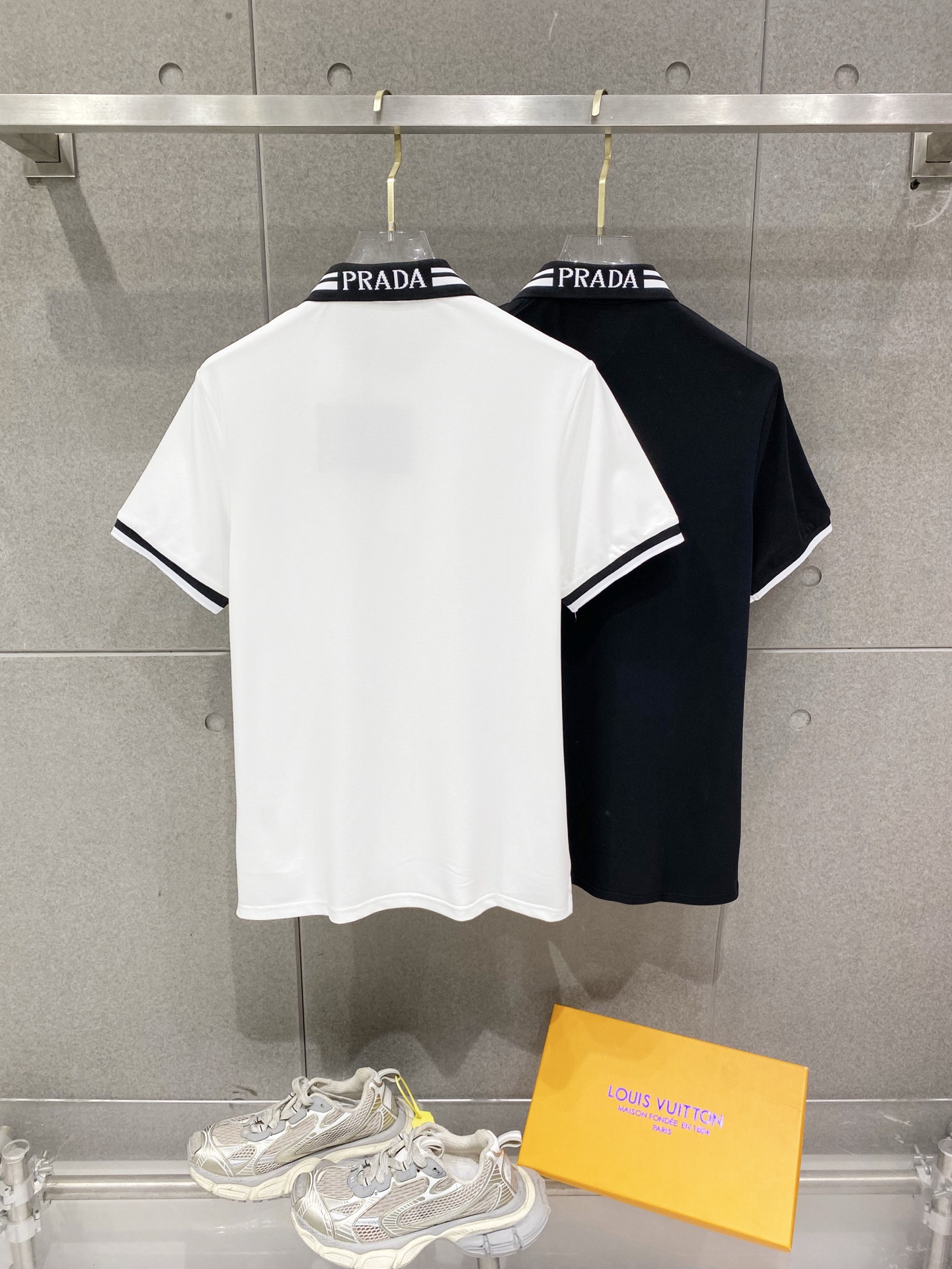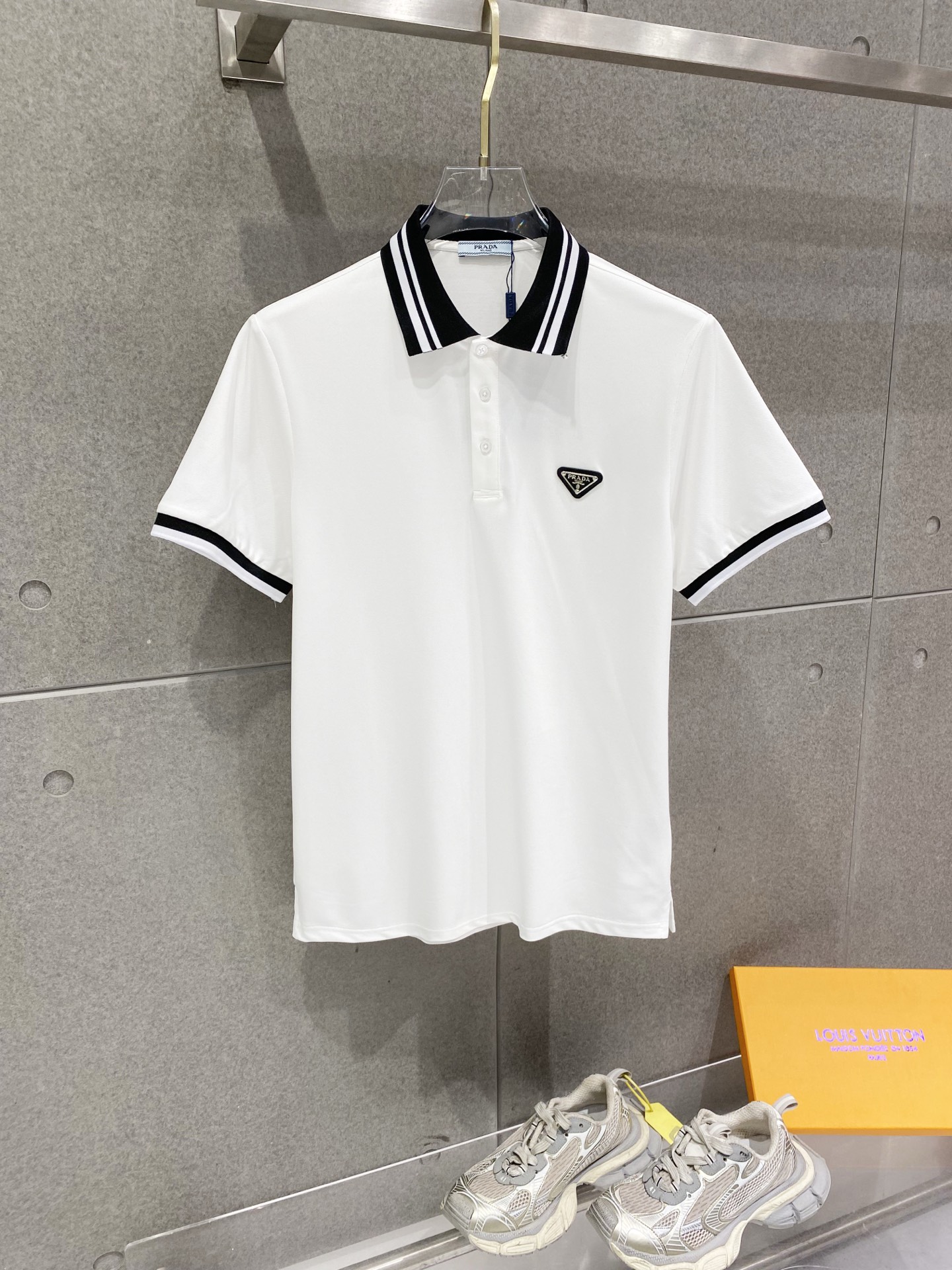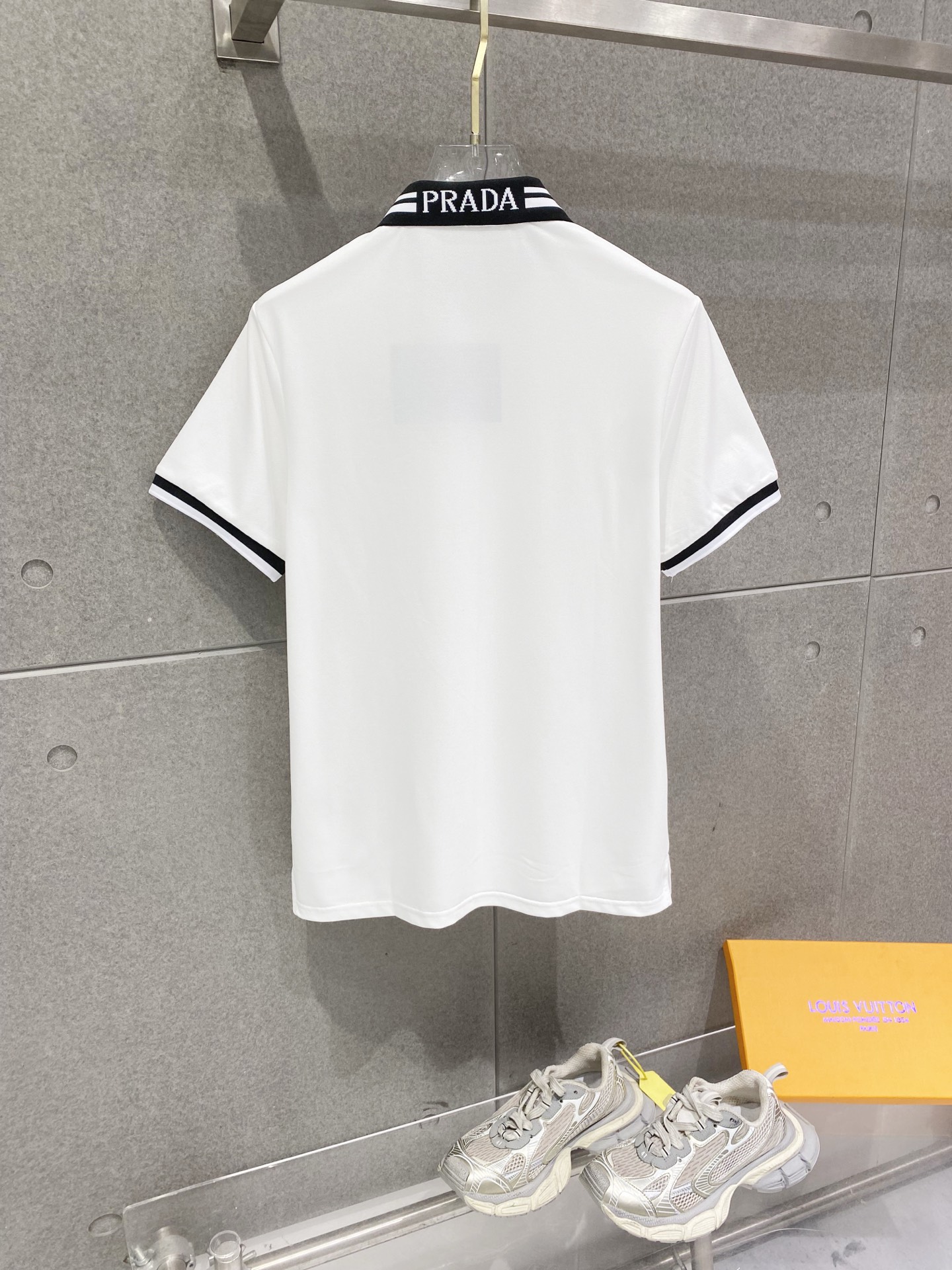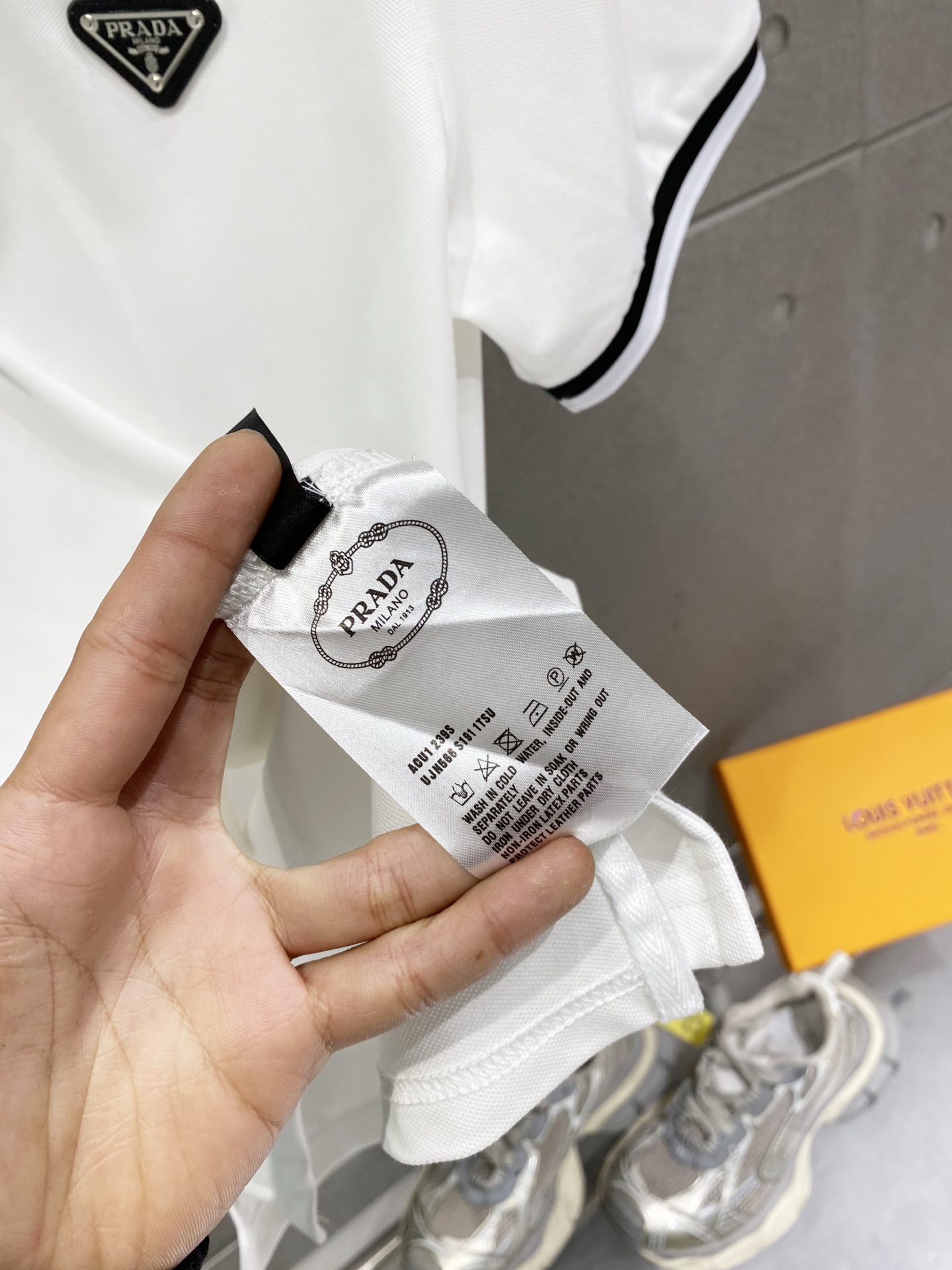 这款衣服是AAAAA 1:1 质量 (非常棒). 使用了和原版一模一样的材料. 商标部分也保持了和普拉达/Prada一样. 图片拍摄是实物衣服拍摄, 您所收到的实物保证和我们图片一模一样.