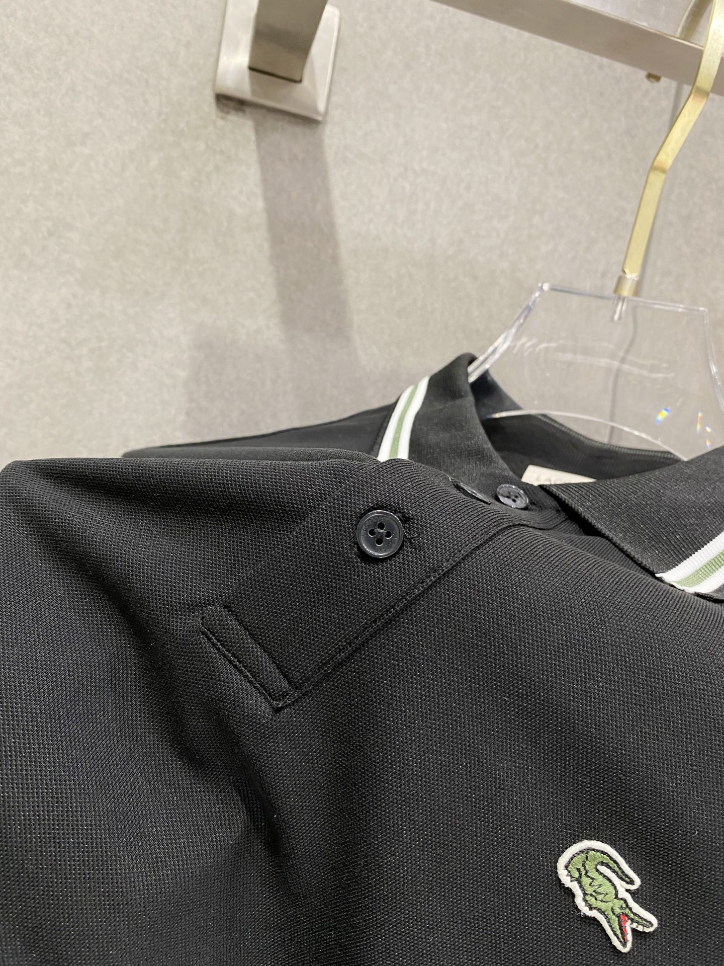 这款衣服是AAAAA 1:1 质量 (非常棒). 使用了和原版一模一样的材料. 商标部分也保持了和LACOSTE一样. 图片拍摄是实物衣服拍摄, 您所收到的实物保证和我们图片一模一样.