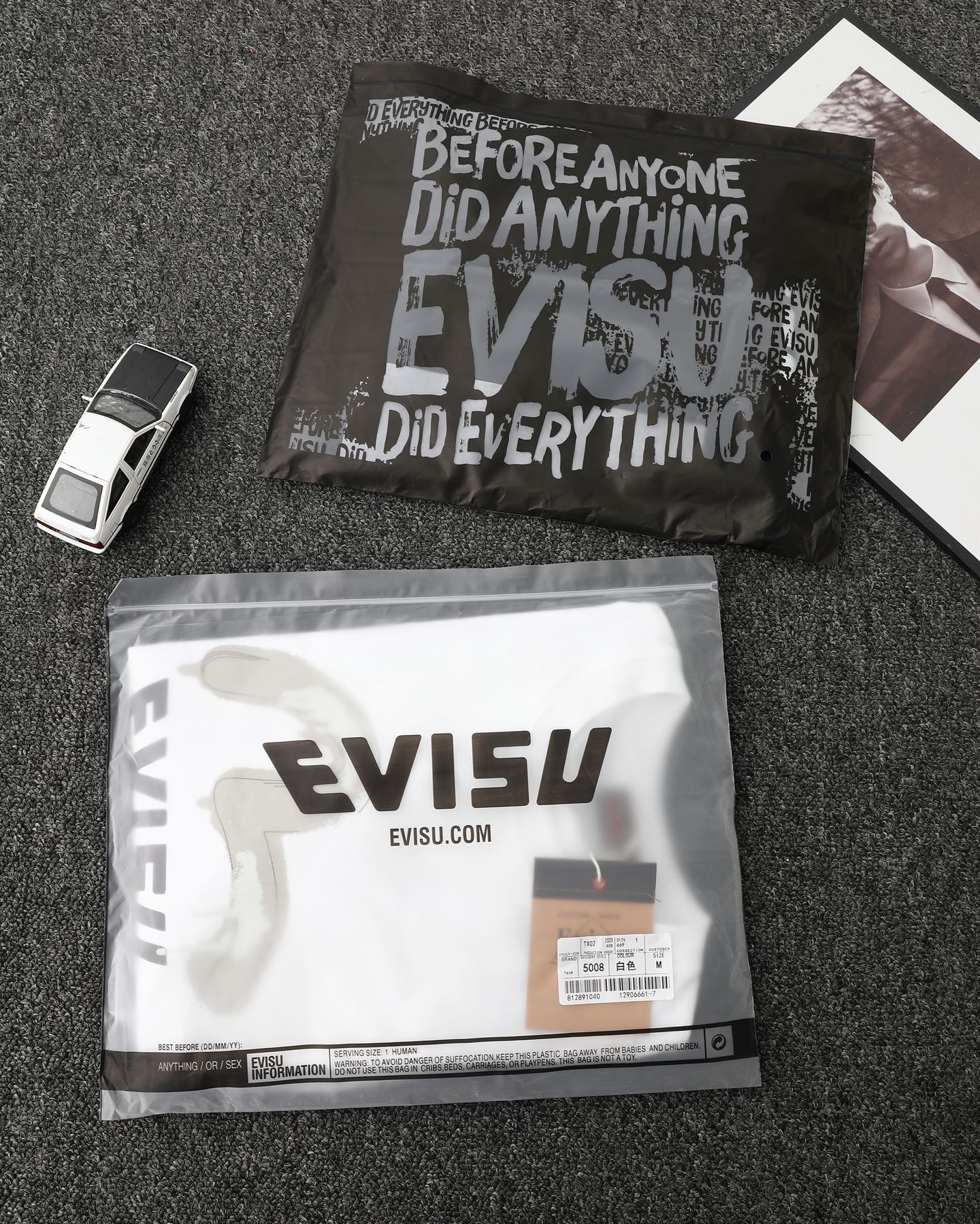 这款衣服是AAAAA 1:1 质量 (非常棒). 使用了和原版一模一样的材料. 商标部分也保持了和EVISU一样. 图片拍摄是实物衣服拍摄, 您所收到的实物保证和我们图片一模一样.