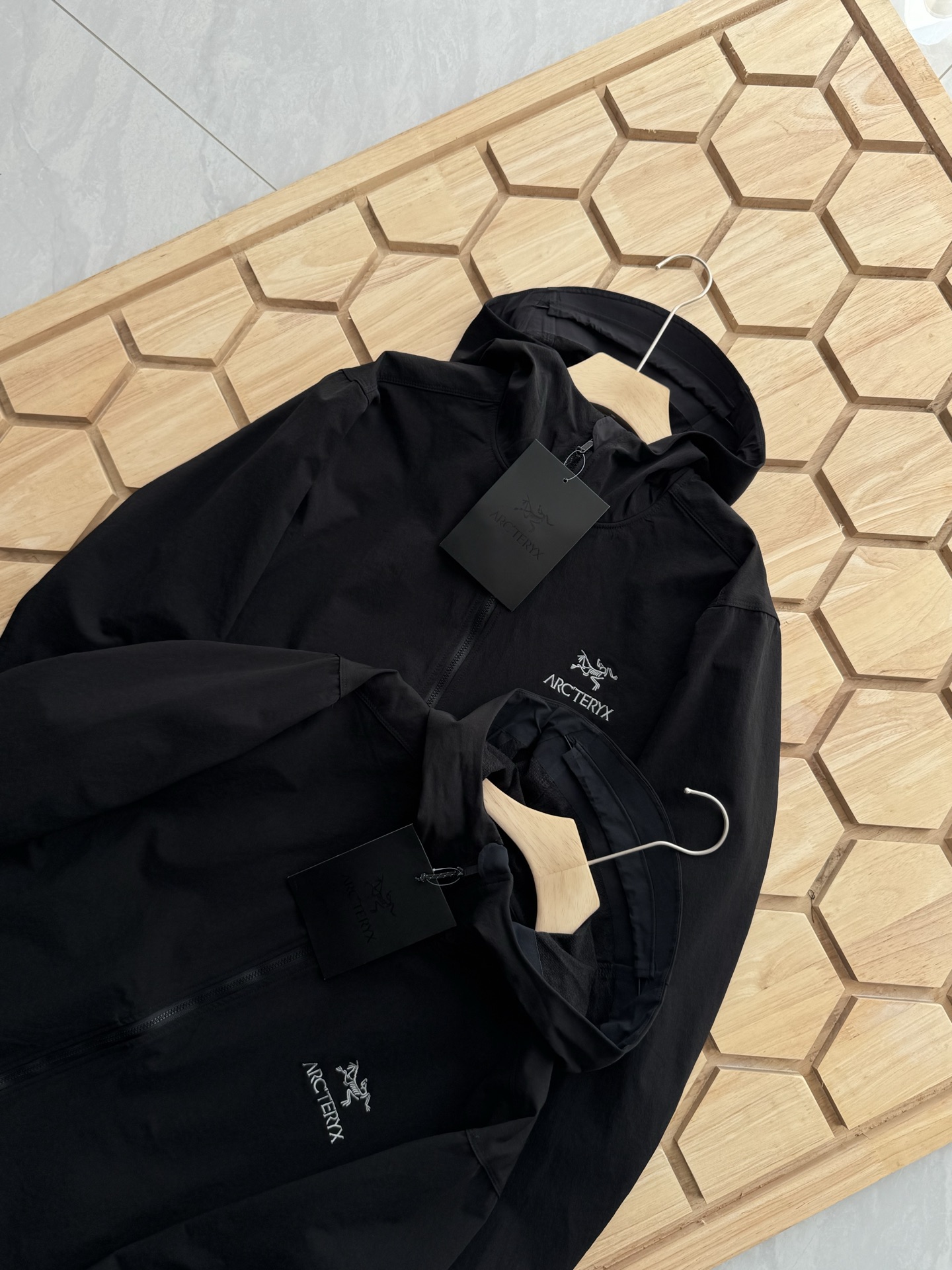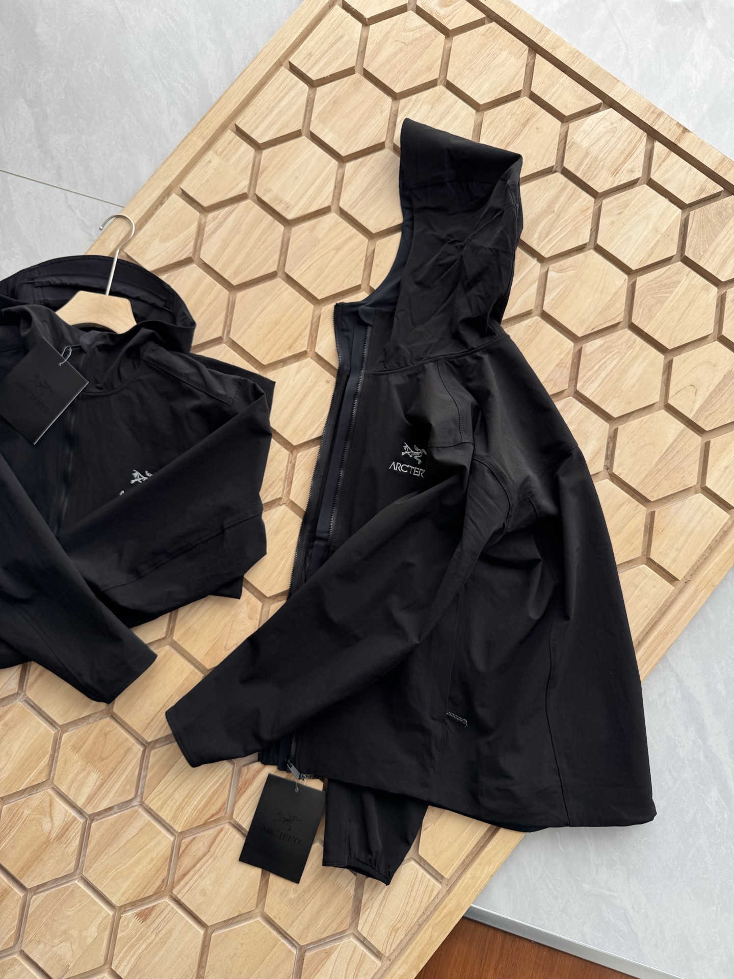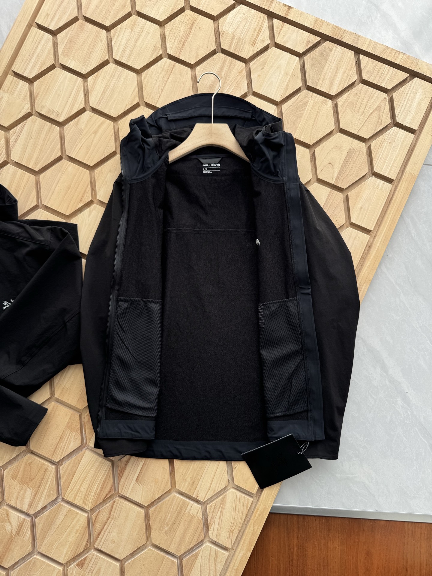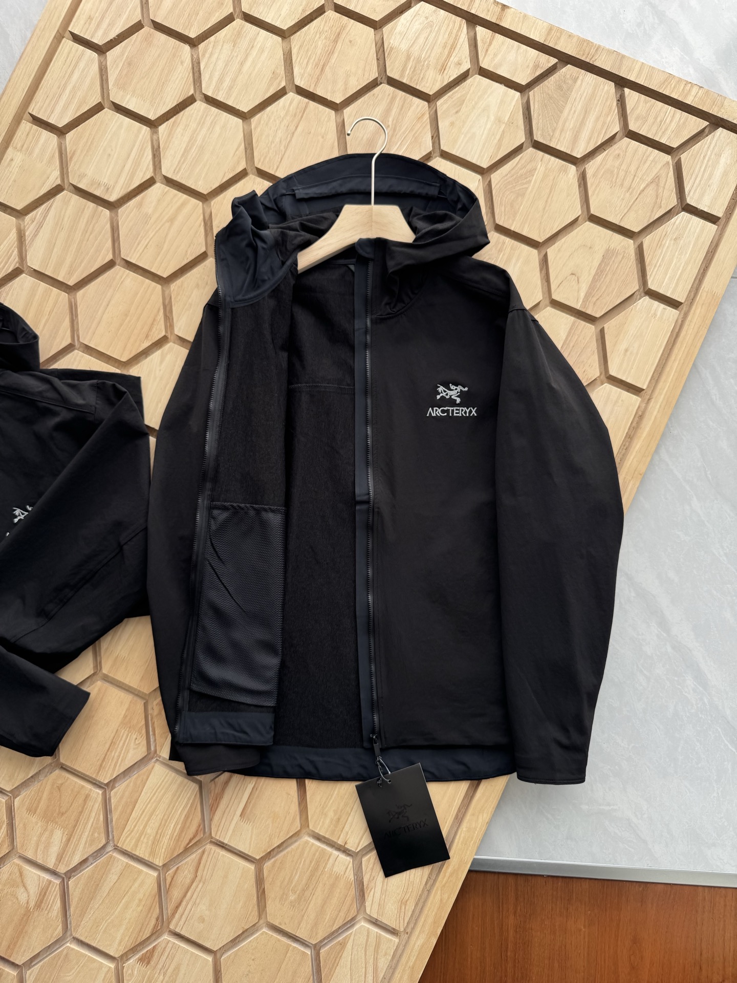 这款衣服是AAAAA 1:1 质量 (非常棒). 使用了和原版一模一样的材料. 商标部分也保持了和ARC'TERYX一样. 图片拍摄是实物衣服拍摄, 您所收到的实物保证和我们图片一模一样.