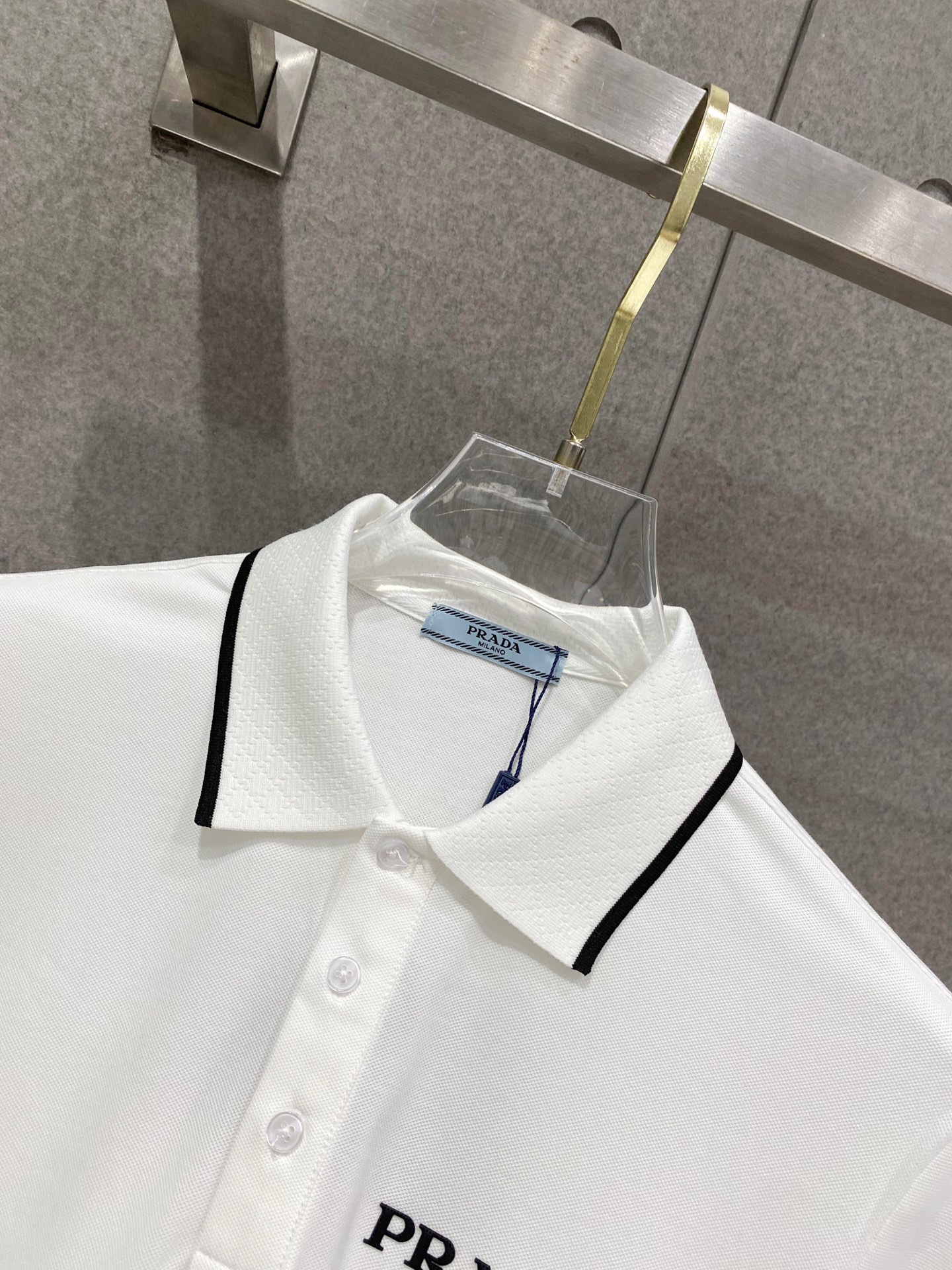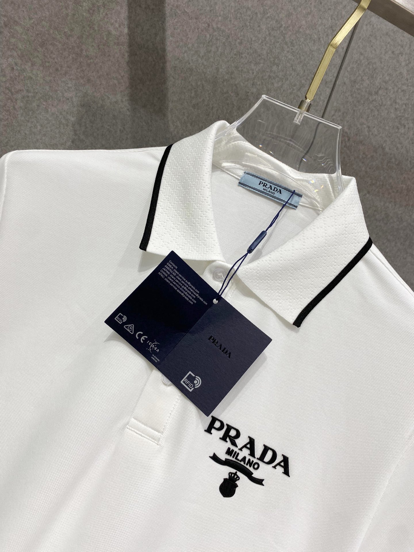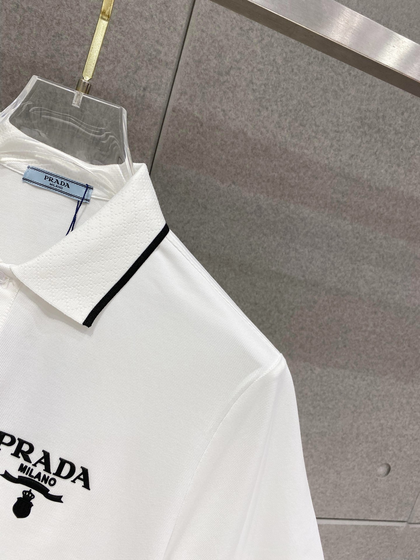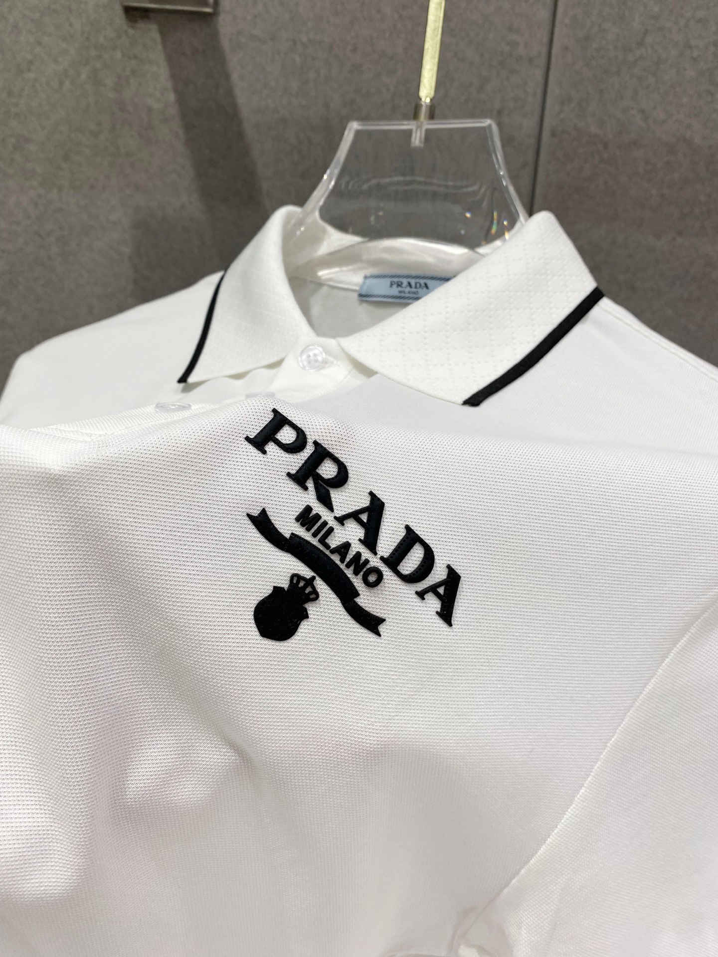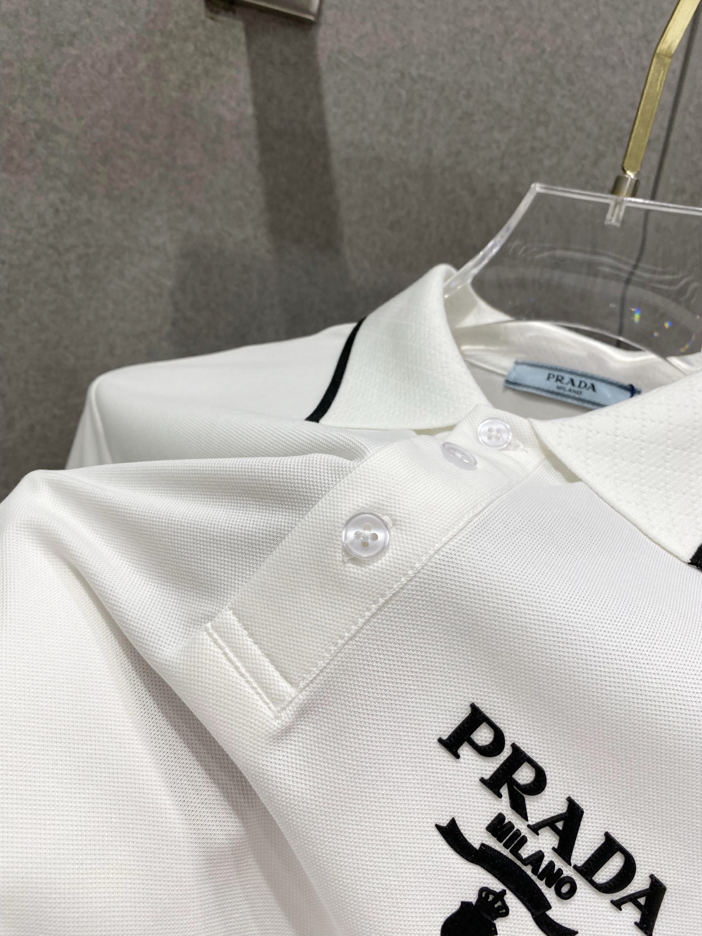 这款衣服是AAAAA 1:1 质量 (非常棒). 使用了和原版一模一样的材料. 商标部分也保持了和普拉达/Prada一样. 图片拍摄是实物衣服拍摄, 您所收到的实物保证和我们图片一模一样.