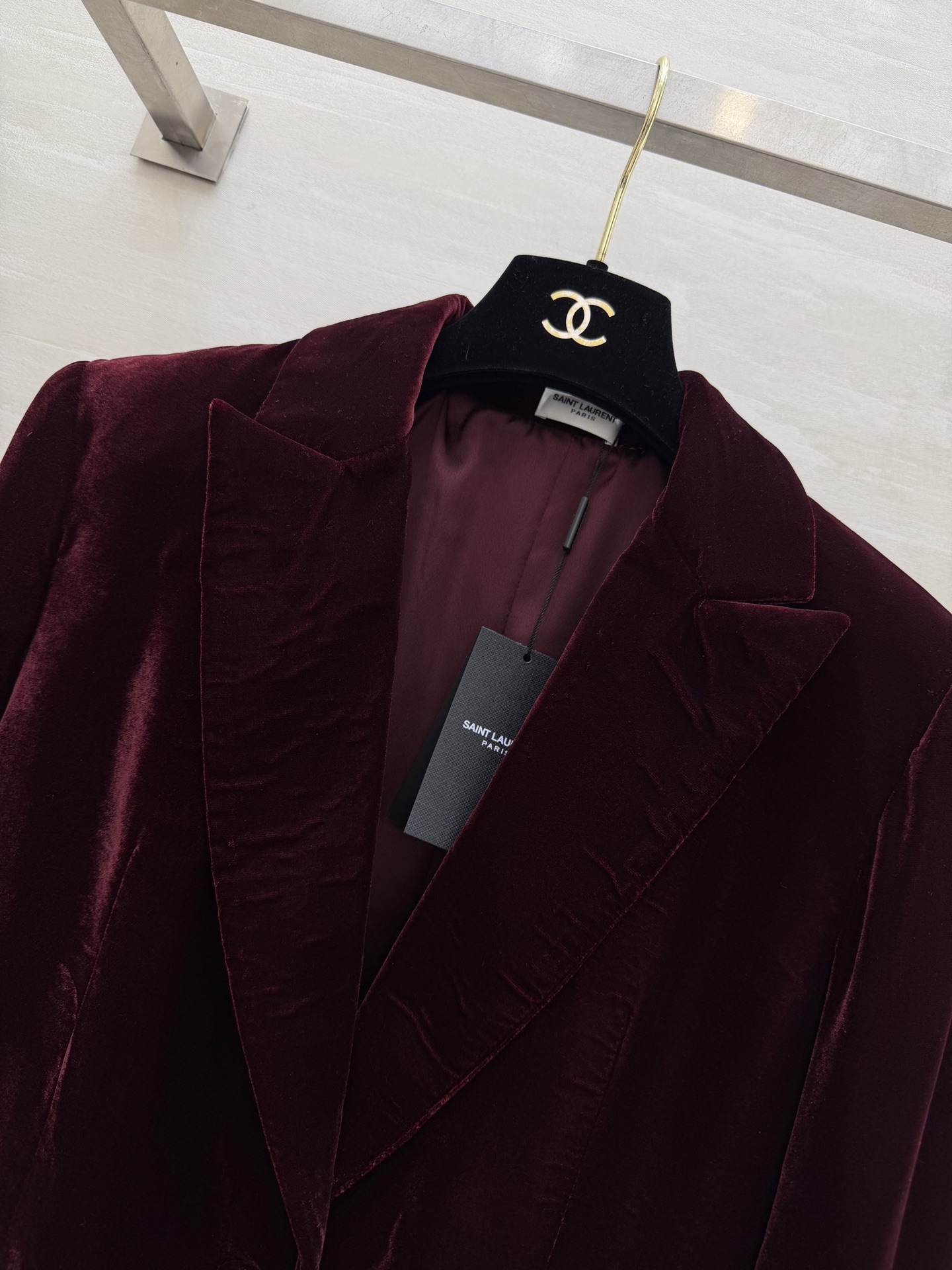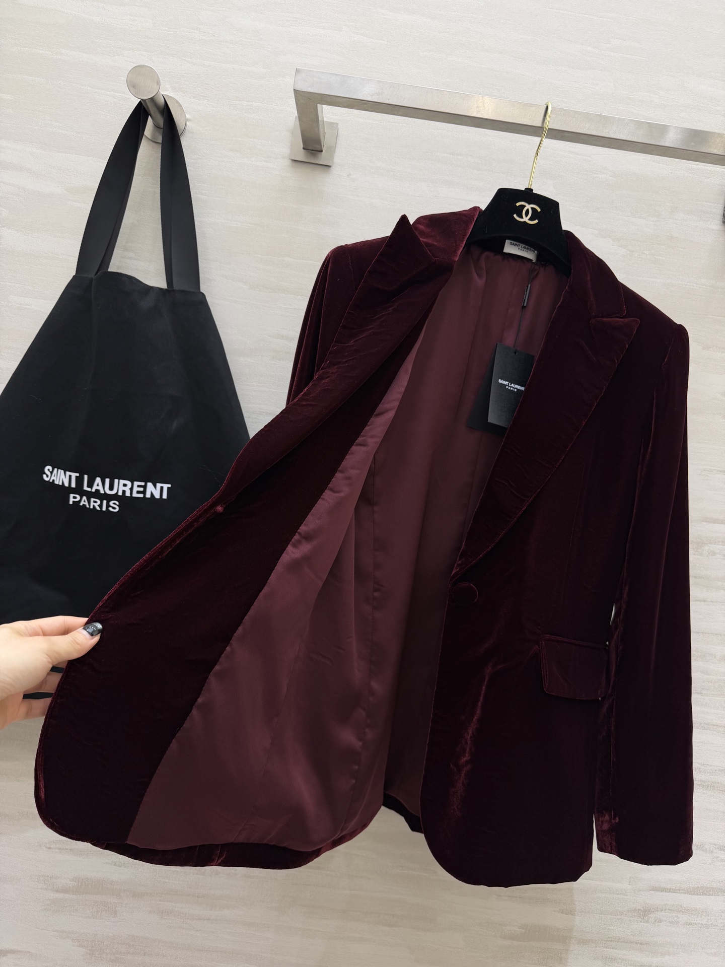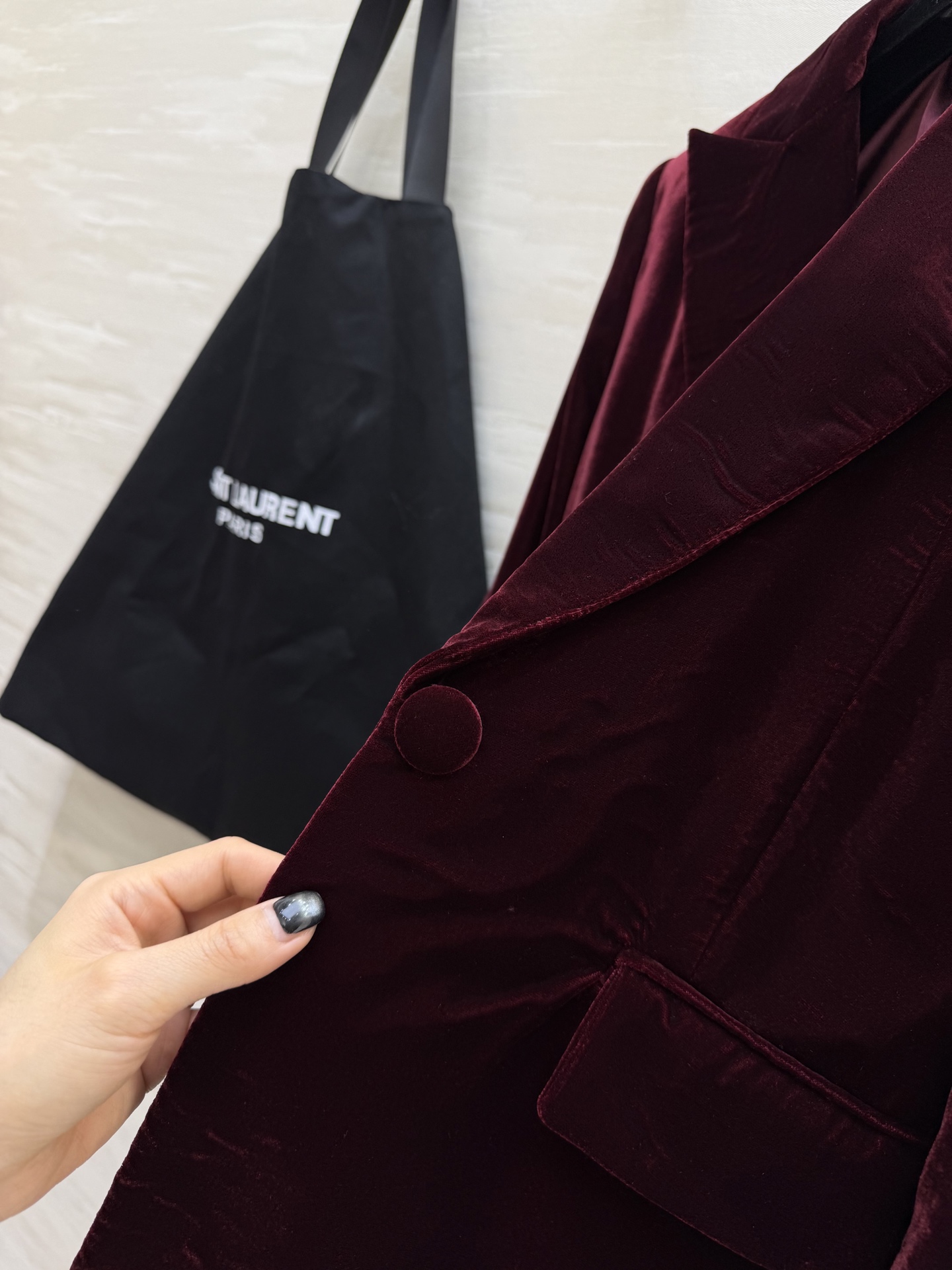 这款衣服是AAAAA 1:1 质量 (非常棒). 使用了和原版一模一样的材料. 商标部分也保持了和圣罗兰/Saint Laurent一样. 图片拍摄是实物衣服拍摄, 您所收到的实物保证和我们图片一模一样.