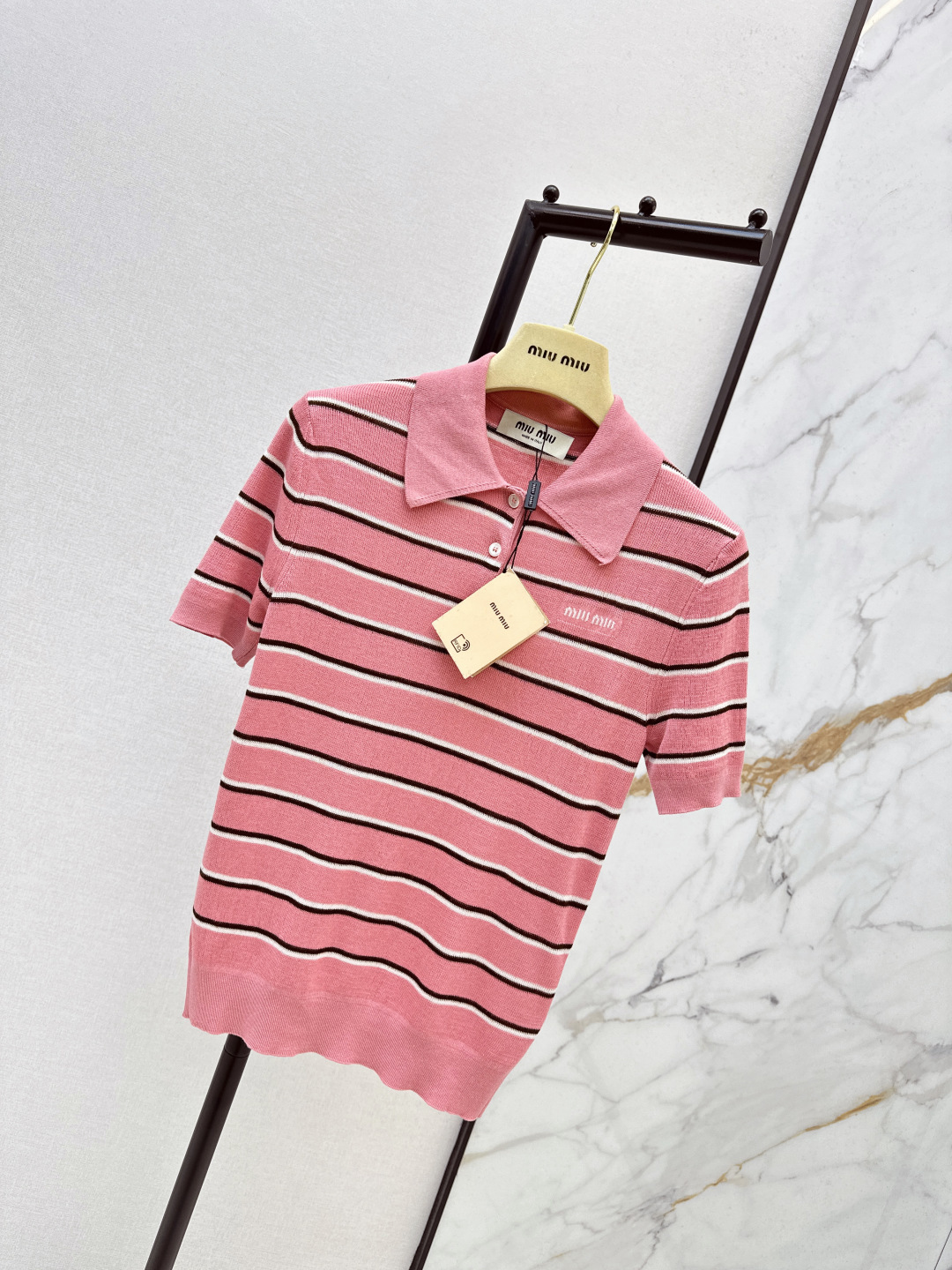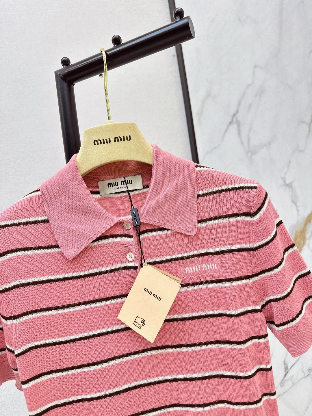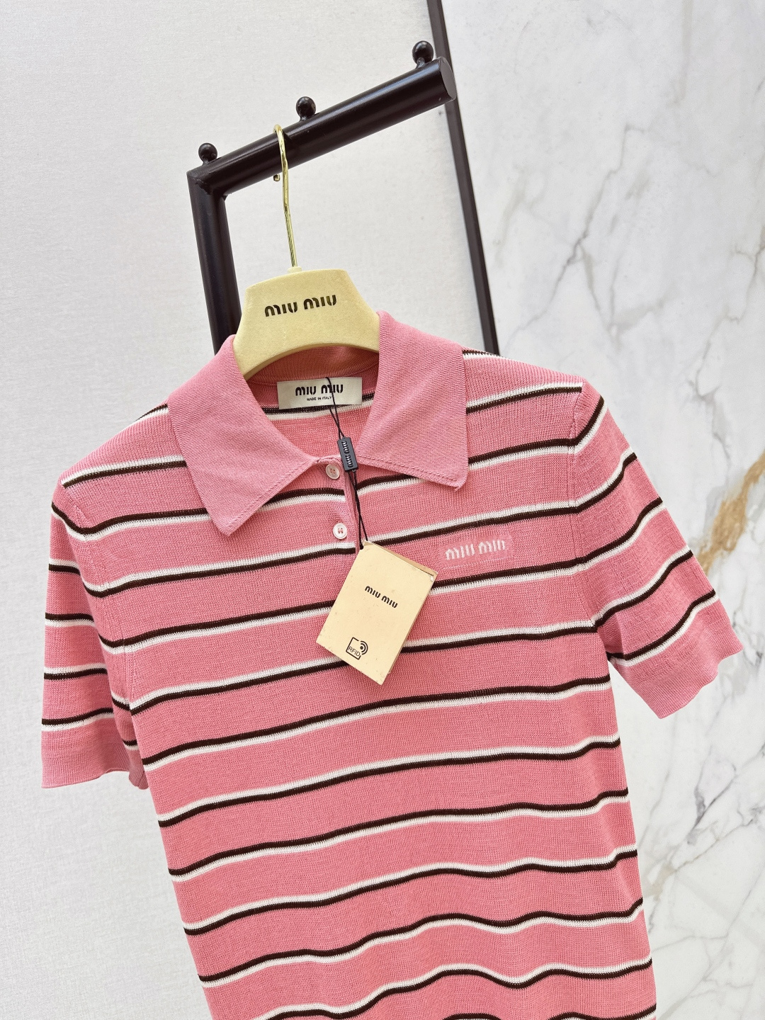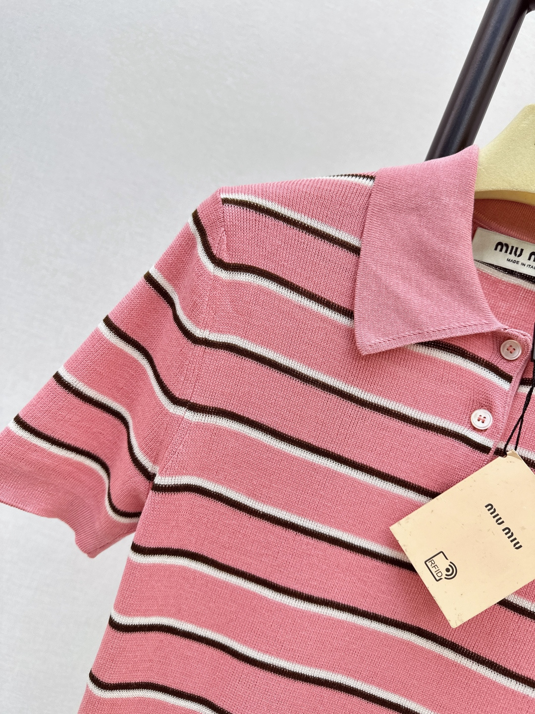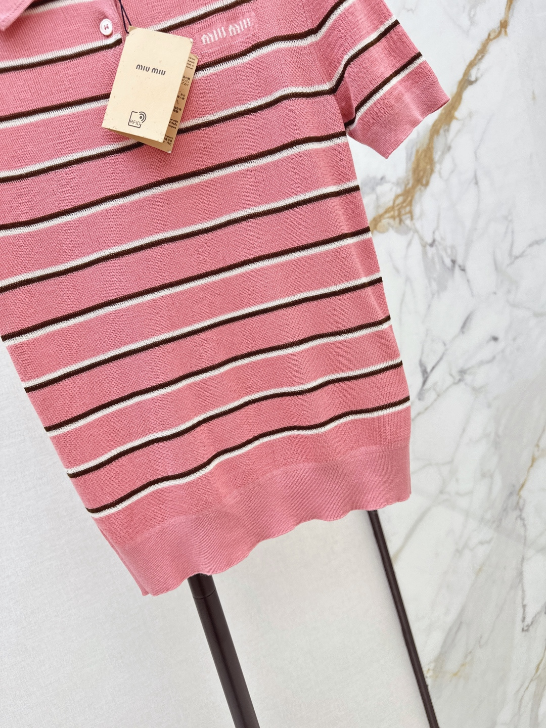 这款衣服是AAAAA 1:1 质量 (非常棒). 使用了和原版一模一样的材料. 商标部分也保持了和缪缪/Miu Miu一样. 图片拍摄是实物衣服拍摄, 您所收到的实物保证和我们图片一模一样.