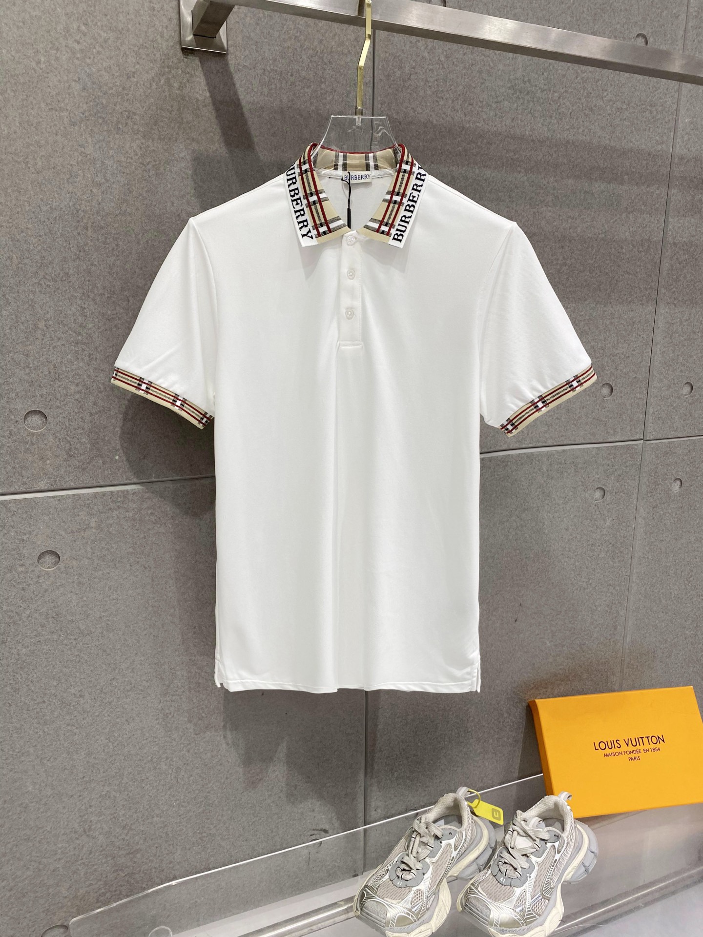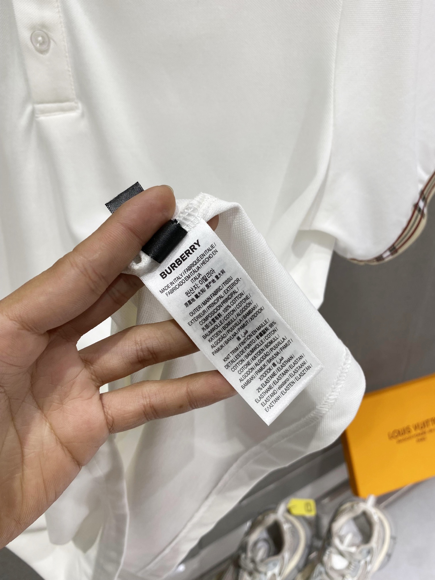 这款衣服是AAAAA 1:1 质量 (非常棒). 使用了和原版一模一样的材料. 商标部分也保持了和巴宝莉/Burberry一样. 图片拍摄是实物衣服拍摄, 您所收到的实物保证和我们图片一模一样.