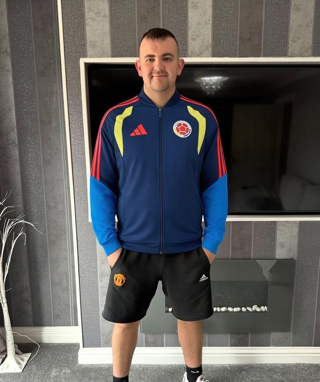 这款衣服是AAAAA 1:1 质量 (非常棒). 使用了和原版一模一样的材料. 商标部分也保持了和阿迪达斯/Adidas一样. 图片拍摄是实物衣服拍摄, 您所收到的实物保证和我们图片一模一样.