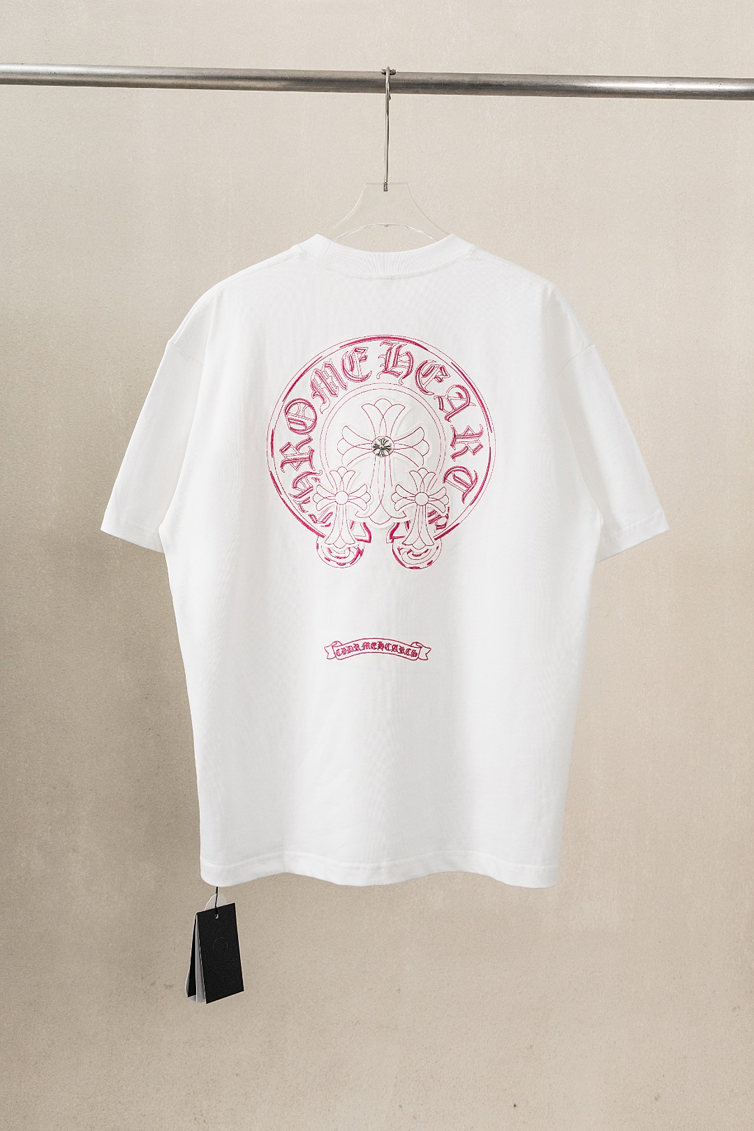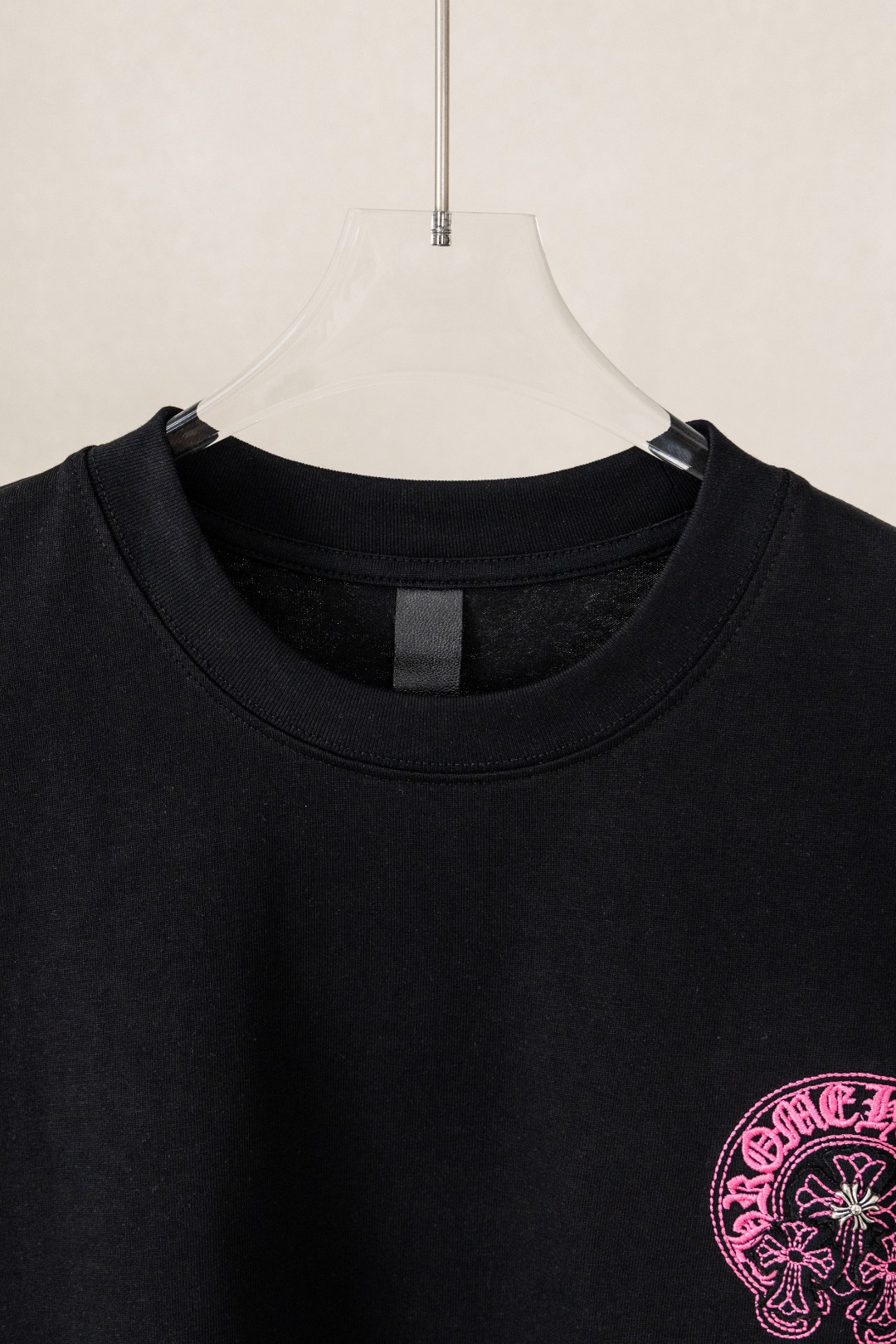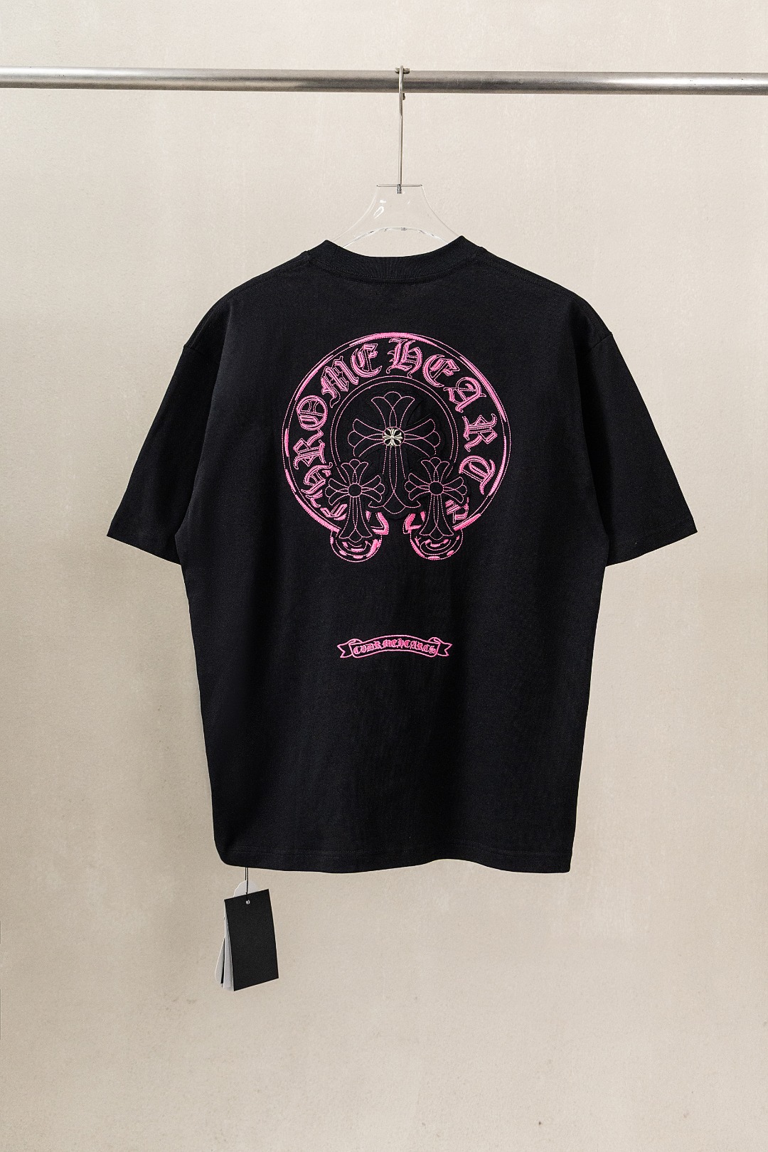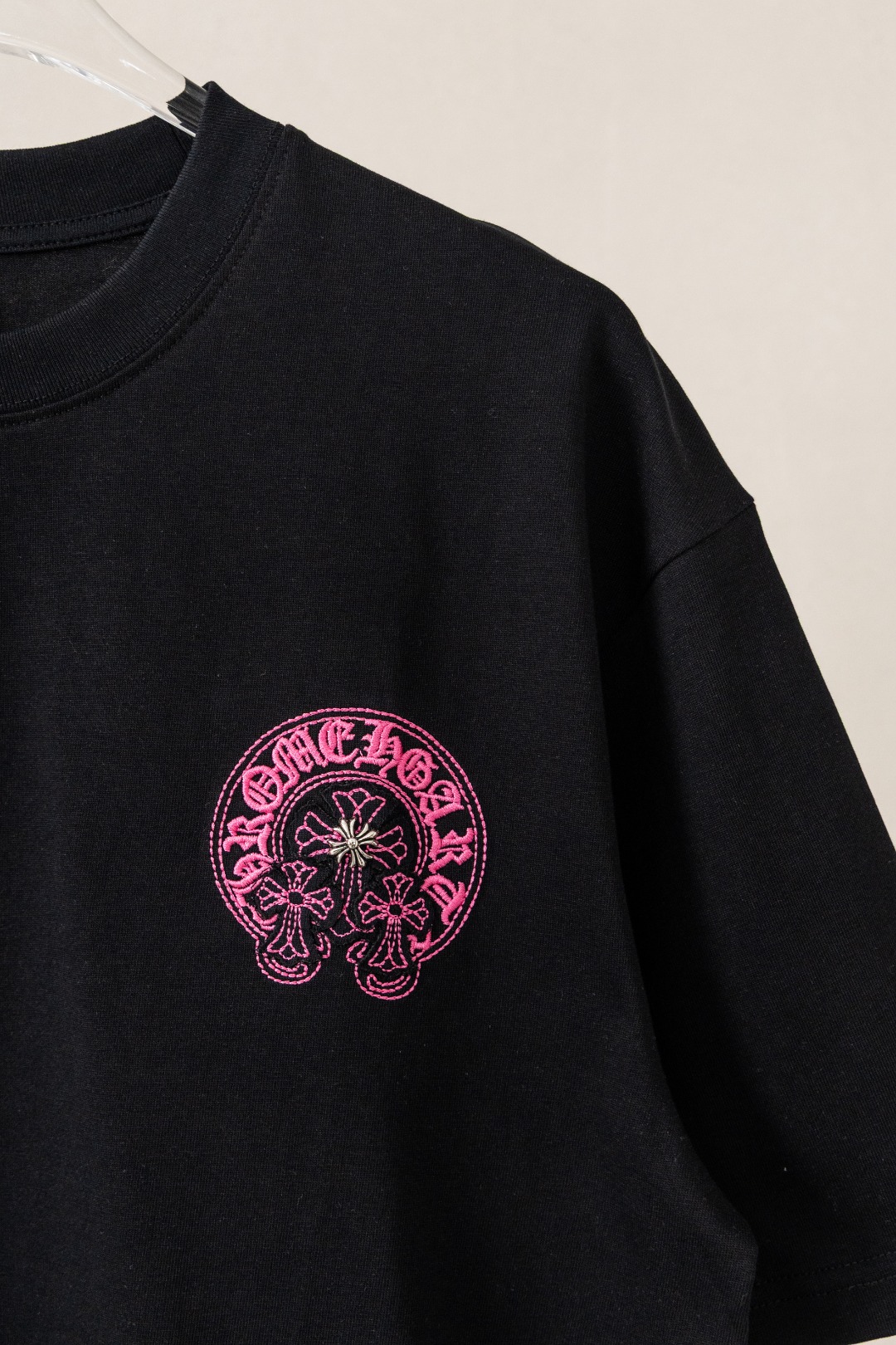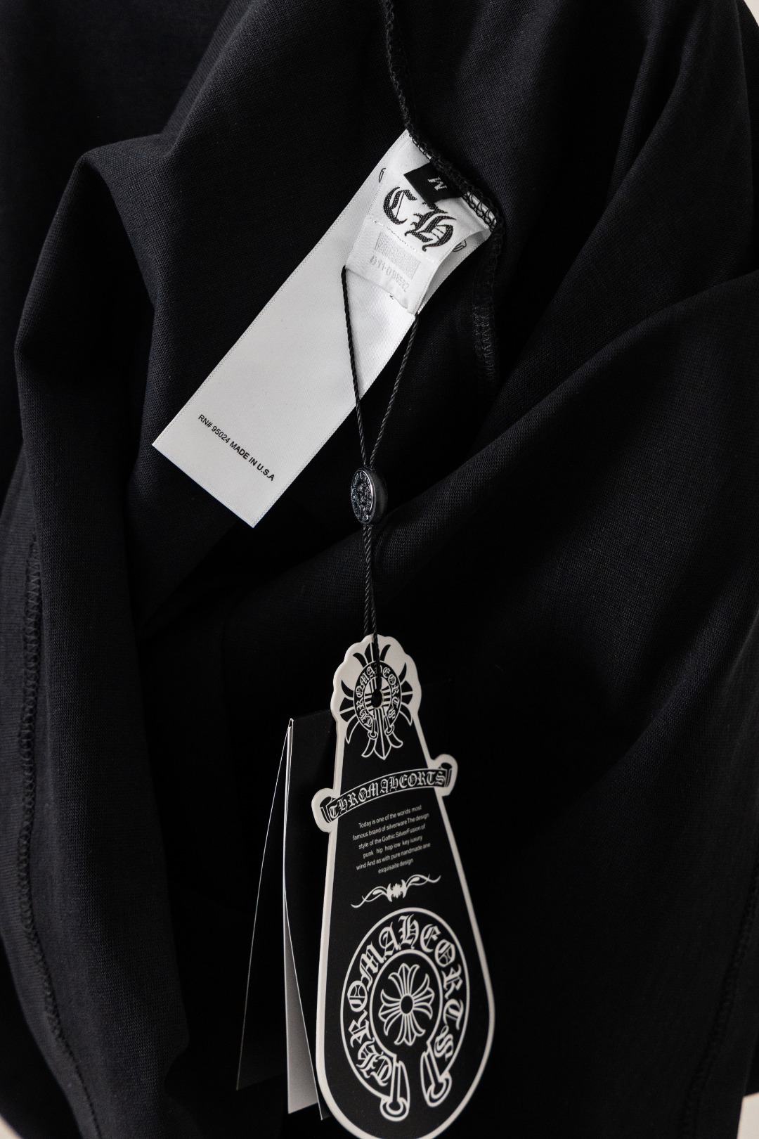 这款衣服是AAAAA 1:1 质量 (非常棒). 使用了和原版一模一样的材料. 商标部分也保持了和克罗心/Chrome Hearts一样. 图片拍摄是实物衣服拍摄, 您所收到的实物保证和我们图片一模一样.