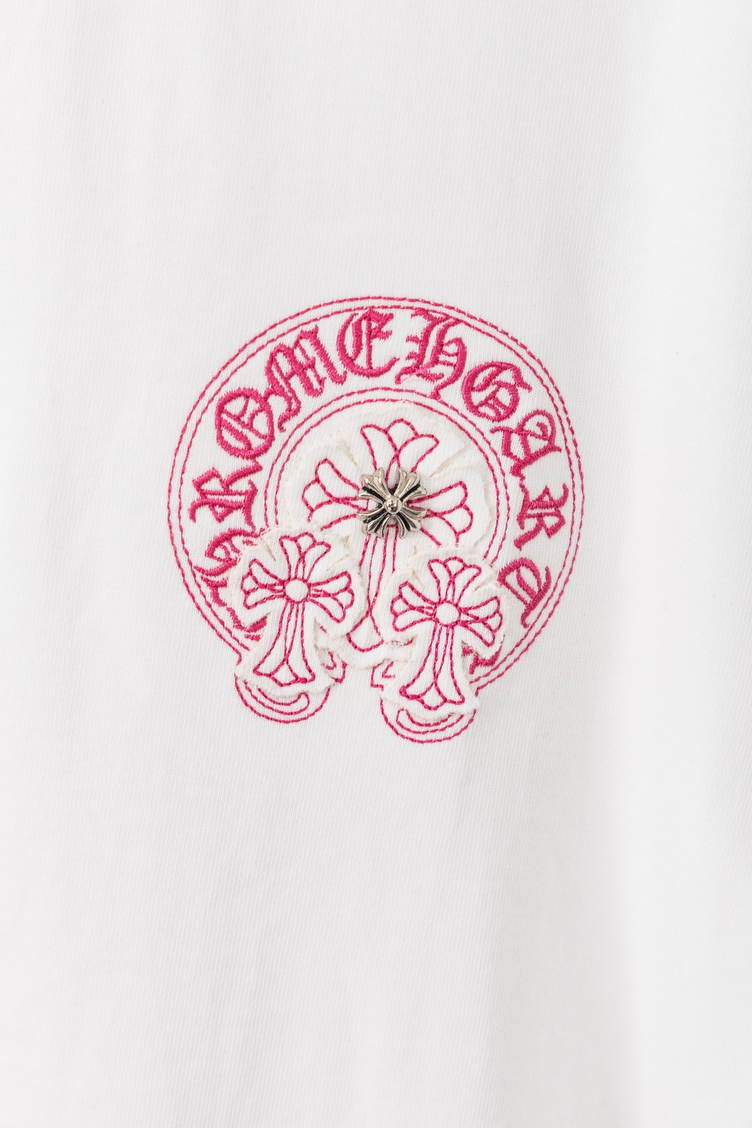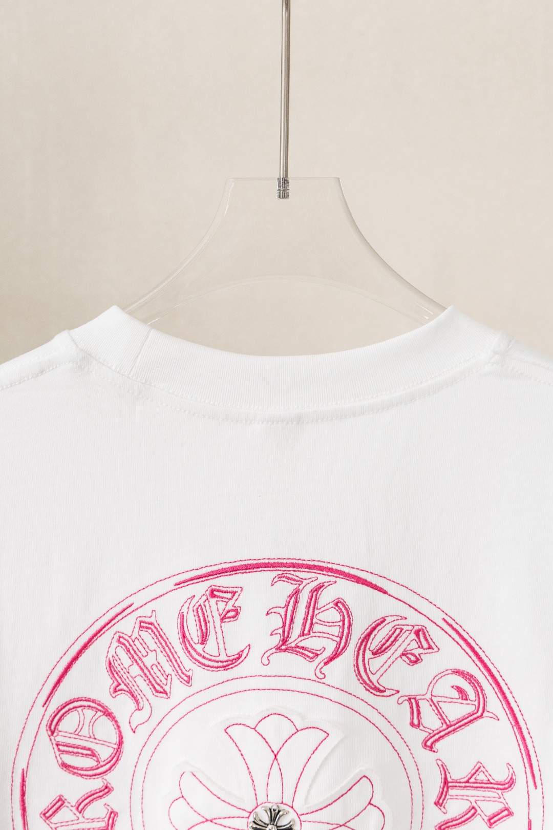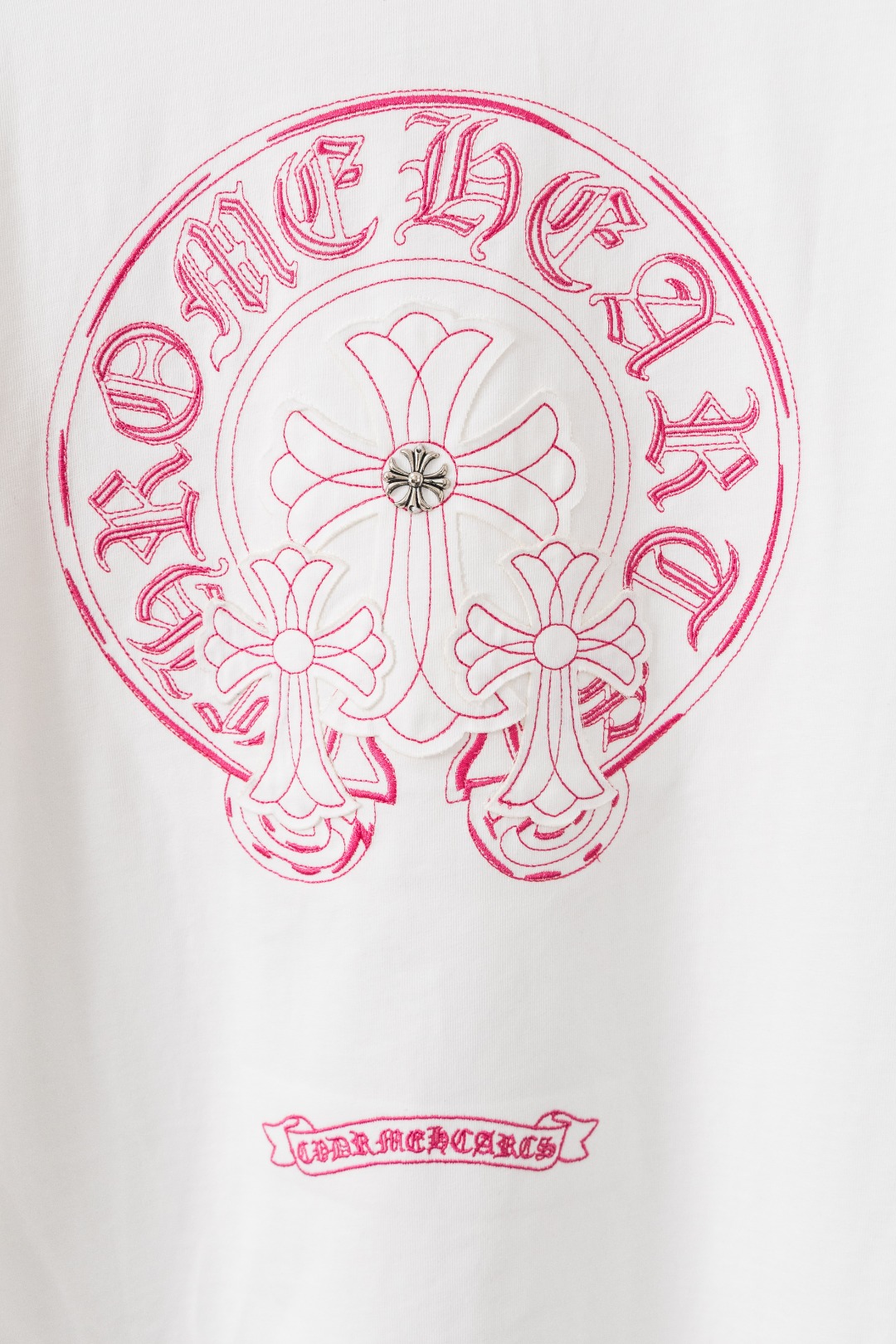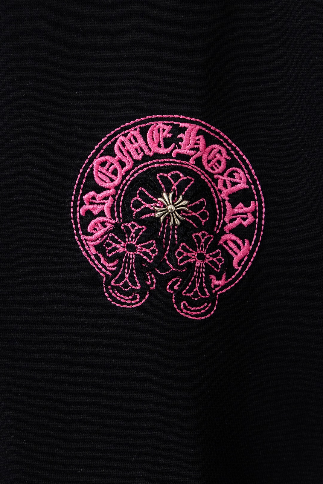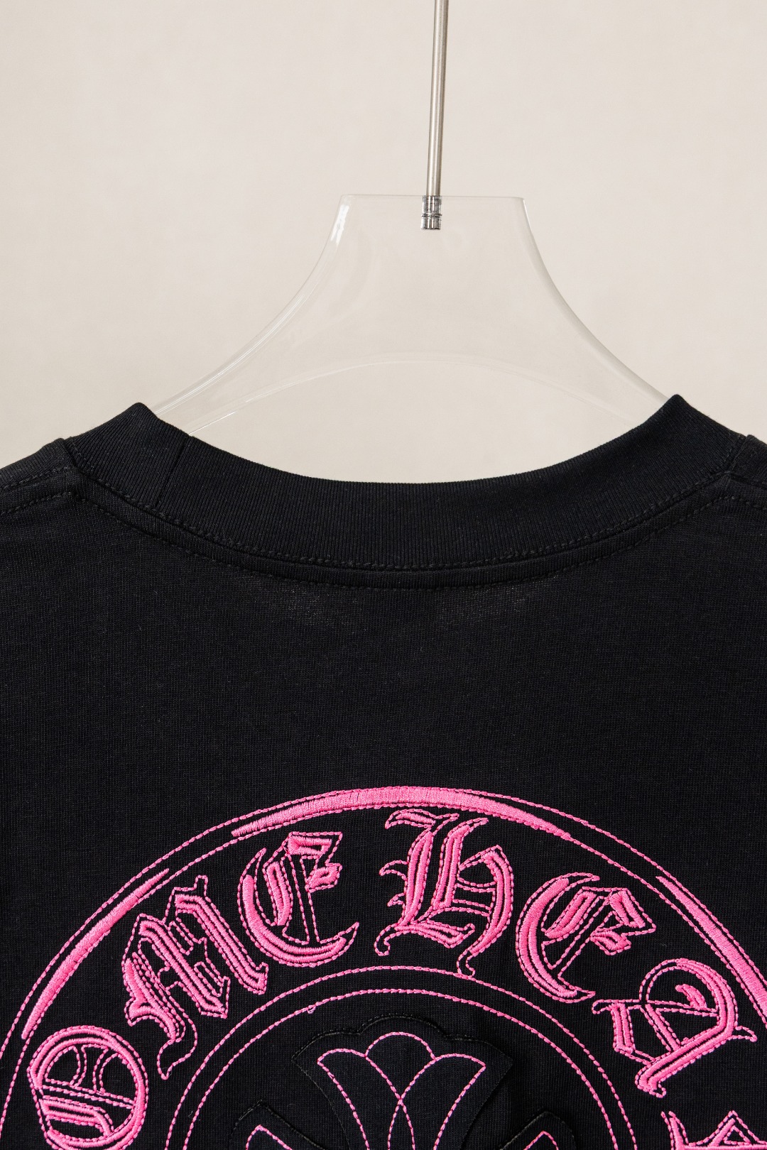 这款衣服是AAAAA 1:1 质量 (非常棒). 使用了和原版一模一样的材料. 商标部分也保持了和克罗心/Chrome Hearts一样. 图片拍摄是实物衣服拍摄, 您所收到的实物保证和我们图片一模一样.