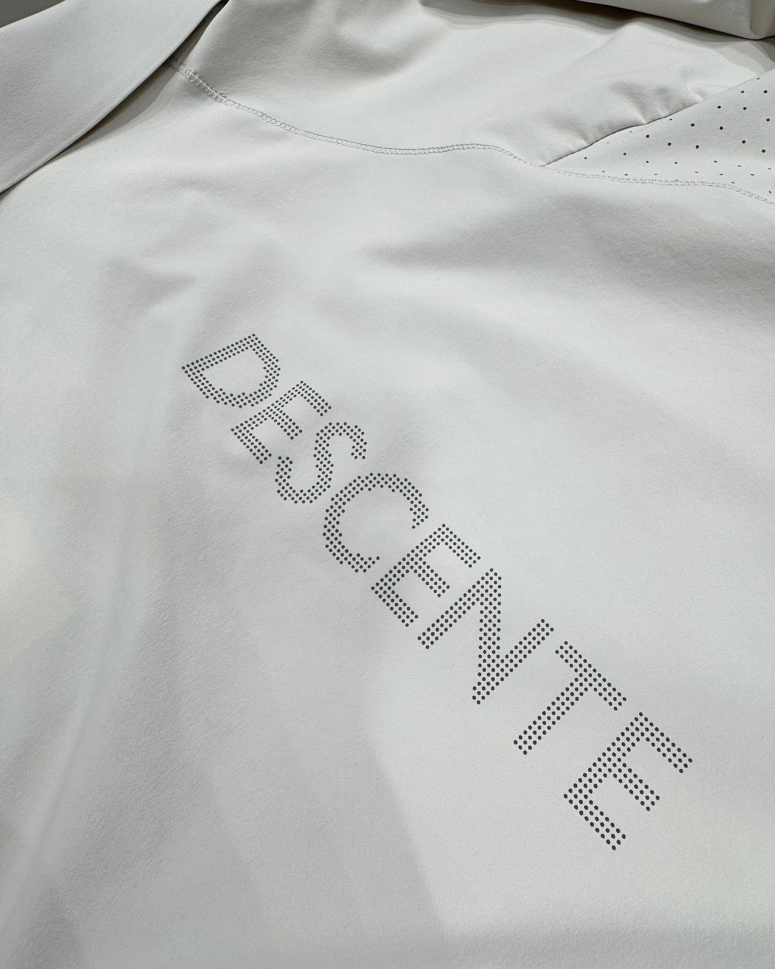 这款衣服是AAAAA 1:1 质量 (非常棒). 使用了和原版一模一样的材料. 商标部分也保持了和Descente一样. 图片拍摄是实物衣服拍摄, 您所收到的实物保证和我们图片一模一样.