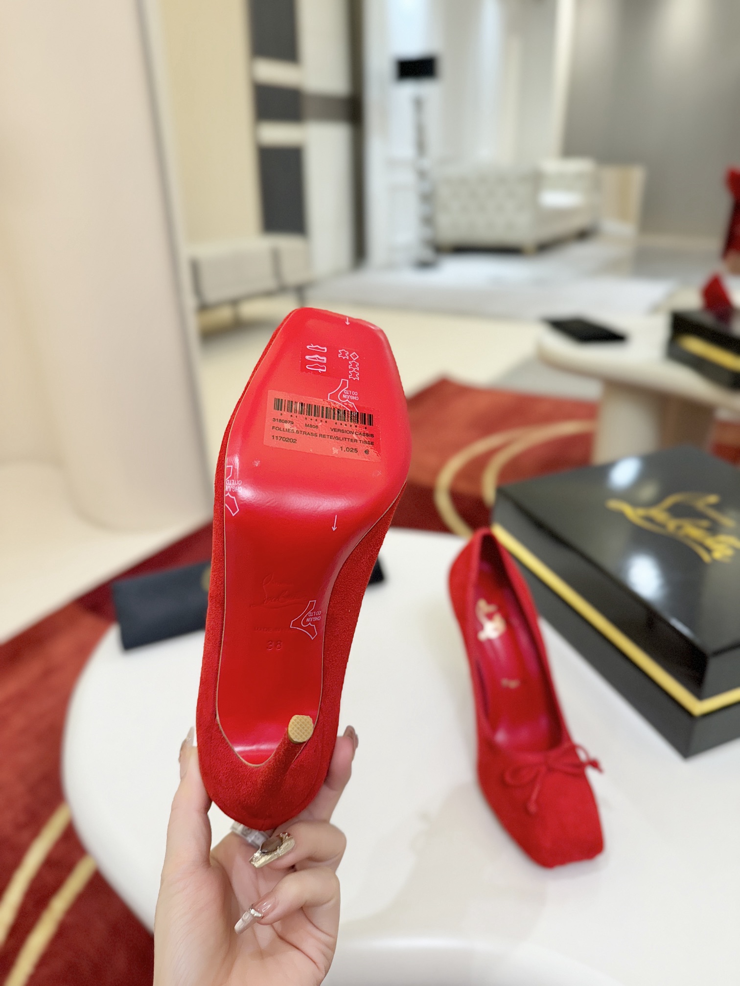 这款鞋子是AAAAA 1:1 质量 (非常棒). 使用了和原版一模一样的材料. 商标部分也保持了和克里斯提·鲁布托/Christian Louboutin一样. 图片拍摄是实物鞋子拍摄, 您所收到的实物保证和我们图片一模一样.
