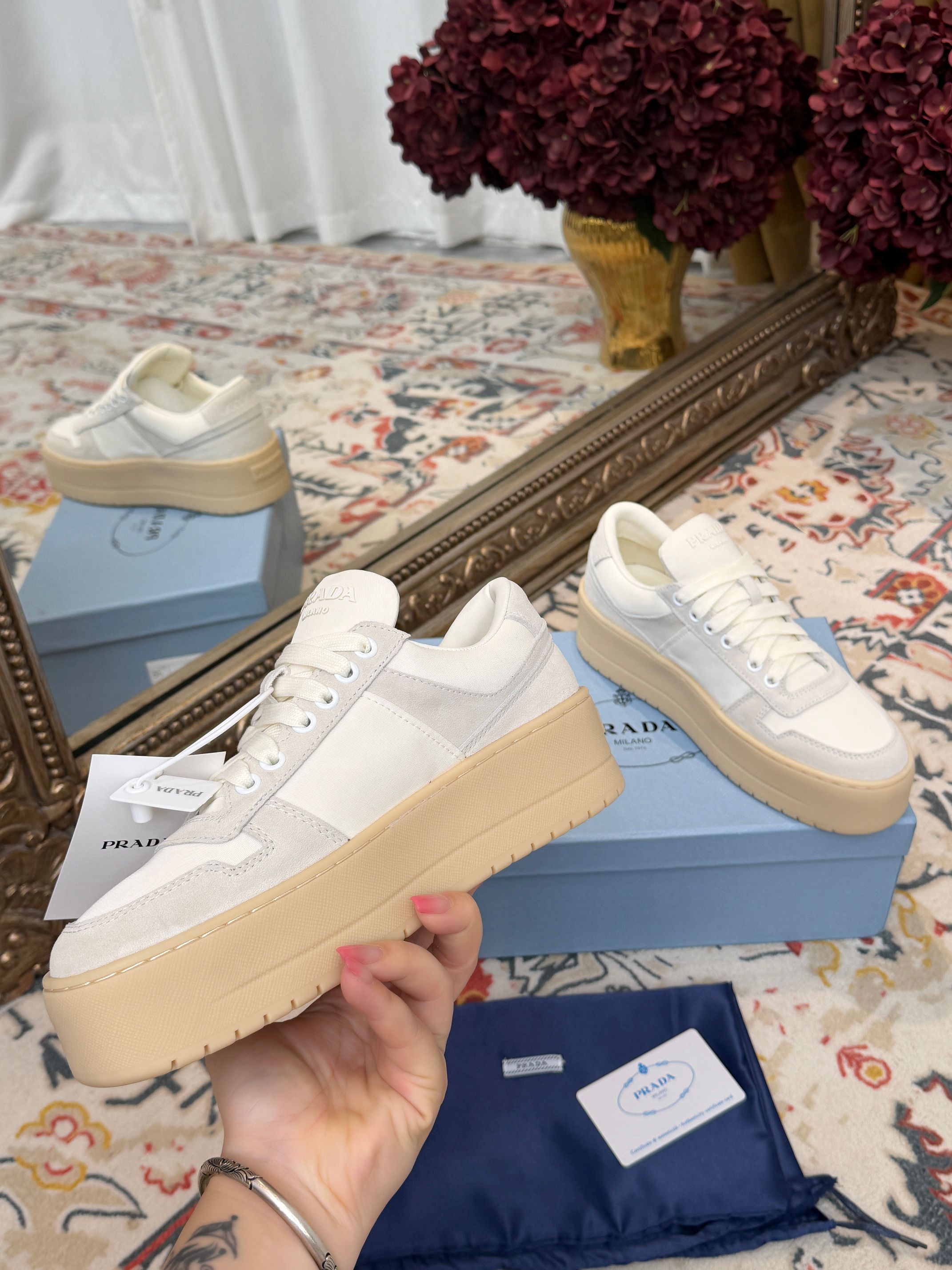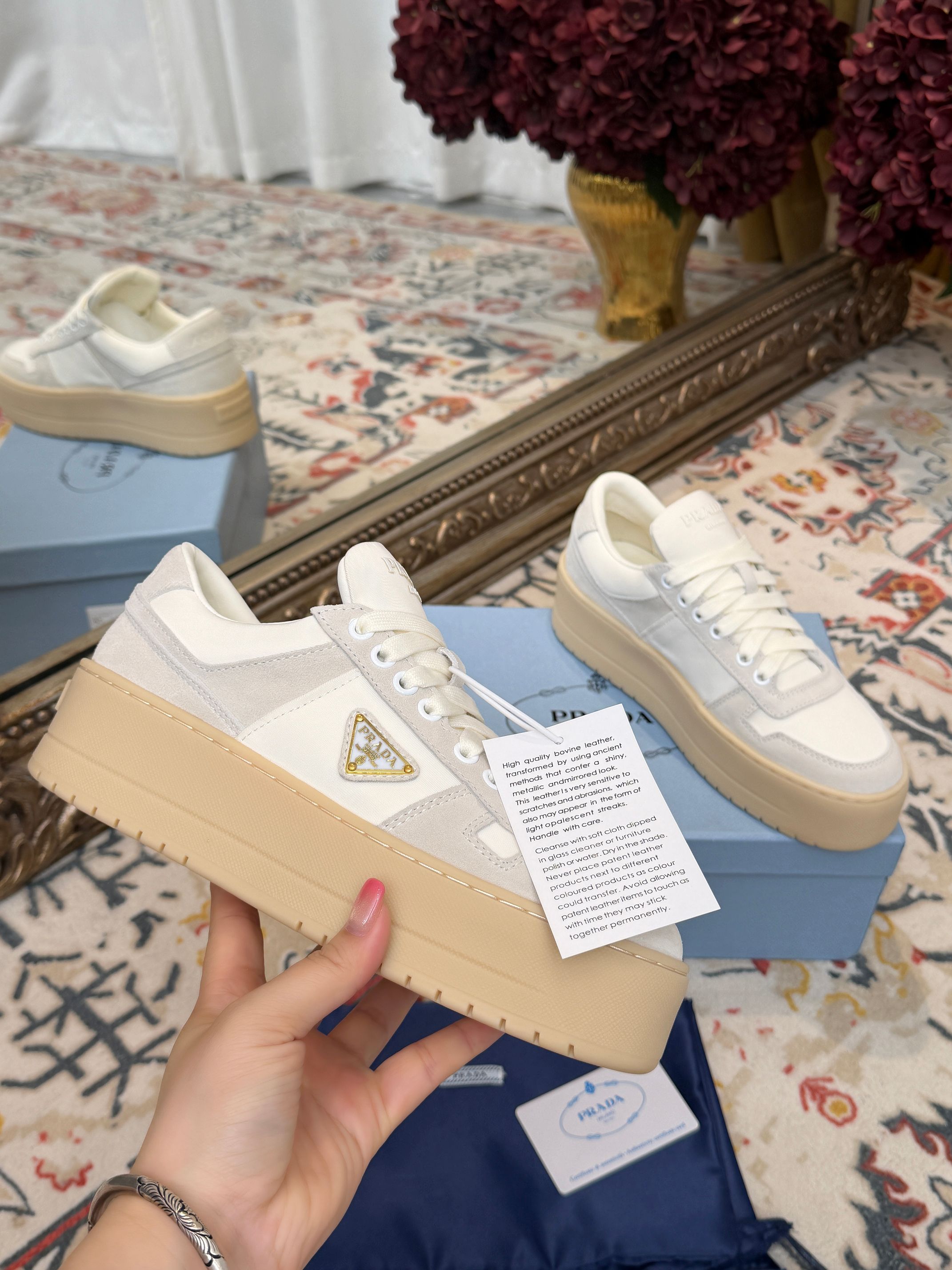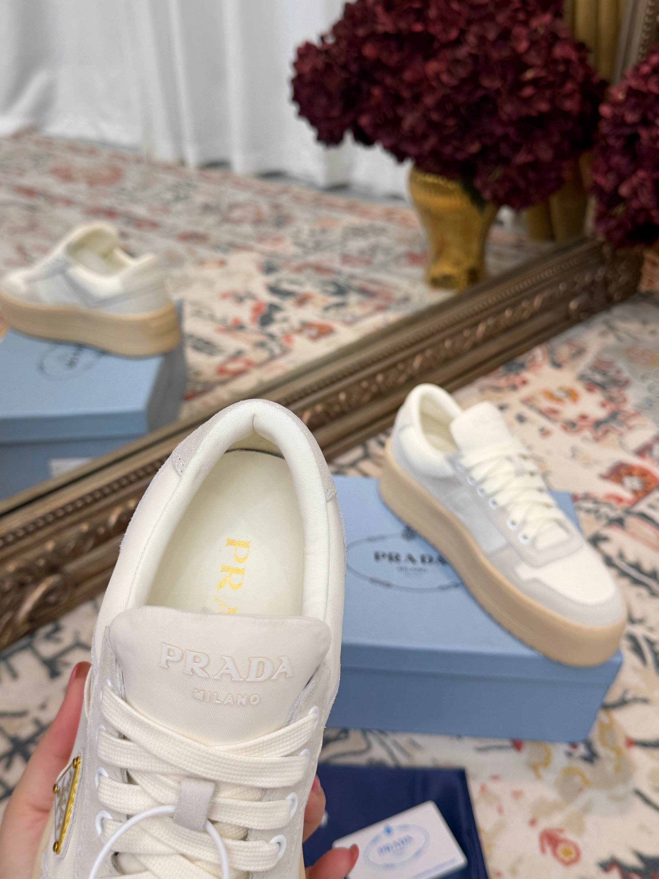 这款鞋子是AAAAA 1:1 质量 (非常棒). 使用了和原版一模一样的材料. 商标部分也保持了和普拉达/Prada一样. 图片拍摄是实物鞋子拍摄, 您所收到的实物保证和我们图片一模一样.