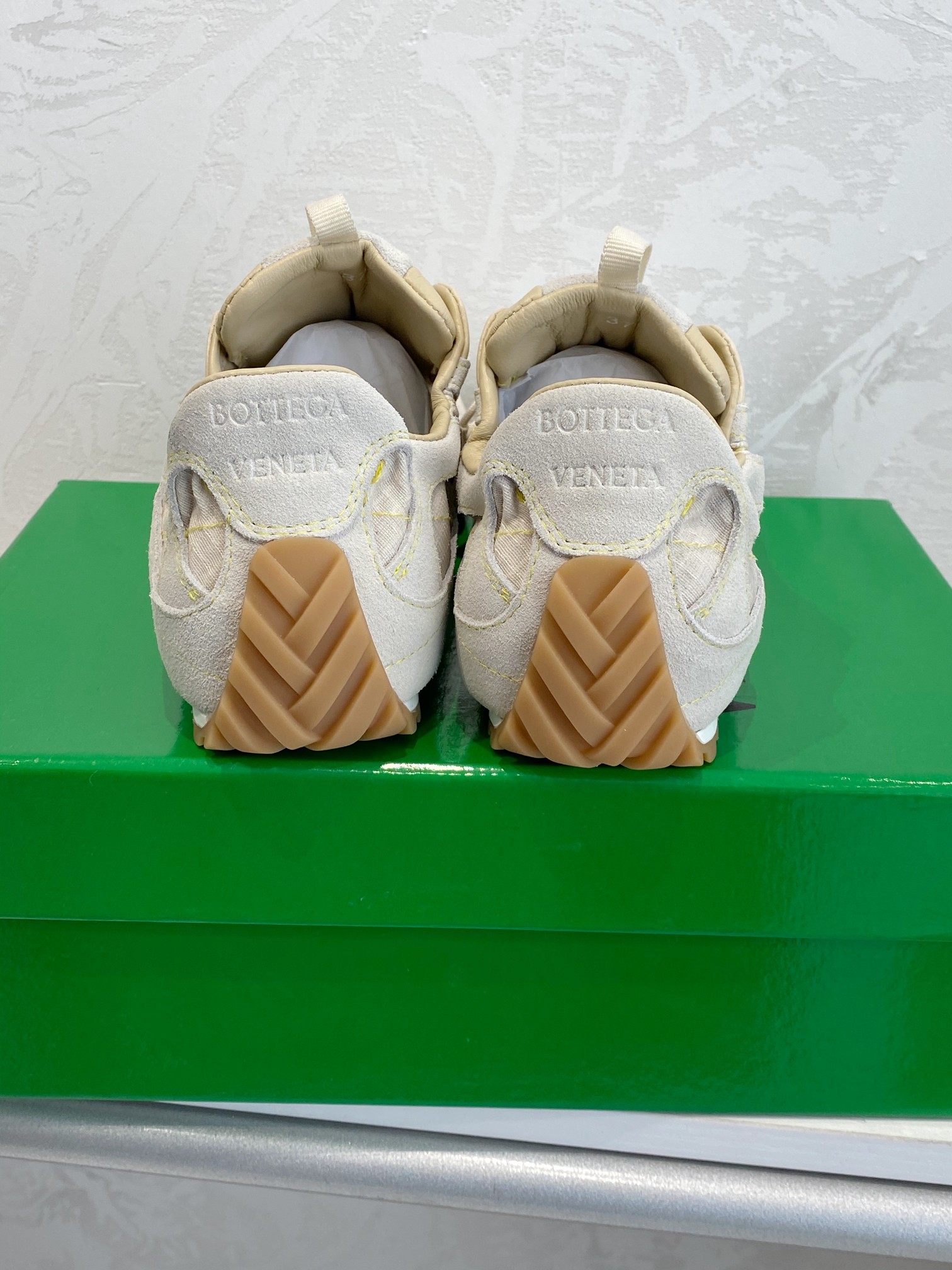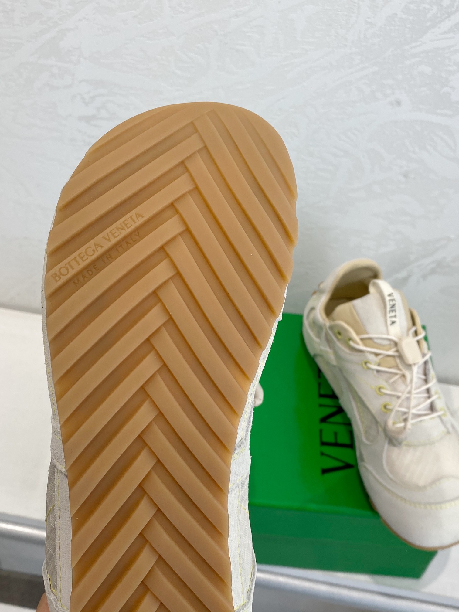 这款鞋子是AAAAA 1:1 质量 (非常棒). 使用了和原版一模一样的材料. 商标部分也保持了和葆蝶家/Bottega Veneta一样. 图片拍摄是实物鞋子拍摄, 您所收到的实物保证和我们图片一模一样.